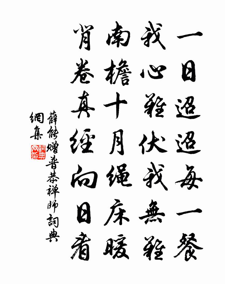 詩詞名句歷史字典書法欣賞書法字典國語詞典說文解字康熙字典古漢語字典標 題 作 者 詩 句 贈普恭禪師作者:薛能 朝代:唐代贈普恭禪師原文一日迢迢每一餐,我心難伏我無難。南檐十月繩床暖,背卷真經向日看。詩詞問答問:贈普恭禪師的作者是誰?答:薛能問:贈普恭禪師寫於哪個朝代?答:唐代問:贈普恭禪師是什麼體裁?答:七絕薛能贈普恭禪師書法欣賞贈普恭禪師書法作品注釋全唐詩:卷561-74詩詞推薦為徐太初友人陳府判賦梅居餞行衛宗武〔宋代〕青鞋不踏孤山路,辜負逋花今幾度。那知別有姑射居,眾謂孤山未必如。夙昔名傳尤願見,渴想此仙難覿面。朋來馬德駿微恙既平作此勞之李流謙〔宋代〕內寇非陰陽,窮愁因緣之。堅壘自卻走,不藥亦不龜。夫子樂唐虞,短褐蔭茅莰。塵不上幾闥,何物作伺窺。或丐跋林和靖手書所作三十聊項安世〔宋代〕唐人作詩先作聊,一聊一句名幾年。後來作者如崩川,去年百里無洄沿。又如商鞅壞井田,夷封溝洫開陌阡。吟喔南窗睡起陸游〔宋代〕夢中忘卻在天涯,一似當年錦里時。狂倚寶箏歌白紵,醉移銀燭寫烏絲。酒來郫縣香初壓,花送彭州露尚滋。起坐置酒簽廳觀荷徐判官攜家釀四首曾幾〔宋代〕休看紅藥詠翻階,極目荷花照酒杯。靜濯明妝何所待,風標公子遠飛來。草堂前新開一池,養魚種荷,日有幽趣白居易〔唐代〕淙淙三峽水,浩浩萬頃陂。未如新塘上,微風動漣漪。小萍加泛泛,初蒲正離離。紅鯉二三寸,白蓮 * 枝。繞水金剛隨機無盡頌無斷無滅分第二十七釋印肅〔宋代〕何日不觀音,六窗一晃明。十方俱擊鼓,一處一時鳴。天禧寺阿育王塔馬之純〔宋代〕兩山回處是為乾,有塔亭亭高似山。不但裝嚴增梵剎,可能形勝助城關。燈明星斗掛林木,鈴動天風吹佩環。陌上唐多令 懷高沙張之翰〔元代〕往事水東流。槐根春夢休。被長淮、隔斷中州。三十六湖湖上住,卻又過、一年秋。佳處總堪游。同盟只數鷗。把次韻張子開喜雨陳著〔宋代〕甘澤連朝拍稻疇,老天著意做今秋。軟炊已報生塵甑,艱食俄忘淅米矛。甽口漲新浮白膩,禾頭濯秀濕青油。疲農雪中望岱嶽施閏章〔清代〕碧海煙歸盡,晴峰雪半殘。冰泉懸眾壑,雲路郁千盤。影落齊燕白,光連天地寒。秦碑凌絕壁,杖策好誰看?閒情二首賀鑄〔宋代〕青窗隱夕曛,玉甃紫苔春。佳人久不見,翠被銷檀薰。長巾拂綠綺,上有三年塵。聊彈別燕弄,寄謝陽壹雲。尚長道十年離索杯酒話舊,憮然若隔世,醉筆楊萬里〔宋代〕竹間露重午方乾,松里雲深復亦寒。只道一溪無十里,為誰百屈更千盤。勾漕送建茶張九成〔宋代〕我謫庾嶺下,年年餉焦坑。味雖輕且嫩,越宿苦還生。分甘嘗此品,敢望建溪烹。勾公道義重,不與炎涼並。持節點絳唇(和吳見山韻)吳文英〔宋代〕金井空陰,枕痕歷盡秋聲鬧。夢長難曉。月樹愁鴉悄。梅壓檐梢,寒蝶尋香到。窗黏了。翠池春小。波冷鴛鴦覺。高士詠鄭子真張仲蔚吳筠〔唐代〕子真岩石下,仲蔚蓬蒿居。禮聘終不屈,清貧長晏如。心情在耕藝,養壽資玄虛。至樂非外物,道冥歡有餘。男竹枝歌陳杰〔宋代〕東園一株千葉茶,阿翁手栽紅錦花。今年團欒且同看,明年大哥天一涯。秋思陸游〔宋代〕露濃壓架葡萄熟,日嫩登場罷亞香。商略人生如意事,及身強健得還鄉。憶別鄭克已〔宋代〕憶別富公子,山桃兩度花。人情皆念舊,客路如家。野草連天闊,重山抱日斜。寄書無過雁,愁眼眩飛鴉。高宗皇帝輓詞二首倪思〔宋代〕黼翣方徐轉,龍輴望已遙。胥濤平似掌,禹穴儼如朝。喪孝群心痛,號旻聖孝昭。稽經崇調號,萬世永尊堯。名句推薦舉頭望明月,低頭思故鄉。李白《靜夜思》 正身直行,眾邪自息。劉安及其門客《淮南子·繆稱訓》 絕景良時難再並,他年此日應惆悵。劉禹錫《八月十五夜桃源玩月》 徒把金戈挽落暉,南冠無奈北風吹。虞集《挽文丞相》 復值接輿醉,狂歌五柳前。王維《輞川閒居贈裴秀才迪》 大樹無枝向北風,十年遺恨泣英雄。高啟《吊岳王墓》 風前欲勸春光住。春在城南芳草路。辛棄疾《玉樓春·風前欲勸春光住》 多欲則貪,尚私則枉,其罪遂生。來俊臣《羅織經·閱人卷第一》 愁腸已斷無由醉,酒未到,先成淚。范仲淹《御街行·秋日懷舊》 憑空怒浪兼天涌,不盡六朝聲。歸莊《錦堂春·半壁橫江矗起》
