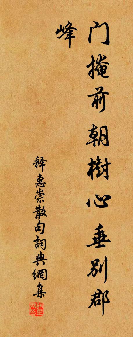 詩詞名句歷史字典書法欣賞書法字典國語詞典說文解字康熙字典古漢語字典標 題 作 者 詩 句 句作者:釋惠崇 朝代:宋代句原文門掩前朝樹,心垂別郡峰。詩詞問答問:句的作者是誰?答:釋惠崇問:句寫於哪個朝代?答:宋代釋惠崇句書法欣賞句書法作品詩詞推薦送張子野屯田知渝州梅堯臣〔宋代〕舊居苕溪上,久客鹹陽東。歸來得虎符,馳馬向巴中。歌將聽巴人,舞欲教渝童。況嘗善秦聲,樂彼渝人風。忠州東鄰築舍與兒輩訪之為小留陸游〔宋代〕甲第潭潭莫羨渠,窮人從昔愛吾廬。茆茨新潔嗟何欠,鄰里追隨故不疏。瓮醬芬香盤早兔,臼齏珍釅膾寒魚。年豐水龍吟(雪)楊無咎〔宋代〕小軒瀟灑清宵午,風正緊、門深閉。藜床危坐,竹窗頻聽,春蟲撲紙。燈燼垂紅,篆煙消碧,衣輕如水。料飛花未觀內懷仙王勃〔唐代〕玉架殘書隱,金壇舊跡迷。牽花尋紫澗,步葉下清溪。瓊漿猶類乳,石髓尚如泥。自能成羽翼,何必仰雲梯。偈二首釋守仁〔宋代〕百千三昧,無量妙門。今日日庵不惜窮性命,只做一句子說與諸人。趙庸齋為程生作梅窗二字因為之賦胡仲弓〔宋代〕作賦何如宋廣平,吟詩誰是老逋清。庸翁不喜詩兼賦,寫與閒人作美名。歲晏思歸五首宋庠〔宋代〕碌碌真邀寵,容容謝致君。短鳧生愧脛。狂鹿老思群。急節驚流水,浮名伴薄雲。歸歟堪擊壤,況復值唐勳。藍田劉明府攜酌相過與皇甫郎中卯時同飲醉後贈之白居易〔唐代〕臘月九日暖寒客,卯時十分空腹杯。玄晏舞狂烏帽落,藍田醉倒玉山頹。貌偷花色老暫去,歌蹋柳枝春暗來。不為賀同年第三人劉先輩鹹辟命殷文圭〔唐代〕甲門才子鼎科人,拂地藍衫榜下新。脫俗文章笑鸚鵡,凌雲頭角壓麒麟。金壺藉草溪亭晚,玉勒穿花野寺春。多愧謝文思徐敬伯見訪葛天民〔宋代〕半山徐敬伯,薄宦在中都。柳舍偷閒到,村醪就近酤。易添詩債負,難得醉工夫。卻羨魚樵叟,雖貧一事無。江樓會飲對月趙汝鐩〔宋代〕層樓畫棟凌霄漢,檻外江流百頃清。無一片雲但秋色,放千里月到天明。喚舟撒網鮮鱗美,擊鼓喧汀宿鷺驚。坐上送倪敦復朝奉宋祁〔宋代〕倪侯喜清曠,遇物乃虛舟。富貴知輕視,胸懷肯誤投。青雲非近器,滄海納群流。道在從顕,功名晚可收。見天地心黃庚〔宋代〕乾坤主宰妙難窺,識破倪便萬可知。陽動於陰分太陰,剝窮必復露真機。化工自有經綸處,生意元無間斷時。萬象次韻答提刑孫都官二首李覯〔宋代〕真賞由來世上稀,幾人相見不相知。如今一字成華袞,豈識龍章與鳳姿。詠史上武帝陳普〔宋代〕二十嫖姚風火飛,鑾輿夜夜過焉支。茂陵不費凌雲氣,解見蟠桃著子時。西淙山觀雨劉克莊〔宋代〕與客同登萬仞崖,蔽天風雨驀然來。六丁白晝誅炎魃,百怪蒼淵起蟄雷。毒蟒噴時林盡黑,怒龍裂處石中開。吾生枕上偶成李曾伯〔宋代〕官轍驅馳遍四郊,老來於此尚投膠。綢繆先事心為碎,展轉中宵睫不交。貪鼠驅無容出穴,驚烏疑恐弗安巢。燈殘次韻回叔經陳藻〔宋代〕從來剽竊為場屋,直是無繇識古書。屈指罕能官顯達,到頭剩得腹空虛。君今身計非謀祿,地有人耕免荷鋤。高適郡圃殘雪章甫〔宋代〕半依籬腳半依城,多傍梅邊水際亭。最是晚晴斜照里,黃金日射萬銀星。席上戲東川楊尚書柳棠〔唐代〕莫言名位未相儔,風月何曾阻獻酬。前輩不須輕後輩,靖安今日在衡州。名句推薦綠葉兮素華,芳菲菲兮襲予;屈原《九歌》 亂碧萋萋,雨後江天曉。梅堯臣《蘇幕遮·草》 我也不登天子船,我也不上長安眠。唐寅《把酒對月歌》 君行逾十年,孤妾常獨棲。曹植《明月上高樓》 黃河水繞漢宮牆,河上秋風雁幾行。李夢陽《秋望》 益者三友,損者三友。友直、友諒、友多聞,益矣;友便辟、友善柔、友便佞,損矣。孔子弟子《論語·季氏篇》 為人全無好處,欲邀福慶,從何得來?王永彬《圍爐夜話·第一一四則》 己所不欲,勿施於人。孔子弟子《論語·顏淵篇》 玉容寂寞淚闌乾,梨花一枝春帶雨。白居易《長恨歌》 茶者,南方之嘉木也,一尺二尺,乃至數十尺。其巴山峽川有兩人合抱者,伐而掇之陸羽《茶經·一之源》