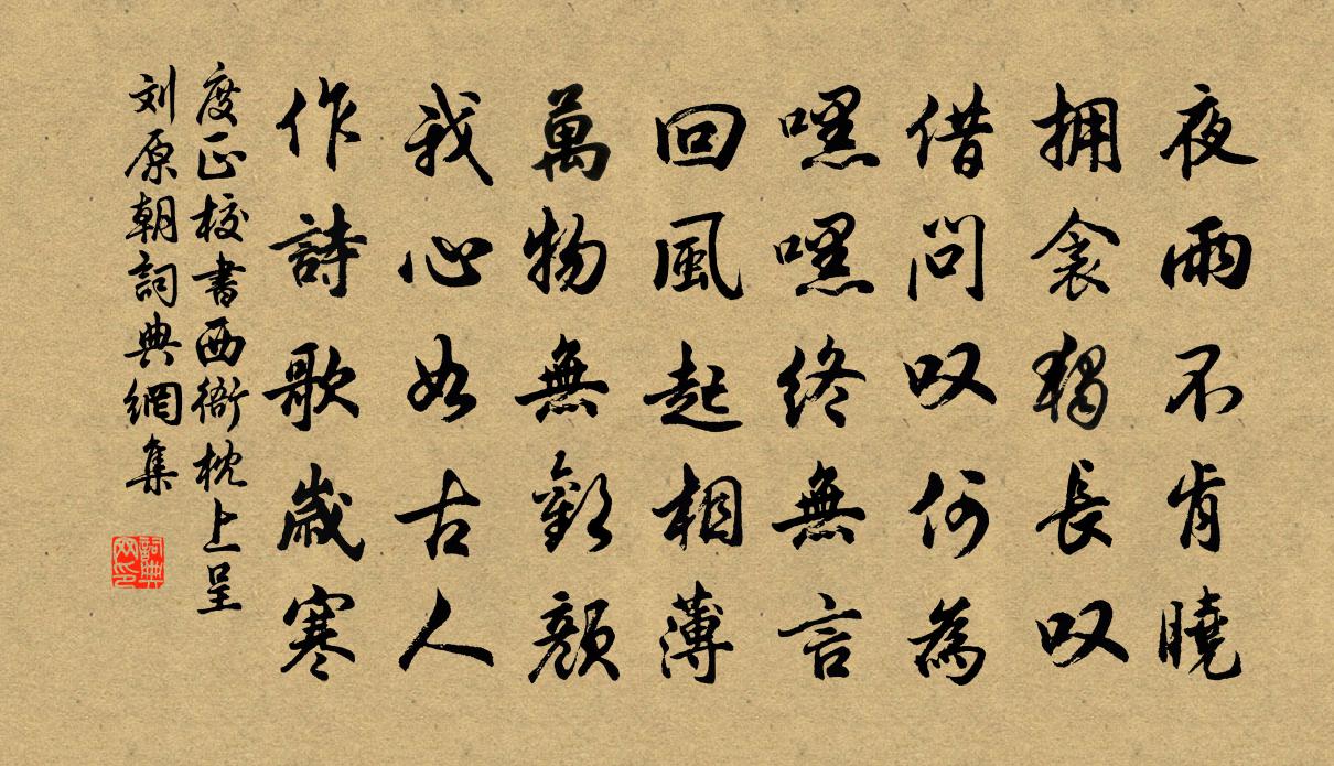 詩詞名句歷史字典書法欣賞書法字典國語詞典說文解字康熙字典古漢語字典標 題 作 者 詩 句 校書西衙枕上呈劉原朝作者:度正 朝代:宋代校書西衙枕上呈劉原朝原文夜雨不肯曉,擁衾獨長嘆。借問嘆何為,嘿嘿終無言。迴風起相薄,萬物無歡顏。我心如古人,作詩歌歲寒。詩詞問答問:校書西衙枕上呈劉原朝的作者是誰?答:度正問:校書西衙枕上呈劉原朝寫於哪個朝代?答:宋代度正校書西衙枕上呈劉原朝書法欣賞校書西衙枕上呈劉原朝書法作品詩詞推薦喜景仁直秘閣司馬光〔宋代〕延閣屹中天,積收雲漢連。神宗重其選,國土此為偏。夫子岷嶓秀,聲名俊造先。清標峻不及,勝氣駛無前。待價九月下旬即事陸游〔宋代〕霜晚知蕎熟,山寒喜酒醲。黃絲聽夜織,赤米看晨舂。儲藥扶持老,收薪準傋冬。兒扶還客拜,顧影嘆龍鍾。三月二十四日自東山到金峨一宿而歸偶題壁上鄭清之〔宋代〕橋石天台水谷簾,峰迴秀擁更深嚴。我來便欲兼忘世,少立清風為指髯。失題曾國藩〔清代〕西山一夜雨,秋氣入庭除。清晨展書坐,翛然樂有餘。天宇一何廓,蕩蕩真吾廬。熇熇誇毗子,奪隘無曠居。眾鱗九日黃樓作蘇軾〔宋代〕去年重陽不可說,南城夜半千漚發。水穿城下作雷鳴,泥滿城頭飛雨滑。黃花白酒無人問,日暮歸來洗靴襪。豈知幽居趙崇嶓〔宋代〕不作無輿嘆,幽居體自胖。能貧蔬食足,投老敝裘安。濁酒融春意,青燈話歲寒。外頭無限事,忙殺不相干。奉和隨王殿下詩 三謝朓〔南北朝〕神心遺魏闕。中想顧汾陽。肅景懷辰豫。捐玦翦山糃。時惟清夏始。雲景曖含芳。月陰洞野色。日華麗池光。草含題綠陰堂黃公度〔宋代〕萬里炎荒一草亭,微官挽我落南溟。誰栽古木圍空翠,為翦卑枝納遠青。風雨半天秋縮瑟,江湖滿地客伶俜。日長學古詩何遜〔南北朝〕鞏洛上東門。薄暮川流側。渾渾車馬道。行人不相識。日夕棲鳥遠。浮雲起新色。寸心空延佇。對面何由即。飛輪次范無外孫花翁游法喜寺韻二首葉茵〔宋代〕江流環合路紆迴,香火千年地少埃。佛法本從方寸起,逢人剛道自西來。和趙周錫制乾峽中韻四首袁說友〔宋代〕千仞山頭更有山,一山去後一山還。林巒有路春回綠,仙洞無人夜啟關。岫列千屏森葆衛,石藏五色像形顏。舉頭九江北岸遇風雨白居易〔唐代〕黃梅縣邊黃梅雨,白頭浪裏白頭翁。九江闊處不見岸,五月盡時多惡風。人間隱路應無限,何事拋身在此中?舟中送李十八(一作送僧)劉長卿〔唐代〕釋子身心無有分,獨將衣缽去人群。相思晚望西林寺,唯有鐘聲出白雲。郡圃上已二首楊萬里〔宋代〕旋收雨夕放晴晨,禊月風光正可人。間白參紅方是錦,疏桃散李不成春。和陶丙辰歲八月中於下潠田舍獲吳芾〔宋代〕淵明事南畝,躬自獲岩隈。雖復竭吾力,卻得舒我懷。所收既不薄,卒歲事可諧。隣家相慰勞,競持酒與雞。留連金石錄後序李清照〔宋代〕 右金石錄三十卷者何?趙侯德父所著書也。取上自三代,下迄五季,鍾、鼎、甗、鬲、盤、彝、尊、敦之款識野田行(一作李益詩)於鵠〔唐代〕日暮出古城,野田何茫茫。寒狐上孤冢,鬼火燒白楊。昔人未為泉下客,若到此中還斷腸。喜晴趙蕃〔宋代〕梅花已遂凍泥空,留得余香傲晚風。春事十分財入手,只愁病眼眩青紅。聞移東兵勦南賊方回〔宋代〕破賊須先易,行軍要出奇。霆轟當不測,烏合本無知。夏稅催科日,秧田插蒔時。掃除如少緩,兩不便公私。留別東郡諸僚友司馬光〔宋代〕白璧紫金為世寶,賢愚知貴莫能名。廟堂祭器杯盤物,隨處得這光彩生。名句推薦風引龍虎旗,歌鐘昔追攀。李白《登邯鄲洪波台置酒觀發兵》 江河之水,非一水之源也;千鎰之裘,非一狐之白也。墨子《墨子·01章 親士》 石溪久住思端午,館驛樓前看發機。盧肇《競渡詩 / 及第後江寧觀競渡寄袁州剌史成應元》 紅深綠暗徑相交,抱暖含芳披紫袍。溫庭筠《寒食日作》 曲終漏盡嚴具陳,月沒星稀天下旦。佚名《雞鳴歌》 善操理者不能有全功,善處身者不能無過失。薛居正《舊五代史·後周·世宗紀二》 勸君頻入醉鄉來,此是無愁無恨處。晏幾道《玉樓春·雕鞍好為鶯花住》 微雨從東來,好風與之俱。陶淵明《讀山海經·其一》 娶妻無媒毋須恨,書中自有顏如玉。趙恆《勸學詩》 力分者弱,心疑者背。尉繚《尉繚子·攻權》