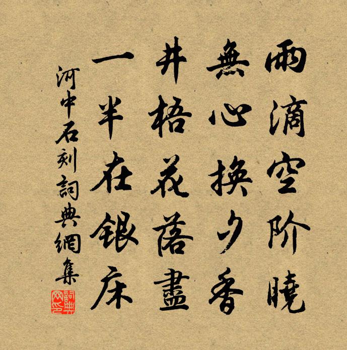 雨滴空階曉,無心換夕香。井梧花落盡,一半在銀床。