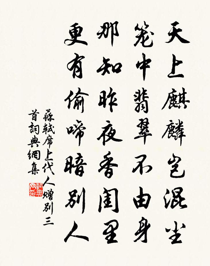 天上麒麟豈混塵,籠中翡翠不由身。那知昨夜香閨里,更有偷啼暗別人。