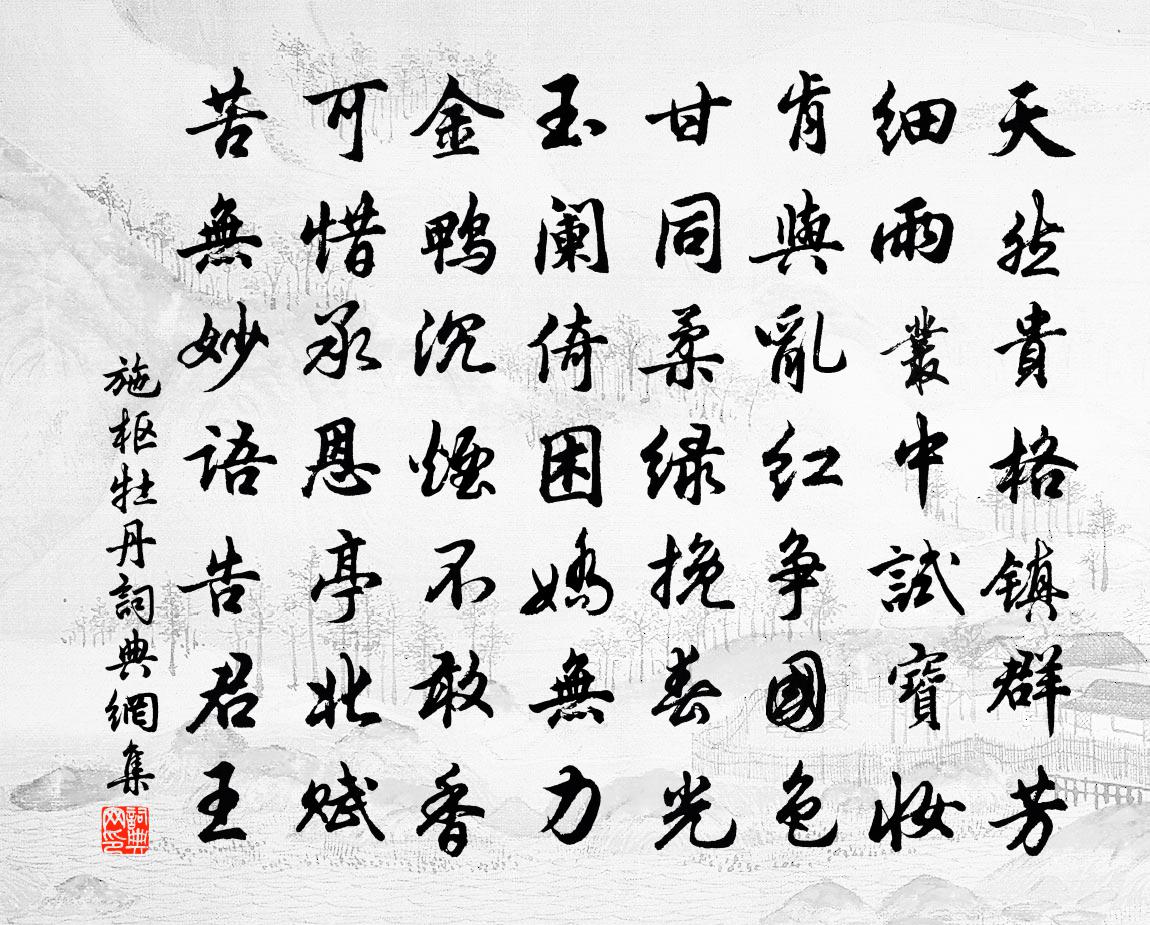 詩詞名句歷史字典書法欣賞書法字典國語詞典說文解字康熙字典古漢語字典標 題 作 者 詩 句 牡丹作者:施樞 朝代:宋代牡丹原文天然貴格鎮群芳,細雨叢中試寶妝。肯與亂紅爭國色,甘同柔綠挽春光。玉闌倚困嬌無力,金鴨沉煙不敢香。可惜承恩亭北賦,苦無妙語告君王。詩詞問答問:牡丹的作者是誰?答:施樞問:牡丹寫於哪個朝代?答:宋代施樞牡丹書法欣賞牡丹書法作品詩詞推薦九日九日曾鞏〔宋代〕淒淒風露滋,靡靡塵靄屏。已忻廬舍清,未苦裘褐冷。眠食味尤嘉,起坐日尚永。虛天照積水,精鑒出幽礦。石瑩中秋偶病連文鳳〔宋代〕中秋不見月,扶病倚蘭乾。故國愁心遠,西風瘦骨寒。縱無今夕醉,容有別時看。且作南飛鵲,一枝聊自安。溪上尋梅不遇王炎〔宋代〕玄冬用事禿千林,蓓蕾凌寒瘦不禁。已喚蒼頭篘臘腳,未逢玉頰吐春心。客居避俗遨遊少,老境看花感慨深。屬付又和六首劉克莊〔宋代〕曾抗歸田疏幾封,天高殊未察微悰。時人今雨誰相過,地主春風獨見容。取友肯遺沮桀溺,論功不下棄勾龍。眉間懷鐘陵舊遊四首杜牧〔唐代〕一謁征南最少年,虞卿雙璧截肪鮮。歌謠千里春長暖,絲管高台月正圓。玉帳軍籌羅俊彥,絳帷環佩立神仙。陸公詠史下張華陳普〔宋代〕孫皓泥頭入洛陽,後庭奪目萬紅妝。銅駝北去還西徙,不怨荀馮怨杜張。歸次樊江陸游〔宋代〕芳草東西路,綠楊長短亭。人生豈匏繫,吾志本鴻冥。征袖朝沾雨,歸帆夜戴星。長魚幸能買,且復倒殘瓶。野次欲訪於從周不果因寄二首王炎〔宋代〕佳士不可見,清遊戲豫期。此心中眷眷,欲去卻遲遲。白酒應新熟,黃粱亦可炊。稍閒當躍馬,說與主人知。送劉秀才南遊齊己〔唐代〕南去謁諸侯,名山亦得游。便應尋瀑布,乘興上岣嶁。高鳥隨雲起,寒星向地流。相思應北望,天晚石橋頭。小桃源佚名〔宋代〕綽約去朝真,仙源萬木春。要知竊桃客,定是會稽人。再次韻十首陳造〔宋代〕朝家無闕政,秋萗繼春雩。恤緯憐吾怯,知言敢自誣。閉陰寧董傅,為己肯楊朱。未斷蝸緣壁,仍多豕負塗。挽使相傅忠簡陳宓〔宋代〕中原文獻舊,四世煒相傳。節操生來異,勛名晚更全。方喔衛武什,遽止太丘年。竟郁經綸志,蒼黔敢扣天。東郊納涼,憶左威衛李錄事收昆季、太原崔參軍三首樓穎〔唐代〕水竹誰家宅,幽庭向苑門。今知季倫沼,舊是辟疆園。飢鷺窺魚靜,鳴鴉帶子喧。興成只自適,欲白返忘言。納涼壬寅歲旦景明子淵君玉攜酒與詩為壽次韻戴復古〔宋代〕舍我白瓷碗,把君金屈卮。判為元日醉,共賦早春詩。冰泮魚龍起,花開蜂蝶知。為子扶病腳,賴有古藤枝。船過蘇州二首楊萬里〔宋代〕垂近姑蘇特轉灣,盤門只隔柳行間。望來望去何時到,且倚船窗看遠山。子夜四時歌:夏歌李白〔唐代〕鏡湖三百里,菡萏發荷花。五月西施采,人看隘若耶。回舟不待月,歸去越王家。蘄口阻風務官點稅戴復古〔宋代〕江漲行無路,西風又打頭。頗聞商婦怨,自作賈胡愁。(下缺四句二十字)偈十三首釋法泰〔宋代〕勿思惟,休造作,展手開拳咄咄咄。隨意說,任天真,鎮州蘿蔔重三斤。堪笑老胡不知有,九年面壁太勞神。餞孟運判寺簿赴京三首岳珂〔宋代〕溫純如玉絕纖瑕,驚坐何人指孟嘉。策馬殿軍勞不伐,舍魚取義理無差。讀碑襄水真為谷,守壘房陵忍雇家。鄉國秋興浩然追憶館殿幽致偶成長句寄徐休學士寇準〔宋代〕軺車南去詠江天,閒憶群賢倍黯然。御水莎青孤立鷺,宮槐煙冷數聲蟬。石渠吏散簾風靜,鳳闕雲歸霽景鮮。幽致名句推薦宮女如花滿春殿,只今惟有鷓鴣飛。李白《越中覽古》 每恨蟪蛄憐婺女,幾回嬌妒下鴛機,今宵嘉會兩依依。毛文錫《浣溪沙·七夕年年信不違》 政者正也。君為正,則百姓從政矣。戴聖《禮記·哀公問》 一曲當筵落淚,重掩羅巾。晏殊《山亭柳·贈歌者》 王者之宰民也,莫不同四海,一遠近, 為父母而子之。令狐德棻《周書·本紀·卷四》 艇子幾時同泛?待折荷花臨鑒。厲鶚《謁金門·七月既望湖上雨後作》 桃未芳菲杏未紅,沖寒先喜笑東風。曹雪芹《詠紅梅花得“紅”字》 忽憶故人天際去,計程今日到梁州。白居易《同李十一醉憶元九》 深居俯夾城,春去夏猶清。李商隱《晚晴》 修身者,智之府也;愛施者,仁之端也;取予者,義之符也;恥辱者,勇之決也;立名者,行之極也班固《漢書·傳·司馬遷傳》