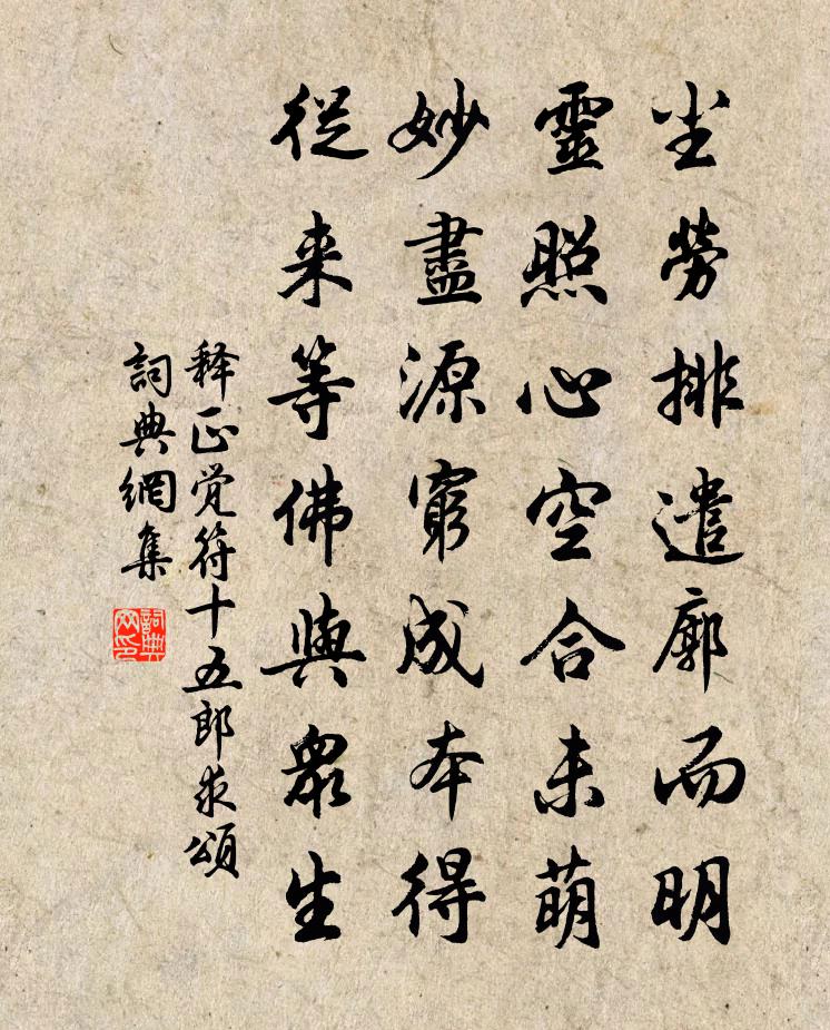 詩詞名句歷史字典書法欣賞書法字典國語詞典說文解字康熙字典古漢語字典標 題 作 者 詩 句 符十五郎求頌作者:釋正覺 朝代:宋代符十五郎求頌原文塵勞排遣廓而明,靈照心空合未萌。妙盡源窮成本得,從來等佛與眾生。詩詞問答問:符十五郎求頌的作者是誰?答:釋正覺問:符十五郎求頌寫於哪個朝代?答:宋代釋正覺符十五郎求頌書法欣賞符十五郎求頌書法作品詩詞推薦雜詩李復〔宋代〕珍圖出榮河,八卦開奧秘。聖人重因襲,已極露隱細。大衍四十九,周流通一氣。陰陽窮必變,往反無終始。元化山中古松薛嵎〔宋代〕曾經雷斧劈,上有鶻巢腥。過客誰摽紙,山精此托靈。虬龍雲際頂,龜鳥土中苓。月夜境荒寂,秋聲不可聽。少華山李廌〔宋代〕少華連延翠煙永,細路緣雲上高頂。奇峰西奔入秦蜀,幽谷南通接荊郢。昔年蛟龍忽變化,怒蹙山巔壓州境。山靈寄從弟李華〔唐代〕眼病身亦病,浮生已半空。迢迢千里月,應與惠連同。南鄉子·歸夢寄吳檣陸游〔宋代〕歸夢寄吳檣,水驛江程去路長。想見芳洲初系纜,斜陽,煙樹參差認武昌。愁鬢點新霜,曾是朝衣染御香。重到故淮西趙漕子固輓詩虞儔〔宋代〕西帥予曾忝,無何馬首東。計台初不遠,交篆竟成空。夜壑移舟半,淮山落木中。堂堂寧復見,丹旐獵霜風。過新喻陳藻〔宋代〕四顧茫茫水接天,遠山如臥白雲邊。馬頭忽看孤峰起,錯喜鄉關是目前。斷雲張耒〔宋代〕斷雲秋望闊,山靄夕成霞。淒冷初高月,喧闐未定鴉。伏羈良馬瘦,掛壁寶月斜。寂寂山城夜,明燈照鬢華。西江月王惟一〔元代〕太極未分混沌,兩儀已非其中。一陽才動破鴻蒙。造化從茲運用。水火升沉南北,木金間隔西東。略移斗柄指坤宮再得崇道觀寄王左史項安世〔宋代〕藥鼎無時手自煎,萬囊長在枕頭邊。罪今脫矣從頭白,病已安之用涕漣。始悟舊詩成卦影,只消崇道了天年。故人圩丁詞十解楊萬里〔宋代〕兩岸沿堤有水門,萬波隨吐復隨吞。君看紅蓼花邊腳,補去修來無水痕。賢者之孝二百四十首盛彥林同〔宋代〕既知為異物,號泣絕還生,未有蠐螬炙,翻令母目明。送王殿直鄭獬〔宋代〕玉尺新裁白紵衣,楊花紛泊滿衫飛。少年不怕風塵惡,污卻鄣泥走馬歸。自堂詩為張億作郭印〔宋代〕大道絕群倫,古今無匹配。張子涉其源,超然意冥會。宴坐一堂空,乾坤皆破碎。八荒自神遊,萬法非我對。眼前放歌行陸游〔宋代〕少年不知老境惡,意謂長如少年樂,朝歌夜舞狂不休,逢人慾覓長生藥。三二十年底難過,屈指朋儕余幾個?就令桑嶺范成大〔宋代〕迴腸山百盤,揮手天一握。俯驚危棧穿,仰詫飛石落。挽輿如挽舟,絕叫斷雙筰。怪蔓纏枯槎,瘠草被幽壑。此豈漁村雜詩十首再和前韻薛嵎〔宋代〕暝色和煙四望迷,仰眠牛背覺天低。村翁遙指笙歌處,此地魚沉鳥不棲。苦雨中又作四聲詩寄魯望平去聲皮日休〔唐代〕狂霖昏悲吟,瘦桂對病臥。檐虛能彯斜,舍蠹易漏破。宵愁將琴攻,晝悶用睡過。堆書仍傾觴,富貴未換個。贈王伯長主簿陸游〔宋代〕學詩大略似參禪,且下功夫二十年。君要親嘗獅子吼,法須盡吐野狐涎。幾人錯會先師話,吾輩元齊古佛肩。天遣故縣作孔武仲〔宋代〕促促遠行役,勞勞群僕夫。上漂以霖雨,下濺以泥途寒入骨脛裂,潤兼巾裳污。行路何其難,我馬亦已瘏。逢人問名句推薦笑拈芳草不知名,乍凌波、斷橋西堍。吳文英《西子妝慢·湖上清明薄游》 馬蹄踏水亂明霞,醉袖迎風受落花。劉因《山家·馬蹄踏水亂明霞》 出入君懷袖,動搖微風發。班婕妤《怨歌行》 欸乃一聲山水綠。回看天際下中流,岩上無心雲相逐柳宗元《漁翁》 低頭獨長嘆,此嘆無人喻。白居易《買花 / 牡丹》 望征路愁迷,離緒難整陸叡《瑞鶴仙梅》 已知泉路近,欲別故鄉難。夏完淳《別雲間》 過橋分野色,移石動雲根。賈島《題李凝幽居》 花徑不曾緣客掃,蓬門今始為君開。杜甫《客至》 君人者釋其刑德而使臣用之,則君反制於臣矣。韓非及後人《韓非子·二柄》