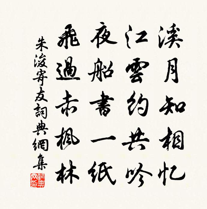 詩詞名句歷史字典書法欣賞書法字典國語詞典說文解字康熙字典古漢語字典標 題 作 者 詩 句 寄友作者:朱浚 朝代:宋代寄友原文溪月知相憶,江雲約共吟。夜船書一紙,飛過赤楓林。詩詞問答問:寄友的作者是誰?答:朱浚問:寄友寫於哪個朝代?答:宋代朱浚寄友書法欣賞寄友書法作品詩詞推薦溪上羅公升〔宋代〕往歲貪奇覽,今年遂老槃。門前溪一發,我作五湖看。逢南中使因寄嶺外故人盧綸〔唐代〕見說南來處,蒼梧接桂林。過秋天更暖,邊海日長陰。巴路緣雲出,蠻鄉入洞深。信回人自老,夢到月應沉。碧水菊花新葛長庚〔宋代〕有個悶甚處,一向如痴醉。獨倚住危闌,坐咬無名指。金魚玉雁一從去,絕訊息。念念懷天帝。密與冥契。晴霞照病後訪梅九絕劉克莊〔宋代〕春信分明到草廬,呼兒沽酒買溪魚。從前弄月嘲風罪,即日金雞已赦除。寄郭印齋黃庚〔宋代〕相思何日得相逢,料想君心與我同。莫怪近來書寄少,雁飛不肯下秋空。王昭君令狐楚〔唐代〕錦車天外去,毳幕雪中開。魏闕蒼龍遠,蕭關赤雁哀。遍游桂林山岩金武祥〔清代〕未暇驂鸞信不誣,玉簪羅帶路紆縈。 桂林山水甲天下,絕妙灕江秋泛圖。 憶王孫 有懷善住〔元代〕天涯芳草碧萋萋。何事王孫去不歸。城郭雖是人民非。信音稀。幾度柳浪聞鶯乾隆〔清代〕南渡宋家忘北金,相於絲管樂春深。新鶯百囀非無意,河北由來有故林。簡史子由主簿釋寶曇〔宋代〕曉行雲海意蒼茫,畫入王維鴻雁行。煙樹屏山分遠近,風帆沙鳥認微芒。筆端應有鮫人淚,句法仍搜墨客腸。日暮寄象田曇藏主釋雲岫〔宋代〕迢迢西望越山青,水宿山行是幾程。為憶象耕遺蹟事,勞心雖苦未勞形。禪人並化主寫真求贊釋正覺〔宋代〕本體無生,諸塵幻成。白髮雪漫頂,青瞳秋在泓。妙觸出礙,機用超情。珠走不留影,谷虛還應聲。默默坐寒唯自偶飲白居易〔唐代〕三盞醺醺四體融,妓亭檐下夕陽中。千聲萬響敲相續,一曲雲和戛未終。今日心情如往日,秋風氣味似春風。唯憎【南呂】乾荷葉劉秉忠〔元代〕乾荷葉,色蒼蒼,老柄風搖盪。減了清香,越添黃。都因昨夜一場霜,寂寞在秋江上。乾荷葉,映著枯蒲,折柄難病瘡白居易〔唐代〕門有醫來往,庭無客送迎。病銷談笑興,老足嘆嗟聲。鶴伴臨池立,人扶下砌行。腳瘡春斷酒,那得有心情。芙蓉月趙以夫〔宋代〕黃葉舞碧空,臨水處、照眼紅苞齊吐。柔情媚態,佇立西風如訴。遙想仙家城闕,十萬綠衣童女。雲縹緲,玉娉婷釣台張伯玉〔宋代〕盡逐鯨鯢埽八區,故人惟我更無餘。雲台功將任圖畫,天上客星閒卷舒。若把 * 來逐鹿,爭似全身歸釣魚。先生醉落魄(後兩日,再拉同官,席上用前韻)管鑒〔宋代〕寒欺酒力。一番風雨花如摘。不與群花敵。笑吐清香,獨自殿春色。春愁惟酒消除得。何妨常滿坐中客。因花更把送渾別駕赴舒州盧綸〔唐代〕江平蘆荻齊,五兩貼檣低。繞郭覆晴雪,滿船聞曙雞。鱣魴宜入貢,橘柚亦成蹊。還似海沂日,風清無鼓鼙。破山寺雙頭白蓮陳掞〔宋代〕湘南夜水風露清,月明耿耿波益平。嬋娟有人步羅襪,瓊璫玉佩雙娉婷。可憐玉骨埋藏久,腸斷人間無復有。豈知名句推薦爾曹身與名俱滅,不廢江河萬古流。杜甫《戲為六絕句·其二》 秋容淺淡映重門,七節攢成雪滿盆。曹雪芹《詠白海棠》 撫我則後,虐我則仇。佚名《尚書·周書·泰誓》 君臣無禮,而上下無別。劉向《戰國策·齊六·貂勃常惡田單》 正己而不求於人則無怨。上不怨天,下不尤人。子思《中庸·第十四章》 齊唱憲王春樂府,金梁橋外月如霜。李夢陽《汴京元夕》 文章已滿行人耳,一度思卿一愴然。李忱《吊白居易》 不看僧面看佛面。吳承恩《西遊記·第三十一回》 當年燕子知何處,但苔深韋曲,草暗斜川。張炎《高陽台·西湖春感》 登舟望秋月,空憶謝將軍。李白《夜泊牛渚懷古》