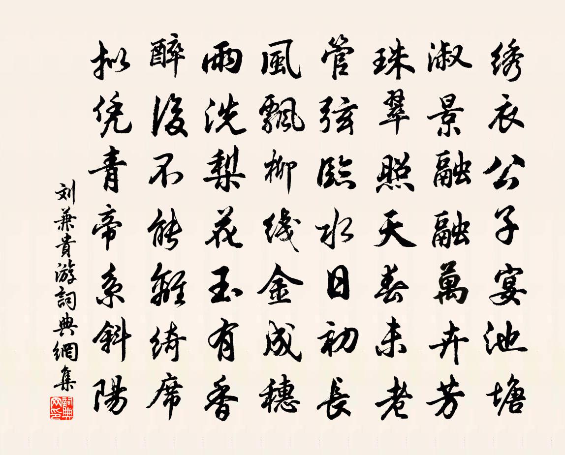 詩詞名句歷史字典書法欣賞書法字典國語詞典說文解字康熙字典古漢語字典標 題 作 者 詩 句 貴游作者:劉兼 朝代:唐代貴游原文繡衣公子宴池塘,淑景融融萬卉芳。珠翠照天春未老,管弦臨水日初長。風飄柳線金成穗,雨洗梨花玉有香。醉後不能離綺席,擬憑青帝系斜陽。詩詞問答問:貴游的作者是誰?答:劉兼問:貴游寫於哪個朝代?答:唐代問:貴游是什麼體裁?答:七律劉兼貴游書法欣賞貴游書法作品注釋全唐詩:卷766-1詩詞推薦解城條山聯句釋用晦〔宋代〕詩見本書魏野一○。解城條山聯句馮存澄為明皇占佚名〔唐代〕合因斬關,鑄印乘軒。始當果斷,終得嗣天。中觴二絕蘇籀〔宋代〕欲瀾秋水剪瞳人,愁絕春山俲玉真。擘了荔支拋豆寇,送鉤非復近前嗔。雜感陸游〔宋代〕擁裘南窗下,堅坐試定力。爐香亦不散,伴我到曛黑。絕交近為我,游世易顛踣。默默何所為?且復自休息。發金陵折柳亭二首張耒〔宋代〕瞿曇昔教我,林下一宵行。何事春江上,依依作俗情。雜曲歌辭少年行韓翃〔唐代〕千點斕斒噴玉驄,青絲結尾繡纏駿。鳴鞭晚出章台路,葉葉春依楊柳風。西江月(十之三)夏元鼎〔宋代〕太一畫前是道,全憑龍虎成丹。九還七返保長年。好個逍遙閒漢。日詣金門玉殿,青衣引贊無言。迴風混合萬神安秋蓮劉因〔元代〕瘦影亭亭不自容,淡香杳杳欲誰通?不堪翠減紅銷際,更在江清月冷中。擬欲青房全晚節,豈知白露已秋風。盛衰水中山花影楊萬里〔宋代〕閉轎那知山色濃,山花影落水田中。水中細數千紅紫,點對山花一一同。擬行路難鮑照〔南北朝〕君不見冰上霜。表里陰且寒。雖蒙朝日照。信得幾時安。民生故如此。誰令摧折強相看。年去年來自如削。白髮零浣溪沙(次秀野酴醿韻)朱熹〔宋代〕壓架年來雪作堆。珍叢也是近移栽。肯令容易放春回。卻恐陰晴無定度,從教紅白一時開。多情蜂蝶早飛來。劉明適屢欲子蒼過其居小酌以詩招之吳則禮〔宋代〕吐心著地誰復識,只有平生韓子蒼。端恨茅屋付秋草,試吟玉繩低建章。枯腸君飽大官肉,禿鬢吾老尚書郎。愛酒寄碧瀾趙右之顧逢〔宋代〕交遊歲月深,彼此各知音。佳句不離口,可人長在心。多愁悲白玉,一笑棄黃金。流高同山樂,床頭自有琴。書事李流謙〔宋代〕五十光陰兩歲過,頭顱閒處自摩挲。隔籬山影誰招去,滿樹梅花獨占多。物色年華同我老,蜂情蝶思柰渠何。少時睡貓胡仲弓〔宋代〕瓶呂斗粟鼠竊盡,床上狸奴睡不知。無奈家人猶愛護,買魚和飯養如兒。別曾學士陸游〔宋代〕兒時聞公名,謂在千載前。稍長誦公文,雜之韓杜編。夜輒夢見公,皎若月在天,起坐三嘆息,欲見亡繇緣。忽聞聽山中談虎賦二章黎廷瑞〔宋代〕樵夫山下日將暮,忽逢飢虎在中路。目光如炬齒如霜,舉頭為城腹為墓。偷生無計就死難,再拜祈哀號且訴。我貧送暢當還舊山盧綸〔唐代〕常逢明月馬塵間,是夜照君歸處山。山中松桂花盡發,頭白屬君如等閒。頌一百則釋重顯〔宋代〕問曾不知,答還不會。月冷風高,古岩寒檜。堪笑路逢達道人,不將語默對。手把白玉鞭,驪珠盡擊碎。不擊碎,水龍吟丘處機〔元代〕洞天春色盈盈,亂山秀出千堆錦。雲收雨斂,曉晴煙淡,碧空橫枕。高臥怡怡,頓開懷抱,釋迷忘寢。看仙花瑞草名句推薦莎衫筠笠。正是村村農務急。盧炳《減字木蘭花·莎衫筠笠》 知人既以為難,自知誠亦不易。吳兢《貞觀政要·卷三·論擇官》 他鄉生白髮,舊國見青山。司空曙《賊平後送人北歸》 別來不寄一行書。尋常相見了,猶道不如初。晁沖之《臨江仙·憶昔西池池上飲》 自是人生長恨水長東。李煜《相見歡·林花謝了春紅》 黃山僅見其腳,惜未一瞻面目。沈復《浮生六記·浪遊記快》 賈傅松醪酒,秋來美更香。杜牧《送薛種游湖南》 行到小溪深處,有黃鸝千百。秦觀《好事近·夢中作》 碧毯線頭抽早稻,青羅裙帶展新蒲。白居易《春題湖上》 玉座猶寂寞,況乃妾身輕。謝朓《同謝諮議詠銅雀台》