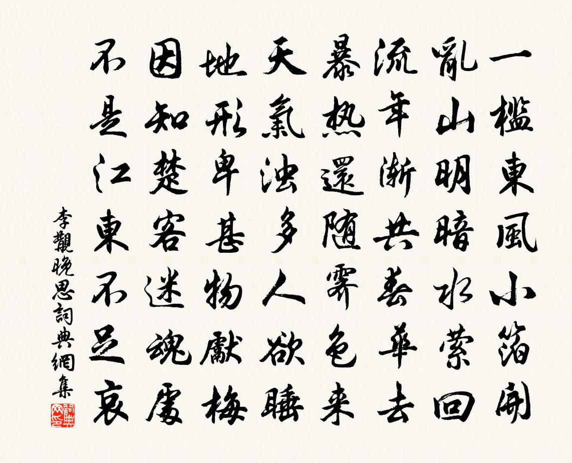 詩詞名句歷史字典書法欣賞書法字典國語詞典說文解字康熙字典古漢語字典標 題 作 者 詩 句 晚思作者:李覯 朝代:宋代晚思原文一檻東風小箔開,亂山明暗水縈迴。流年漸共春華去,暴熱還隨霽色來。天氣濁多人慾睡,地形卑甚物先梅。因知楚客迷1~1魂處,不是江東不足哀。詩詞問答問:晚思的作者是誰?答:李覯問:晚思寫於哪個朝代?答:宋代李覯晚思書法欣賞晚思書法作品詩詞推薦送友人擢第東歸劉駕〔唐代〕同家楚天南,相識秦雲西。古來懸弧義,豈顧子與妻。攜手踐名場,正遇公道開。君榮我雖黜,感恩同所懷。有馬和謝吏部鐵字韻三十四首紀德十一首鄧肅〔宋代〕眼中儒生聊爾耳,僅免春闈飲墨水。可憐四海萬青衿,卻愧建安六七子。誰似丘侯獨可人,日無千篇即怒嗔。腐語沁園春(和答呂柳希)馮取洽〔宋代〕問訊柳溪,溪上柳容,胡為帶埃。嘆陽春陡變,孰為披拂,賞音難遇,誰與徘徊。好在湖山,吾容不辱,寄徑垂條翠玉樓觀雪文天祥〔宋代〕矯矯臨清泚,蒙蒙認翠微。綈春生客袖,鐵冷上戎衣。柳眼驚何老,梅花覺半肥。新來有公事,白戰破重圍。懷寄彭城朋好十首之八王七賀鑄〔宋代〕子敏超龍級,得官何處州。它時趨洛下,獨與士龍游。臨江仙俞國寶〔宋代〕落落江湖三島,才高懶住清都。手攜黃石一編書。醉眠莘壠月,閒釣渭川魚。見說玉階三尺地,思君來講唐虞。夜賦得白鷗歌送李伯康歸使盧綸〔唐代〕積水深源,白鷗翻翻。倒影光素,於潭之間。銜魚魚落亂驚鳴,爭撲蓮叢蓮葉傾。爾不見波中鷗鳥閒無營,何必汲七月四夜十過差涼閒坐和徐子融晦日所寄四絕陳文蔚〔宋代〕珍重羲黃書一編,昔經秦火不能然。君今於此得訊息,豈外吾身更覓天。宿西疇曹教授宅方回〔宋代〕宿羽同夜林,天明各分飛。人生塵土內,別易會合稀。我自錢塘來,君從宣城歸。初喜望顏色,昔癯今似肥。細視乞姚花二首黃庭堅〔宋代〕正是風光嬾困時,姚黃開晚落應遲。欲雕好句乞春色,日曆如山不到詩。挹仙亭真德秀〔宋代〕漢宮葦篋兒呱呱,濟南梓柱陰扶疏。富平家人正愉樂,安昌帝師工獻諛。子真東南一尉耳,黃綬淒涼百僚底。手持名男曰參魯以時喻之李覯〔宋代〕孔門有高弟,曾子以孝著。求諸聖人言,尚曰參也魯。才敏誰不願,顧恐難荷負。苟無德將之,何益於父母。昔如和范倅十首曹勛〔宋代〕對雪惘然懷酒伴,縈心還復為詩魔。老農心念須三白,漁父家風想一蓑。期秦伯鎮不至蔡襄〔宋代〕高人懷真趣,每欲棄祿仕。超然外造化,那復顧妻子。有田給饑寒,有路出生死。儻得自由身,休隨榮利起。或聞上元日大雪曾幾〔宋代〕句芒整轡浹辰間,雪片相隨大可觀。挑菜園林有餘潤,燒燈庭院不勝寒,柳條弄色政爾好,梅蕊飄香殊未闌。便似浣溪沙元好問〔金代〕為愛劉郎駐玉華。暗將心事許煙霞。石田茅屋老生涯。鐵笛不須從二草,頭巾長擬掛三花。他年人說漫郎家。晨謁宮門小雨初過宋庠〔宋代〕宮漏籤聲急,天街雨腳微。曉寒凌禁樹,春氣裛朝衣。瑞霧輕猶濕,香塵重不飛。雞人傳鑰出,華旭滿丹闈。轉運少卿生日朱長文〔唐代〕昔在章聖朝,先君為名臣。入陪儒林老,出擁使者輪。忠漠與休烈,萬世永不泯。惜哉未大任,天意昌後人。公生高宗皇帝輓詞五首李巘〔宋代〕赫奕中興事,洪圖久系隆。垂裳三紀後,脫屣再星終。靈馭龍騰座,仙晨鶴翥空。薰琴無盡意,遏密卷悲風。寄懷佚名〔唐代〕畫檐春燕須同宿,蘭浦雙鴛肯獨飛。長恨桃源諸女伴,等閒花里送郎歸。名句推薦黃鸝囀處誰同聽,白菊開時且剩過。司空圖《白菊雜書四首》 雨下飛花花上淚,吹不去,兩難禁陳子龍《唐多令·寒食》 故人何處。帶我離愁江外去。呂本中《減字木蘭花·去年今夜》 在上不驕,高而不危;制節謹度,滿而不溢。孔子及其弟子《孝經·諸侯》 恰似春風相欺得,夜來吹折數枝花。杜甫《絕句漫興九首·其二》 賞心樂事共誰論?花下銷魂,月下銷魂。唐寅《一剪梅·雨打梨花深閉門》 雙星良夜,耕慵織懶,應被群仙相妒。范成大《鵲橋仙·七夕》 玉座猶寂寞,況乃妾身輕。謝朓《同謝諮議詠銅雀台》 浴不必江海,要之去垢;馬不必騏驥,要之善走。司馬遷《史記·外戚世家》 以子之矛陷子之盾韓非及後人《韓非子·難一》