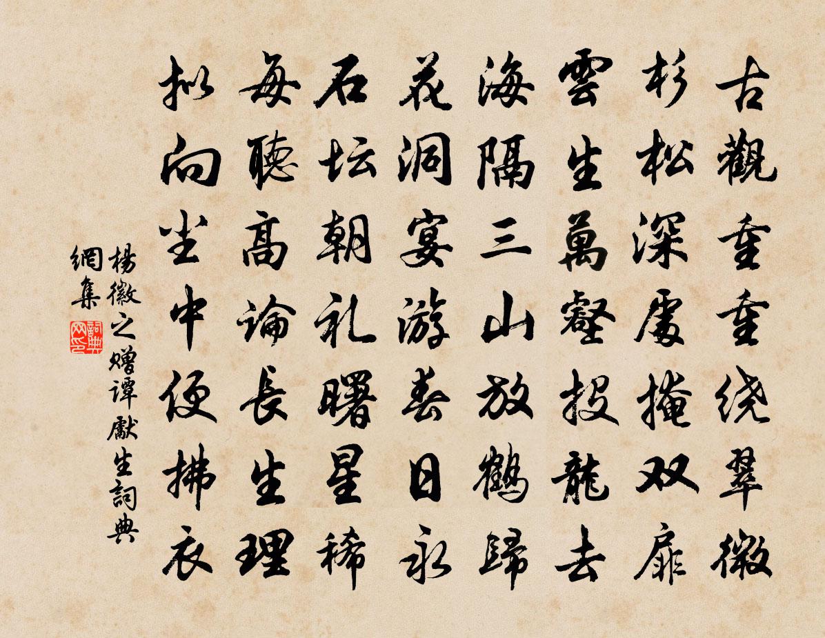 詩詞名句歷史字典書法欣賞書法字典國語詞典說文解字康熙字典古漢語字典標 題 作 者 詩 句 贈譚先生作者:楊徽之 朝代:唐代贈譚先生原文古觀重重繞翠微,杉松深處掩雙扉。雲生萬壑投龍去,海隔三山放鶴歸。花洞宴遊春日永,石壇朝禮曙星稀。每聽高論長生理,擬向塵中便拂衣。詩詞問答問:贈譚先生的作者是誰?答:楊徽之問:贈譚先生寫於哪個朝代?答:唐代楊徽之贈譚先生書法欣賞贈譚先生書法作品詩詞推薦西子妝慢/西子妝張炎〔宋代〕白浪搖天,青陰漲地,一片野懷幽意。楊花點點是春心,替風前、萬花吹淚。遙岑寸碧。有誰識、朝來清氣。自沈上西平·送陳舍人吳泳〔宋代〕跨征鞍,橫戰槊,上襄州。便匹馬、蹴踏高秋。芙蓉未折,笛聲吹起塞雲愁。男兒若欲樹功名,須向前頭。 鳳雛題嶽麓西軒三絕胡寅〔宋代〕偶向紅塵得此生,歲寒松竹尚多情。道人亦有生前契,幽處開軒巧見迎。棲雲龍潭陳自新〔宋代〕石刻仙潭神筆題,我來觀感仰靈祠。千年墨浸東風裡,一掬吟魂秋水湄。日暖香生起鶯鳳,月明影動舞蛟螭。飛鸞送才元長樂倅蘇籀〔宋代〕東省西台除吏目,軼才勿謂得途賒。孰雲相貳徒勞職,政恐東南弗復加。常袞頒宣禮翹秀,仲翔好事走幽遐。口占歲晚試筆一首劉克莊〔宋代〕憶與諸賢共造廷,暮年屈指略凋零。顏郎衫色有時紫,潘令鬢毛無日青。小草自應慚遠志,落英猶足制頹齡。左丞又和寄提刑太保余靖〔宋代〕常記臨岐把酒杯,芳心應得見歸來。不從去日丁寧約,已向東風取次開。清燕固難停燭待,雕鞍須是著鞭催。欄邊謝雙溪見招曹勛〔宋代〕入夏山中樂有餘,梅風淡淡雨疏疏。塵勞久欲雙溪去,正類飢鷹待一呼。頌古十一首釋子益〔宋代〕出與未出,蓮花荷葉。老倒智門,舌頭無骨。冬夜讀几案間雜書得六言二十首劉克莊〔宋代〕鸚鵡洲猶自若,銅雀台安在哉。老瞞真大不道,狂生恃小有才。漫興劉克莊〔宋代〕保社有幽子,戶庭無雜賓。若非負苓者,即是耦耕人。筇穩慵呼馬,蔬甘勝擘麟。篋中詩又滿,誰謂此翁貧。偈頌一百二十三首釋崇岳〔宋代〕入門一句,賓主歷然。不勞彈指,天寬地寬。壺中訊息異人間。書事吳則禮〔宋代〕溪北溪南梅樹枝,斬新華萼出疏籬。獨憐醉處錦成幄,端恨愁時雪打圍。老夫不奈羽觴急,幽討未辜春日遲。慚愧五月五日蜀州放解牓第一人楊監具慶下孤生愴陸游〔宋代〕甲午五月之庚寅,淵魚躍起三江津,震雷霪雨夜達晨,我知決定非凡鱗。人生富貴不逮親,萬鍾五鼎空酸辛。少年郡齋臥疾絕句韋應物〔唐代〕香爐宿火滅,蘭燈宵影微。秋齋獨臥病,誰與覆寒衣。周公禮殿李石〔宋代〕蜀侯作頖錦水湄,先聖先師同此室。巍然夫子據此座,殿以周公名自昔。聖人現金兩如一家,均是周人先後出。想齊天樂蔣捷〔宋代〕銀蟾飛到觚稜外。娟娟下窺龍尾。電紫鞘輕,雲紅筤曲,雕玉輿穿燈底。峰繒岫綺。沸一簇人聲,道隨竿媚。侍女謁洪澤鎮龍祠袁說友〔宋代〕平生忠孝徹幽冥,稽首龍祠鑒此誠。自是皇靈頻震疊,也知神力解因成。片帆以往無多路,百里之間只一程。目斷青玉案張元乾〔宋代〕王孫陌上春風鞚。蕊珠宴、雲軿從。歸去笙歌常醉擁。蠟殘花炬,月侵冰簟,慣作涼堂夢。玉人勸客釵斜鳳。條脫祝英台近(和辛稼軒“寶釵分”韻)吳潛〔宋代〕霧霏霏,雲漠漠,新綠漲幽浦。夢裡家山,春透一犁雨。傷心塞雁回來,問人歸未,怎知道、蝸名留住。鏡中覷。名句推薦薊城通漠北,萬里別吾鄉。李頎《古塞下曲》 與肩挑貿易,毋占便宜;見貧苦親鄰,須加溫恤。朱柏廬《朱子家訓·全文》 官不得其才,比於畫地作餅,不可食也。吳兢《貞觀政要·卷三·論擇官》 聞說東風亦多情,被竹外、香留住。史達祖《留春令·詠梅花》 雲青青兮欲雨,水澹澹兮生煙。李白《夢遊天姥吟留別 / 別東魯諸公》 遊子春衫已試單,桃花飛盡野梅酸。吳濤《絕句·遊子春衫已試單》 淮水東邊舊時月,夜深還過女牆來。劉禹錫《金陵五題·石頭城》 天外鳳凰誰得髓?無人解合續弦膠。杜牧《讀韓杜集》 記問之學,不足以為人師。戴聖《禮記·學記》 東船西舫悄無言,唯見江心秋月白。白居易《琵琶行 / 琵琶引》
