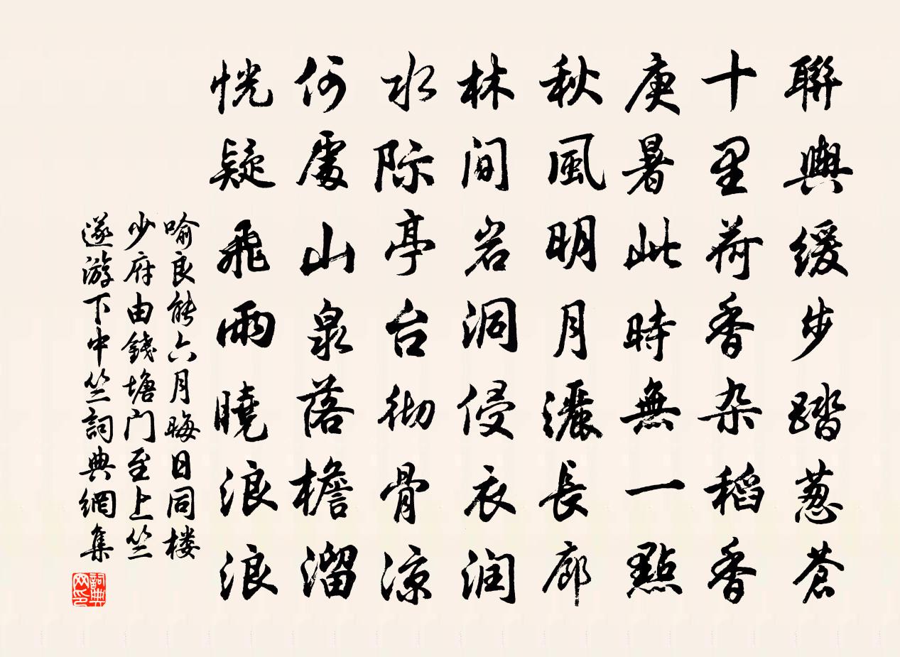 詩詞名句歷史字典書法欣賞書法字典國語詞典說文解字康熙字典古漢語字典標 題 作 者 詩 句 六月晦日同樓少府由錢塘門至上竺遂游下中竺作者:喻良能 朝代:宋代原文聯輿緩步踏蔥蒼,十里荷香雜稻香。庚暑此時無一點,秋風明月灑長廊。林間岩洞侵衣潤,水際亭台徹骨涼。何處山泉落檐溜,恍疑飛雨曉浪浪。詩詞問答問:《六月晦日同樓少府由錢塘門至上竺遂游下中竺》的作者是誰?答:喻良能問:該詩寫於哪個朝代?答:宋代書法欣賞六月晦日同樓少府由錢塘門至上竺遂游下中竺書法作品詩文賞析【原題】:六月晦日同樓少府由錢塘門至上竺遂游下中竺憩冷泉亭塗中記所歷詩詞推薦哭翰林丁侍郎劉得仁〔唐代〕相知出肺腑,非舊亦非親。每見雲霄侶,多揚鄙拙身。即期扶泰運,豈料哭賢人。應是隨先帝,依前作近臣。平生次韻文潛瞻啟聖院旃檀像晁補之〔宋代〕至人如幻千億身,若以色觀皆世人。大千初自一漚發,變化誰能知本因。移天宮殿著人世,斷取無異陶家輪。當年菩薩蠻(再登賞心用林子長韻)丘崈〔宋代〕壺邊擊斷歌無節。山川一帶傷情切。依舊石頭城。夕陽天外明。行人誰是侶。遺唱今何許。對酒轉愁多。愁多奈酒送蜀人張師厚赴殿試二首蘇軾〔宋代〕雲龍山下試春衣,放鶴亭前送落暉。一色杏花三十里,新郎君去馬如飛。望西太乙宮四聖觀半為僧寺方回〔宋代〕紅牆半舊粉牆新,泥塑金塗各有神。僧道不須閒計較,等為和靖守墳人。復吳秘正五詩陳造〔宋代〕作宰古尚教,宓齊但橫琴。唐吏猶易為,讀書或松林。一從來海瀕,琴書暗塵侵。俗有隻今異,鞭撲違寸心。諸公載酒賀余休致水村農卿有詩次韻劉克莊〔宋代〕別無穴隙可鑽窺,常恐冥行踐駭機。恰則賜環煩內引,俄然只履已西歸。都忘紫禁菸花繞,絕喜青山筍蕨肥。應被題成都玉局觀孫位畫龍貫休〔唐代〕我見蘇州崑山佛殿中,金城柱上有二龍。老僧相傳道是僧繇手,尋常入海共龍斗。又聞蜀國玉局觀有孫遇跡,蟠屈日鑄山中阻雪釋文珦〔宋代〕來訪幽人宿,春風未變和。水聲依澗遠,雪意向山多。坡竹摧新粉,杉失舊柯。山童曉相報,鹿跡夜曾過。泰娘歌劉禹錫〔唐代〕泰娘家本閶門西,門前綠水環金堤。有時妝成好天氣,走上皋橋折花戲。風流太守韋尚書,路傍忽見停隼旟。斗量登嵩山十首 啟母石蘇轍〔宋代〕神夫化黃熊,神母化白石。嬰兒剖還父,涕泣何暇恤。爾來三千歲,往事誰復識。惟有少姨存,相望居二室。夷山醉歌汪元量〔宋代〕楚狂醉歌歌正發,更上樑台望明月。朔風獵獵吹我衣,絕代佳人皎如雪。搥羯鼓,彈箜篌,烹羊宰牛坐糟丘,一笑寄盧先輩杜牧〔唐代〕一從分首劍江濱,南國相思寄夢頻。書去又逢商嶺雪,信回應過洞庭春。關河日日悲長路,霄漢年年望後塵。猶指贈清曉師釋智圓〔宋代〕道勝塵機息,講餘林葉枯。清名高臥遠,黑髮苦吟無。庭靜秋雲澹,窗閒夜月孤。時聞適幽興,上閣望平湖。頌古二十八首釋道川〔宋代〕山堂靜坐夜無言,寂寂寥寥本自然。何事西風動林野,一聲寒雁唳長天。又次韻三首廖行之〔宋代〕養禾欲雨稼欲晴,閔閔此事須天成。湘田是處可穫稻,村酒縱飲無幾萍。老農歡喜自舉白,俗士觸縮誰飛英。如今望江南/憶江南盧祖皋〔宋代〕疏雨過,芳節到戎葵。纏臂細交紋線縷,稱身初試碧綃衣。閒步小亭池。花下意,脈脈有誰知。試把花梢和恨數,和留守令狐相公答白賓客劉禹錫〔唐代〕麥隴和風吹樹枝,商山逸客出關時。身無拘束起長晚,路 * 親行自遲。官拂象筵終日待,私將雞黍幾人期。君來送喬布聖秦觀〔宋代〕鷃翔蓬蒿非所悲,鵬擊風雲非所喜。貴賤窮通盡偶然,回頭總是東海水。我思田文昔相齊,朱袍照日如雲霓。三千辛卯滿散天基節即事六首劉克莊〔宋代〕小臣無狀掛丹書,還著青袍兩載餘。物色依然如碧鸛,階銜久矣削緋魚。名句推薦井灶有遺處,桑竹殘朽株。陶淵明《歸園田居·其四》 天際兩蛾凝黛,愁與恨、幾時極。韓元吉《霜天曉角·題採石蛾眉亭》 死殃殘亡,非自至也,惑召之也。呂不韋《呂氏春秋·紀·孟春紀》 莫道君行早,更有早行人。佚名《增廣賢文·上集》 人事有代謝,往來成古今。孟浩然《與諸子登峴山》 世所相信,在能行,不在能言。王永彬《圍爐夜話·第九九則》 脈脈花疏天淡,雲來去、數枝雪。范成大《霜天曉角·梅》 君子以鐘鼓道志,以琴瑟樂心。荀子《荀子·樂論》 莫信直中直,須防仁不仁。佚名《增廣賢文·上集》 薄倖郎君何日到,想自當初,莫要相逢好。施耐庵《蝶戀花·一別家山音信杳》