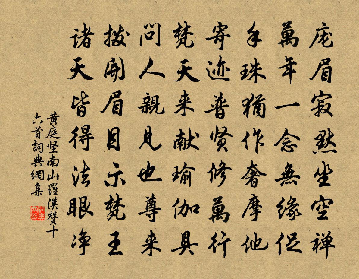 詩詞名句歷史字典書法欣賞書法字典國語詞典說文解字康熙字典古漢語字典標 題 作 者 詩 句 南山羅漢贊十六首作者:黃庭堅 朝代:宋代南山羅漢贊十六首原文龐眉寂默坐空禪,萬年一念無緣促。手珠猶作奢摩他,寄跡普賢修萬行。梵天來獻瑜伽具,問人親見也尊來。撥開眉目示梵王,諸天皆得法眼淨。詩詞問答問:南山羅漢贊十六首的作者是誰?答:黃庭堅問:南山羅漢贊十六首寫於哪個朝代?答:宋代問:黃庭堅的名句有哪些?答:黃庭堅名句大全黃庭堅南山羅漢贊十六首書法欣賞南山羅漢贊十六首書法作品詩詞推薦送黃文叔侍郎赴三山楊簡〔宋代〕某信人心即大道,先聖遺言茲可考。心之精神是謂聖,詔告昭昭復皜皜。如何後學尚生疑,職由起意而支離。自此江城子 送趙致堂王結〔元代〕嫩黃初上遠林端。餞征鞍。駐江乾。滿袖春風,喬木舊衣冠。怎么禁持離別恨,傾濁酒,助清歡。夫君家世幾*鸞有感蘇麟〔宋代〕近水樓台先得月,向陽花木易為春。軍中冬燕韋應物〔唐代〕滄海已雲晏,皇恩猶念勤。式燕遍恆秩,柔遠及斯人。茲邦實大藩,伐鼓軍樂陳。是時冬服成,戎士氣益振。虎竹南康道中羅隱〔唐代〕弱冠負文翰,此中聽鹿鳴。使君延上榻,時輩仰前程。丹桂竟多故,白雲空有情。唯余路旁淚,沾灑向塵纓。送詹少游之平江王炎〔宋代〕溪上相逢把盞時,回頭今是一年余。聞君有喜驅都騎,顧我無聊守敝廬。信道此行騎鳳背,未知何日寄魚書。月明歸去來集字十首蘇軾〔宋代〕寄傲疑今是,求榮感昨非。聊欣樽有酒,不恨室無衣。丘壑世情遠,田園生事微。柯庭還獨眄,時有鳥歸飛。論語絕句一百首張九成〔宋代〕文子平生不妄為,仲尼想亦喜聞之。或能再矣斯猶可,何況加之以三思。金陵雜興二百首蘇泂〔宋代〕兵戈啑血只空回,天意人情未可猜。堪笑當時誰督府,卷旗夜半渡長淮。牡丹開已數日方盛麗未艾也成二絕錢時〔宋代〕未到牡丹春未好,花開恰莫怨春遲。金沙玉板相扶擁,正是東君極盛時。玉樓春謝逸〔宋代〕弄晴數點梨梢雨。門外畫橋寒食路。杜鵑飛破草間煙,蛺蝶惹殘花底露。東君著意憐樊素。一段韶華都付與。妝成和潘叔治題劉道士房畫薛稷六鶴圖六首其二顧梅堯臣〔宋代〕舉足徒有勢,行沙遂無蹤。回頸誠已久,未知竟何從。安能見儔侶,顧望自顒顒。次韻玉汝弟乞致仕不允韓維〔宋代〕人生大節在行藏,七十歸休有舊章。紅旆碧幢雖帝寵,紫嵩清潁是吾鄉。老依蓮社心沖寞,夢繞榆關路杳茫。何日哭故人曹十九秘校叔明海陽四十弟自潮州送歸林亦之〔宋代〕淚眼才乾更哭君,殘陽破寺起愁雲。故人海上能多少,已見江南有兩墳。祝英台近李彭老〔宋代〕杏花吹,梅花過,時節又春半。簾影飛梭,輕陰小庭院。舊時月底鞦韆,吟香醉玉,曾細聽、歌珠一串。忍重見。自嘲用前韻陸游〔宋代〕殘年過六十,寂寞臥山中。病眼驚新暗,衰顏失舊紅。人譏作詩瘦,自憫著書窮。輸與封侯骨,雲台競策功。詠快活三首陳藻〔宋代〕武林試罷過仙霞,行路崎嶇各憶家。怪問老夫何所喜,飄搖飛舞似楊花。永遇樂佚名〔宋代〕功名閒事,利祿休問,莫繫心上。幸有衣食,隨緣過得,著甚乾勞攘。風前月下,三杯兩盞,撞著即莫與放。且與題馮園三首李新〔宋代〕林園暖日注蔫紅,啼鳥得來樹亦空。莫道主人無意在,解將籬落護春風。眼兒媚仇遠〔宋代〕謝家池館占花中。微雨濕春風。艷紅修碧,濃香疏影,浮動簾櫳。嬌蛾聚翠尋春夢,衣上淚痕重。閒窗愁對,金籠名句推薦又有牆頭千葉桃,風動落花紅蔌蔌。元稹《連昌宮詞》 疏懶意何長,春風花草香。黃庭堅《菩薩蠻·半煙半雨溪橋畔》 數枝門柳低衣桁,一片山花落筆床。岑參《山房春事二首》 求備之心,可用之以修身,不可用之心接物王永彬《圍爐夜話·第一五九則》 閣雪雲低,卷沙風急,驚雁失序。吳文英《永遇樂·探梅次時齋韻》 秦中花鳥已應闌,塞外風沙猶自寒。王翰《涼州詞二首》 綠池落盡紅蕖卻,荷葉猶開最小錢。楊萬里《秋涼晚步》 此地別燕丹,壯士發衝冠。駱賓王《於易水送人 / 於易水送別》 暗燈涼簟怨分離,妖姬,不勝悲。閻選《河傳·秋雨》 秋送新鴻哀破國,晝行飢虎齧空林。鄭思肖《二礪》