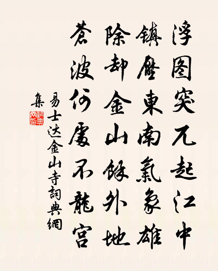 詩詞名句歷史字典書法欣賞書法字典國語詞典說文解字康熙字典古漢語字典標 題 作 者 詩 句 金山寺作者:易士達 朝代:宋代金山寺原文浮圖突兀起江中,鎮壓東南氣象雄。除卻金山餘外地,蒼波何處不龍宮。詩詞問答問:金山寺的作者是誰?答:易士達問:金山寺寫於哪個朝代?答:宋代易士達金山寺書法欣賞金山寺書法作品詩詞推薦魏屯田知楚州梅堯臣〔宋代〕淮南木葉驚,淮上使君行。天外高帆出,沙頭侯吏迎。夜漸通廢埭,秋月滿孤城。正遲文翁化,從來楚俗輕。景陽宮井李覯〔宋代〕以色從人自古然,幸逢聖主得稱賢。太王姜女來岐下,應不相將墜井泉。次韻趙青之水口道中李彌遜〔宋代〕我從楚江來,不見閩江大。雲山路嶮巘,水石勢澎湃。舟行曲屈間,溪面浮百怪。蒿師力推拿,如下吾儂拜。丈人晚霽趙蕃〔宋代〕雨歇蟬聲抱木悲,茅檐獨立看雲移。一陰十日不見月,想見清光分外奇。挽宜人趙氏程珌〔宋代〕分胃 * 媛,來嬪相國孫。孝慈山上梓,法度潤濱蘩。鳳去簫沉響,鸞空鏡掩痕。家庭薰沐事,千古鏡南軒。致仕得請泛舟歸第宋庠〔宋代〕輔郡初辭節,孤舟始去官。橋頭帆影急,枕底浪聲寒。好爵雲誰寵,危心且自安。賜車誠可愛,閒共子孫看。暮熱游荷池上五首楊萬里〔宋代〕也不多時便立秋,寄聲殘暑速拘收。瘦蟬有得許多氣,吟落斜陽未肯休。登單于台張蠙〔唐代〕邊兵春盡回,獨上單于台。白日地中出,黃河天外來。沙翻痕似浪,風急響疑雷。欲向陰關度,陰關曉不開。贈相道士梁彌仙姚勉〔宋代〕羅浮古洞天,花木麗春曉。仙人住其間,鸞鵠飛矯矯。尚有蒼生心,一念百憂繞。日與諸賢游,仙人如此少。徐潘與同幕集南樓再用韻方岳〔宋代〕飛蓋臨邊城,敵在吾目中。古今一俯仰,衰草迷隋宮。書生故倦遊,龐眉感秋蓬。安得雙飛鴻,跨此萬里風。下視春日訪獨孤處士杜荀鶴〔唐代〕地僻春來靜,深宜長者居。好花都待晚,修竹不妨疏。雁入湘江食,人侵曉色鋤。似君無學處,頭白道如初。孟子當務為急陳普〔宋代〕道之所貴通全體,何暇區區旋較量。惟是綱維無所作,千條萬目自分張。韓范用兵羅大經〔宋代〕奮髯要斬高郵守,攘臂甘驅好水軍。到得繞床停轡日,始知心服范希文。九吟詩清音吳昌裔〔宋代〕山出涓寒一道泉,昱聲落澗玉錚然。轆轤引上泥丸頂,便是人間料腳仙。聞蟬蒲壽宬〔宋代〕閉息含真抱葉枯,春風將盡蛻寒膚。綠槐忽作仙人嘯,長曳一聲山日晡。拜孫花翁墓下仇遠〔宋代〕水仙分地葬詩人,一片荒山野火焚。薦菊有亭今作圃,埽松無地漫留墳。蝸牛負殼黏碑石,老鸛攜雛入隴雲。欲把洛陽試院樓上新晴五絕蘇轍〔宋代〕天壇王屋北侵河,高比嵩丘一倍多。小有清靈今尚在,俗緣深重奈成魔。五雲詩衛宗武〔宋代〕行岩萬壑東南美,中有一山尤秀偉。伊誰衣被以佳名,非霧非煙騰瑞氣。有人於此曾課書,出山能士為寫圖。風林聞應德茂先離棠溪唐彥謙〔唐代〕落日蘆花雨,行人谷樹村。青山時問路,紅葉自知門。苜蓿窮詩味,芭蕉醉墨痕。端知棄城市,經席許頻溫。解悶 其二王冕〔元代〕荒城驚歲晚,風雨奈何人?野火殊無侶,江梅自得春。停杯吟思遠,照鏡□華新。底事堪愁絕?悲笳撼塞塵。名句推薦疏雨池塘見,微風襟袖知。陰陰夏木囀黃鸝賀鑄《南歌子·疏雨池塘見》 江湖多風波,舟楫恐失墜。杜甫《夢李白二首·其二》 時節是重陽,菊花牽恨長。徐燦《菩薩蠻·秋閨》 上士聞道,勤而行之;中士聞道,若存若亡;下士聞道,大笑之。老子《老子·德經·第四十一章》 桃李不言,下自成蹊。司馬遷《史記·李將軍列傳》 想得此時情切,淚沾紅袖黦。韋莊《應天長·別來半歲音書絕》 舊曲梅花唱,新正柏酒傳。孟浩然《歲除夜會樂城張少府宅》 文章憎命達,魑魅喜人過。杜甫《天末懷李白》 夜深斜搭鞦韆索,樓閣朦朧煙雨中。韓偓《夜深 / 寒食夜》 十二闌乾,故國三千里。王庭筠《鳳棲梧·衰柳疏疏苔滿地》