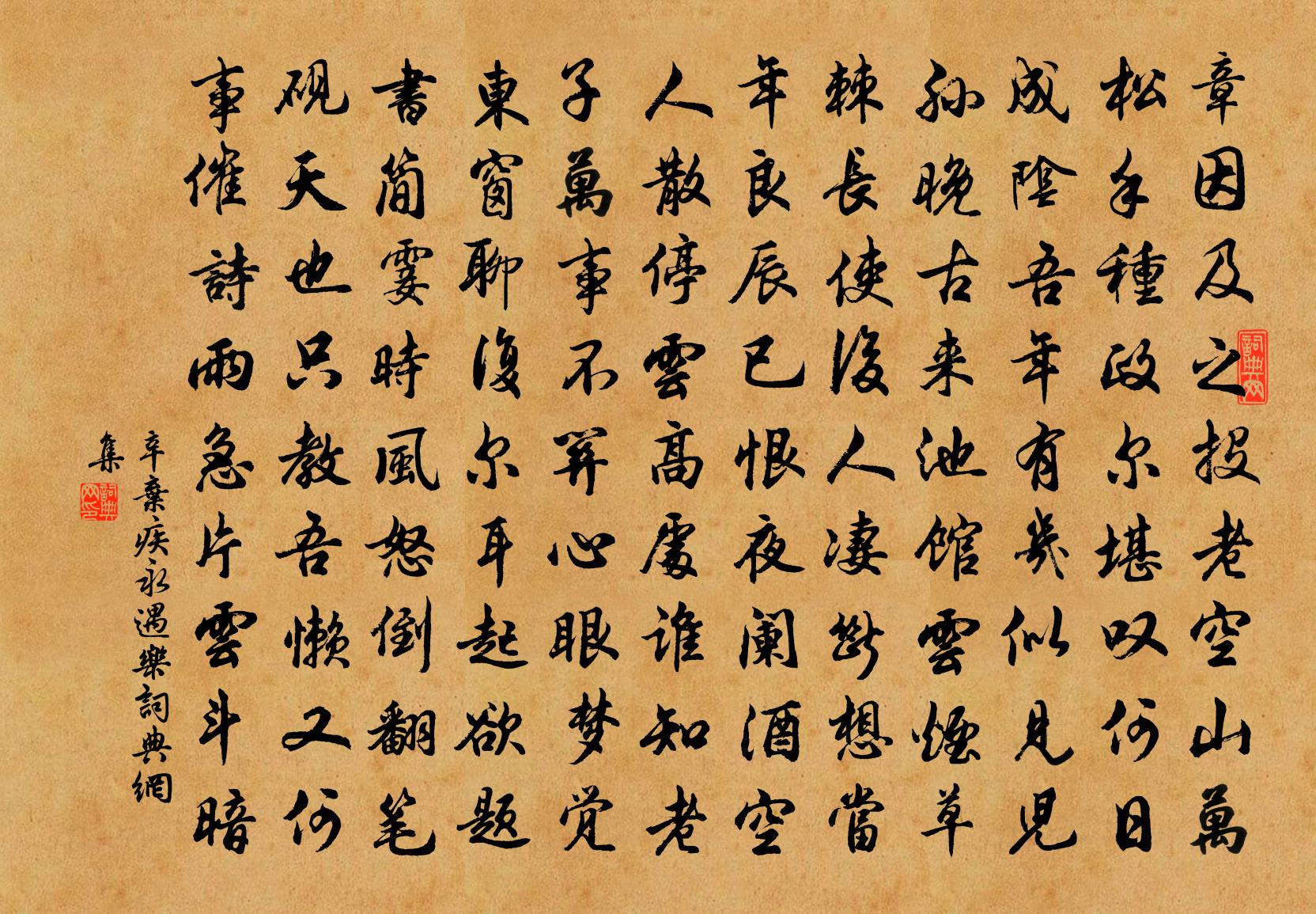 投老空山,萬鬆手種,政爾堪嘆。何日成陰,吾年有幾,似見兒孫晚。古來池館,雲菸草棘,長使後人淒斷。想當年、良辰已恨,夜闌酒空人散。