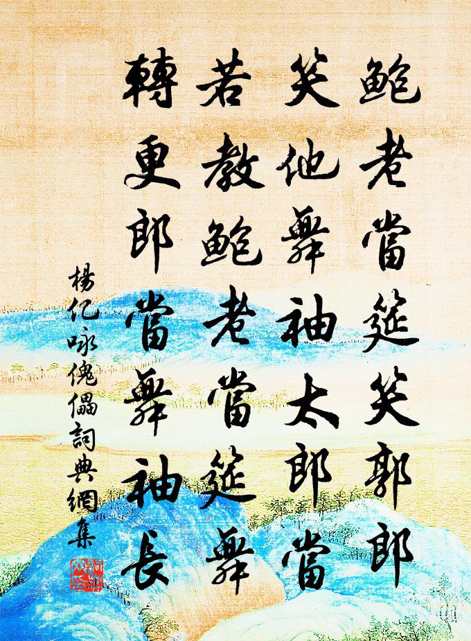 鮑老當筵笑郭郎,笑他舞袖太郎當。若教鮑老當筵舞,轉更郎當舞袖長。