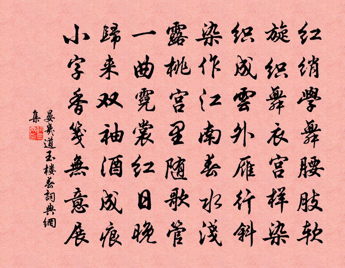 紅綃學舞腰肢軟。旋織舞衣宮樣染。
