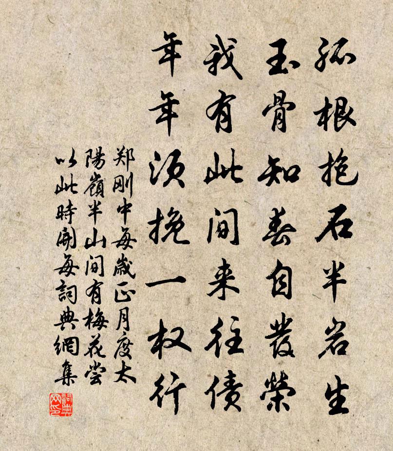 詩詞名句歷史字典書法欣賞書法字典國語詞典說文解字康熙字典古漢語字典標 題 作 者 詩 句 每歲正月度太陽嶺半山間有梅花嘗以此時開每作者:鄭剛中 朝代:宋代原文孤根抱石半岩生,玉骨知春自發榮。我有此間來往債,年年須挽一權行。詩詞問答問:《每歲正月度太陽嶺半山間有梅花嘗以此時開每》的作者是誰?答:鄭剛中問:該詩寫於哪個朝代?答:宋代書法欣賞每歲正月度太陽嶺半山間有梅花嘗以此時開每書法作品詩文賞析【原題】:每歲正月度太陽嶺半山間有梅花嘗以此時開每見必拍枝丙午歲成一絕詩詞推薦客久董嗣杲〔宋代〕身孤猶落葉,客久向餉英。少睡夜逾悄,多聞心更清。縣樓訛漏點,雨市雜溪聲。海上仙槎在,思乘幾凝情。題扇面万俟紹之〔宋代〕起晚慵妝立小樓,杜鵑聲里萬紅休。儂愁未逐春酲解,飛盡楊花不舉頭。酬黎粹元夕洪咨夔〔宋代〕淡黃色月護簾櫳,隨分芙蓉數點戲。茶鼎擅場文武火,酒杯爭道聖賢中。小游退舍三邊靜,甲子占晴二麥豐。樂事過崇德縣方回〔宋代〕枯柳無風影不搖,敗牆頹屋意蕭蕭。忽然喚醒承平夢,猶有紅欄夾畫橋。又二首劉克莊〔宋代〕諸子皆蠡管,惟聃說大方。其隅四無有,於道兩相忘。未易五車盡,難將寸矩量。楚辭迷極際,柳對昧中旁。鳥止士貴要予賦水輪因廣之幸率介卿同作兼呈郭宰李處權〔宋代〕吳儂踏車繭盈足,用力多而見功少。江南水輪不假人,智者創物真大巧。一輪十筒挹且注,循環下上無時了。四山宿江口於鄴〔唐代〕南渡人來絕,喧喧雁滿沙。自生江上月,長有客思家。半夜下霜岸,北風吹荻花。自驚歸夢斷,不得到天涯。晉元帝廟黎廷瑞〔宋代〕不知牛繼馬,卻道馬為龍。得士能成帝,生兒不亢宗。荒祠煙樹晚,殘碣雨苔封。往事憑誰問,春城起暮鍾。居厚弟示和詩複課十首劉克莊〔宋代〕家事從今勿更關,山深林密且棲蟠。白眉君秀閨門內,禿鬢余慚季孟間。厚族肯分南舍阮,亢宗何減北州顏。西山落梅風·人初靜馬致遠〔元代〕人初靜,月正明。紗窗外玉梅斜映。梅花笑人偏弄影,月沉時一般孤零。田家即事八首趙蕃〔宋代〕水泛將晴霧,山行欲雨雲。鷗翻隨渚見,雞近隔林聞。賞梅花有懷曼叔韓維〔宋代〕逍遙堂下去年梅,還向春來撩亂開。白髮每思同泛客,紅芳應怪久停杯。鴨頭新浪暌游泛,鷺羽遺民寄剸裁。聞說滿庭芳譚處端〔元代〕欺味成家,慳貪積富,靜言獨坐思量。養他數口,罪孽自家當。催促光陰似箭,才青鬢、容改衰蒼。百年里,誰人古辭鮑照〔南北朝〕容華不待年。何為客游梁。九月寒陰合。悲風斷君腸。嘆息空房婦。幽思坐自傷。勞心結遠路。惆悵獨未央。題萬年妙蓮閣宋景年〔宋代〕上方危閣化無蹤,平顧摩空萬桂叢。自有蓮華發泥下,何須芝草遍山中。石橋暮隔霏霏雨,翠壁寒供凜凜風。彈指題永豐吳尉當山亭曾豐〔宋代〕家居所至與山對,官居所至與山背。眼中悔失真崢嶸,得其似者宜加愛。尉仙三令奸膽寒,突兀數椽答清閒。誰橫送撫州周使君(即侍中之婿)盧綸〔唐代〕周郎三十餘,天子賜魚書。龍節隨雲水,金鐃動里閭。松聲三楚遠,鄉思百花初。若轉弘農守,蕭鹹事不如。感皇恩 題沙河南 鎮壁,留別元舜舉王惲〔元代〕濃綠漲千林,征鞍東去。十日祁陽為君住。幾回清唱,飛盡海棠紅雨。人生當適意、何良苦。簿領公堂,風沙長路雨華台次胡仲芳韻劉過〔宋代〕寒意濕菸草,浮生吹浪花,繞台皆峻岭,陳跡一飛霞。子醉辭吐鳳,吾狂字落鴉。兒童應笑客,風颭角巾斜。南鄉子朱埴〔宋代〕花柳隔重扃。送過鞦韆笑語聲。檐鵲也嗔人起晚,天晴。孤負東風趁踏青。細細砑紅綾。小字相思寫不成。心上可名句推薦深林人不知,明月來相照。王維《竹里館》 學而不厭,誨人不倦。孔子弟子《論語·述而篇》 越鳥巢乾後,歸飛體更輕。李商隱《晚晴》 無限枝頭好顏色,可憐開不為重陽。丘浚《詠菊》 玉樹歌殘王氣終,景陽兵合戍樓空。許渾《金陵懷古》 燒痕慘澹帶昏鴉,數盡寒梅未見花。陳孚《詠永州》 九日明朝酒香,一年好景橙黃。張可久《滿庭芳·客中九日》 思親堂上茱初插,憶妹窗前句乍裁。秋瑾《九日感賦》 纖雲弄巧,飛星傳恨,銀漢迢迢暗度。秦觀《鵲橋仙·纖雲弄巧》 君子以同道為朋,小人以同利為朋脫脫《宋史·列傳·卷七十八》