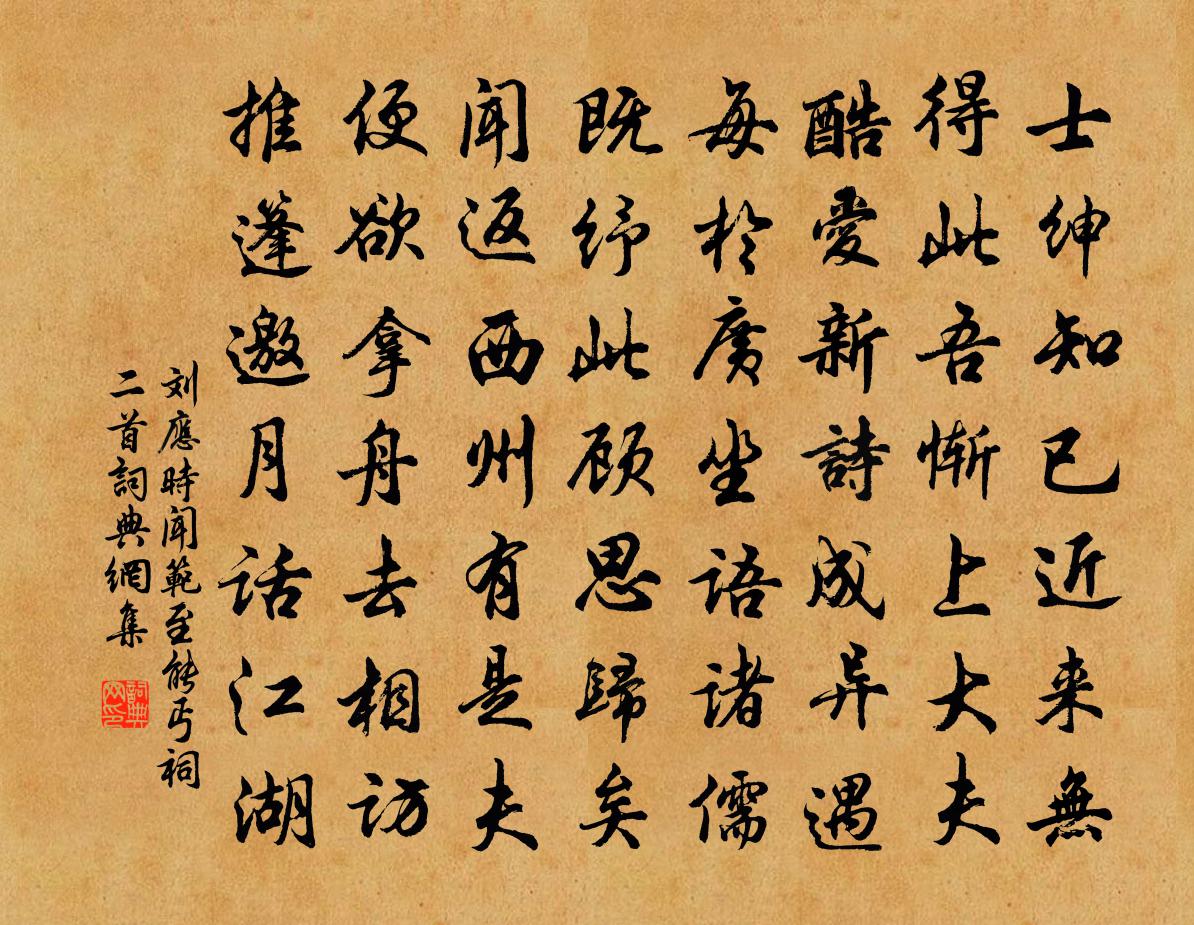 詩詞名句歷史字典書法欣賞書法字典國語詞典說文解字康熙字典古漢語字典標 題 作 者 詩 句 聞范至能丐祠二首作者:劉應時 朝代:宋代聞范至能丐祠二首原文士紳知已近來無,得此吾慚上大夫。酷愛新詩成異遇,每於廣坐語諸儒。既紓此顧思歸矣,聞返西州有是夫。便欲拿舟去相訪,推篷邀月話江湖。詩詞問答問:聞范至能丐祠二首的作者是誰?答:劉應時問:聞范至能丐祠二首寫於哪個朝代?答:宋代劉應時聞范至能丐祠二首書法欣賞聞范至能丐祠二首書法作品詩詞推薦送張真州大經趙蕃〔宋代〕渺渺春江綠水波,客中送客倍愁多。一麾出守輸公去,三徑就荒如我何。暫為淮人符剖竹,即掃漢殿橐持荷。異時沅陵見招賞海棠病不能往輒爾言謝三首趙蕃〔宋代〕二月已盡三月來,計君行日已相催。奈何病著不能往,豈但看花仍把杯。田家歐陽袞〔唐代〕黯黯日將夕,牛羊村外來。岩阿青氣發,籬落杏花開。草木應初感,鶬鶊亦已催。晚間春作好,行樂不須猜。又贈術士薛鏡台二首徐元傑〔宋代〕始吾為養喜徼榮,今恨孤孱感慨增。白髮滿頭何所用,只存憂願數年登。齋中雜題陸游〔宋代〕幽居厭見凡花草,紅紫紛紛不復栽。自斸蒼苔換黃土,南山移得玉芝來。蕃女怨溫庭筠〔唐代〕萬枝香雪開已遍,細雨雙燕。鈿蟬箏,金雀扇,畫梁相見。雁門訊息不歸來,又飛回。蘇文忠蘿漢偈帖贊岳珂〔宋代〕佛法離住相,色相本非實。云何阿羅漢,可以色相求。居士宰官身,只園夙親近。會發宏原深,現此廣長舌。於後冬夜不寐朱淑真〔宋代〕推枕鴛幃不耐寒,起來霜月轉欄乾。悶懷脈脈與誰說,淚滴羅衣不忍看。奉和御製喜降時雪七言四韻詩楊億〔宋代〕一夕香街布玉塵,檀樂勁節露貞筠。免園置酒皇歡洽,柏殿賡歌睿唱新。麥秀原田初望歲,花開苑樹忽驚春。豐穰次韻羅郢州送別項安世〔宋代〕江上相留不肯留,渡江沿岸卻回頭。漢江東去人西去,不見高城始是愁。秋水閣記錢謙益〔清代〕 閣于山與湖之間,山圍如屏,湖繞如帶,山與湖交相襲也。虞山,嶞山也。蜿蜒西屬,至是則如密如防,環拱崖桂花徐大受〔宋代〕重重簾幕護金猊,小樹花開帶麝臍。寒色十分新疹粟,春心一點暗通犀。香延棋畔仙人斧,影射燈前太乙藜。從此送聘儒侄秋試袁說友〔宋代〕八月靈槎萬里秋,乘風得雋要遨頭。吾家連已躋儒級,汝業今宜濟巨舟。掘井莫令嗟九仞,善刀終自見金牛。儒冠二月四日約同寮勸耕萬安院已而不至書於彭氏向滈〔宋代〕滿目風光二月時,小桃無數柳依依。松間野寺臨清淺,花底旗亭倚翠微。人意不隨春意好,此心端與賞心違。目斜鄭甥有大西上劉克莊〔宋代〕歲晚親朋少,何堪遠別離。人誰念原父,甥勿似牢之。宗伯驚文卷,慈親望捷旗。餞行應滿袖,不欠病翁詩。新秋即事王禹偁〔宋代〕百歲浮生一夢中,夢中何事有窮通。姓名舊署黃麻紙,顏狀今成白髮翁。煙暝小窗螢火碧,雨昏幽逕蓼花紅。謫居陪江西裴公游襄州延慶寺皮日休〔唐代〕丹霄路上歇征輪,勝地偷閒一日身。不署前驅驚野鳥,唯將後乘載詩人。岩邊候吏雲遮卻,竹下朝衣露滴新。更向朝中措(和)趙長卿〔宋代〕征帆一樓轉彎斜。驚鷺起汀沙。點點隨風逆上,滿江飛破殘霞。樓前光景,樓心紅粉,蟬翼輕紗。卻憶錢塘江上,禪人並化主寫真求贊釋正覺〔宋代〕清淨本然,如合因緣。涅不緇而磨不磷,仰彌高而鑽彌堅。隨之無後,迎之無前,空空空處亡中邊。而今信手拈來偈頌二百零五首釋正覺〔宋代〕舌頭一臠肉,口唇兩片皮。其間無固必,分外莫猜疑。趙州古佛,雲門聖師,歷歷機頭不掛絲。自然桃李成蹊去,名句推薦雲邊雁斷胡天月,隴上羊歸塞草煙。溫庭筠《蘇武廟》 滿目飛花萬點,回首故人千里,把酒沃愁腸。葛長庚《水調歌頭·江上春山遠》 取次花叢懶回顧,半緣修道半緣君。元稹《離思五首·其四》 卻下水晶簾,玲瓏望秋月。李白《玉階怨》 柳下桃蹊,亂分春色到人家。秦觀《望海潮·洛陽懷古》 偶參伍之驗,以責陳言之實韓非及後人《韓非子·備內》 山遠天高煙水寒,相思楓葉丹。李煜《長相思·一重山》 楚天千里清秋,水隨天去秋無際。辛棄疾《水龍吟·登建康賞心亭》 顧謂戚夫人,彼翁羽翼成。李白《山人勸酒》 憐不可存,憐人者無證其忠。友宜重懲,援友者惟其害。來俊臣《羅織經·問罪卷第十》