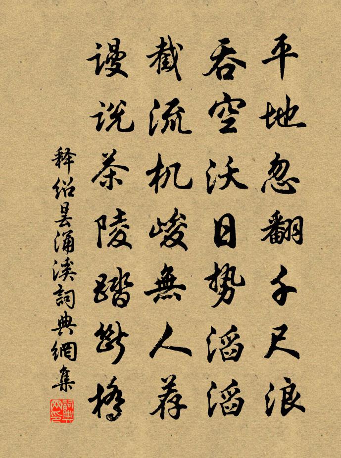 詩詞名句歷史字典書法欣賞書法字典國語詞典說文解字康熙字典古漢語字典標 題 作 者 詩 句 涌溪作者:釋紹曇 朝代:宋代涌溪原文平地忽翻千尺浪,吞空沃日勢滔滔。截流機峻無人薦,謾說茶陵踏斷橋。詩詞問答問:涌溪的作者是誰?答:釋紹曇問:涌溪寫於哪個朝代?答:宋代釋紹曇涌溪書法欣賞涌溪書法作品詩詞推薦為鄉人賦心田衛宗武〔宋代〕方寸良疇人共有,能耕能斂幾人知。坦平非有山河蜀,存養何殊雨露滋。盍剖藩籬忘彼我,卻明畦畛別公私。盡多漁歌/漁父李彭〔宋代〕選佛堂中川藞苴。衲僧卑孔頭垂下。獨秀握來無一把。杖頭掛。從教四海禪徒訝。弔古戰場文李華〔唐代〕浩浩乎,平沙無垠,夐不見人。河水縈帶,群山糾紛。黯兮慘悴,風悲日曛。蓬斷草枯,凜若霜晨。鳥飛不下,獸觀下湖漁者盛烈〔宋代〕漁舠逗曉來相續,短笆亂割春塘淥。須留一半還詩翁,要看早晚鴛鴦浴。次單推韻張九成〔宋代〕庾嶺三江外,相過車馬勤。孤吟清廟瑟,愁思楚江雲。寂寞林逋宅,淒涼伍相墳。何時定歸去,摸索斷碑文。又戲題下岩黃庭堅〔宋代〕往往攜家來托宿,裙襦參錯佛衣巾。未嫌滿院油頭臭,蹋破苔錢最惱人。王夢得捕蝗二首章甫〔宋代〕江頭曉日方曈曈,僕夫喘汗天無風。茅檐汲井洗塵土,野寺煮餅燒油蔥。平生憂國寸心赤,在處喔詩雙鬢蓬。村民蝶戀花佚名〔宋代〕孀婦將歸長安,路出於蒲,亦止茲寺。崔氏婦鄭女也。張出於鄭,緒其親,乃異派之從母。是歲,丁文雅不善於軍風日好楊維楨〔元代〕春來風雨顛,未見風日好。今朝風日好,美人在遠道。美人招未來,相思把瑤草。長鳥舞春風,為我一顛倒。況之席上作韓維〔宋代〕桐葉翻飛荷芰香,好風吹暑作清涼。便驚簾幕生秋氣,徑促金絲盡羽觴。浮世已諳身是幻,高歌莫笑老仍狂。知君張園海棠陸游〔宋代〕洛陽春信久不通,姚魏開落胡塵中,揚州千葉昔曾見,已嘆造化無餘功。西來始見海棠盛,成都第一推燕宮。池台和子野郊居見寄仇遠〔宋代〕論心握手到忘形,性癖耽詩各瘦生。美酒三升差可戀,良田二頃不如耕。溪晴正熟眠鷗夢,門靜那驚吠犬聲。泉石四時詩春徐瑾〔宋代〕風吹細浪低田麥,雨過初分淺水秧。紅樹半開桃臉嫩,綠波深映柳絲長。紹興以後祀五方帝六十首佚名〔宋代〕[黃鐘為角一奏]神兮焉居,神在震方。仁以為宅,秉天之陽。神之來矣,道修以陰。望神未來,使我心苦。次和楊中齋讀閬風菊譜因覓本植齋前韻舒岳祥〔宋代〕為愛寒花晚節香,故栽松逕與茅堂。壽思園綺眠商嶺,清想夷齊遁首陽。俗眼只貧金帶紫,丹心惟喜御袍黃。先生游棲霞四首周文璞〔宋代〕優尼制銅覺,欲住女主齡。主稱金輪王,錄在華嚴經。而捨覺富貴,愛慕塗椒馨。月黯回心院,妖魂啼窈冥。僧人菩薩蠻魏夫人〔宋代〕東風已綠瀛洲草。畫樓簾卷清霜曉。清絕比湖梅。花開未滿枝。長天音信斷。又見南歸雁。何處是離愁。長安明月高宗建炎初祀昊天上帝佚名〔宋代〕靈承上帝,精意感通。聲午旁達,粢盛既豐。登降有備,祀有樂終。神之聽之,福祿來崇。偈頌十首釋如淨〔宋代〕秋風清,秋月明,大地山河露眼睛。瑞岩點瞎重相見,棒喝交馳驗衲僧。贊歷代天師第十八代諱士元字仲良白玉蟾〔宋代〕神水華池養白鴉,玉爐進火結丹砂。仙家妙用無人識,頃刻能開桃李花。名句推薦簫鼓追隨春社近,衣冠簡樸古風存。陸游《游山西村》 覺來眄庭前,一鳥花間鳴。李白《春日醉起言志》 烹羊宰牛且為樂,會須一飲三百杯。李白《將進酒》 寒禽與衰草,處處伴愁顏。司空曙《賊平後送人北歸》 大道之行也,天下為公。戴聖《禮記·禮運》 治民者,禁奸於未萌。韓非及後人《韓非子·心度》 佳期悵何許,淚下如流霰謝朓《晚登三山還望京邑》 義典則弘,文約為美。劉勰《文心雕龍·銘箴》 白頭空負雪邊春,著意問春春不語。劉鎮《玉樓春·東山探梅》 山桃紅花滿上頭,蜀江春水拍山流。劉禹錫《竹枝詞·山桃紅花滿上頭》