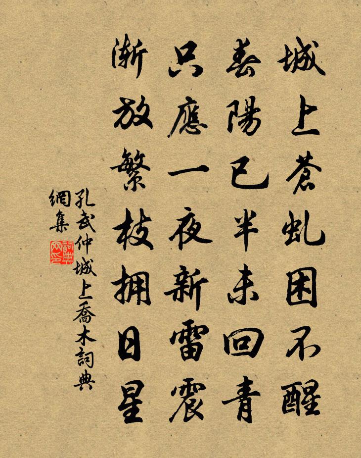詩詞名句歷史字典書法欣賞書法字典國語詞典說文解字康熙字典古漢語字典標 題 作 者 詩 句 城上喬木作者:孔武仲 朝代:宋代城上喬木原文城上蒼虬困不醒,春陽已半未回青。只應一夜新雷震,漸放繁枝擁日星。詩詞問答問:城上喬木的作者是誰?答:孔武仲問:城上喬木寫於哪個朝代?答:宋代孔武仲城上喬木書法欣賞城上喬木書法作品詩詞推薦晚春偶題呈正甫先生釋斯植〔宋代〕老來春去怯憑欄,今古興亡一笑間。滿徑落紅人不到,杜鵑啼雨入空山。信手閱清溪詩一首韻即事五邁〔宋代〕久雨妨好春,朝暮地休息。出門欲有行,苔滑泥余尺。四望人煙稀,千山鳥聲寂。饕寒不肯歸,青帝覺無力。況有薌岩山居孟夏二十絕舒岳祥〔宋代〕無色庭前石,無聲石上琴。此時寂寞意,千載有知音。程言聚散有感次前韻陳造〔宋代〕群芳圍坐引杯長,滿目深紅間淺黃。寄語東君好憐客,水西花外慢頹陽。許村傅夢得〔宋代〕信步水之濱,閒中著此身,蕭條僧寺近,來往客舟頻。村酒難成醉,山花亦有春。人生要行樂,何苦戀京塵。方叔再用前韻約同賦陳文蔚〔宋代〕坐談冰雪滿懷秋,珍重余君學素優。每有詩情並酒興,為平月恨與花愁。支頤萬事從渠變,拂榻今宵為我留。何處感皇恩阮閱〔宋代〕芝檢下中天,春寒猶淺。餘閏銀蟾許重看。滿城燈火,又遍高樓深院。寶鞍催繡轂,香風軟。憔悴慢翁,蕭條古縣和叔惠薺韓維〔宋代〕君居壓城根,厥產地宜薺。呼兒乘晝暄,培壤露寒翠。擷之登盤蔬,藹蔚見春意。方其下筯時,絕甘遽吾遺。物雖舅母太夫人方氏輓詞三首范成大〔宋代〕門戶傳清白,階庭侍紫青。百年歌燕喜,五福用康寧。訣籙嘗觀妙,旒旌謾勒銘。神遊定超絕,何必訊泉扃。鴛鴦語(同前)賀鑄〔宋代〕京江抵、海邊吳楚。鐵瓮城、形勝無今古。北固陵高,西津橫渡。幾人摧手分襟處。淒涼淥水橋南路。奈玉壺、難出門李復〔宋代〕靜僻懶慢久,煩喧厭入耳。過客吐新談,意況殊不美。火炎幾車薪,難救一杯水。但坐問鄰醅,餘事莫掛齒。程言聚散有感次前韻陳造〔宋代〕牛力輕萬鈞,性順異諸畜。有足不解踶,有角不皆觸。課日引耒耜,為人給谷粟。私家憂闕食,公家要餘蓄。公私江雨王安石〔宋代〕冥冥江雨濕黃昏,天入滄洲漫不分。北澗欲通南澗水,南山正繞北山雲。賀新郎·老去相如倦劉過〔宋代〕老去相如倦。向文君說似,而今怎生消遣。衣袂京塵曾染處,空有香紅尚軟。料彼此、魂銷腸斷。一枕新涼眠客舍宮詞二首孔武仲〔宋代〕十頃西池碧近天,春深調馬教龍船。至尊勤政歡嬉少,企望鑾輿又七年。數詩歐陽修〔宋代〕一室曾何埽,居閒俗慮平。二毛經節變,青監不須驚。三復磨圭戒,深防悔吝生。四愁寧敢擬,高詠且陶情。五鼎玉樓春杜安世〔宋代〕晴景融融春色淺。落盡梅花千萬片。小池冰解水紋生,訊息未聞樑上燕。樓倚輕寒風力軟。目斷孤雲天自遠。又還塞上曲張祜〔唐代〕邊風捲地時,日暮帳初移。磧迥三通角,山寒一點旗。連收榻索馬,引滿射鵰兒。莫道功勳細,將軍昔戍師。和陶歸園田居六首蘇軾〔宋代〕老人八十餘,不識城市娛。造物偶遺漏,同儕盡丘墟。平生不渡江,水北有幽居。手插荔支子,合抱三百株。莫言安藏主釋居簡〔宋代〕盡都佛性自瞞頇,終日如愚已自謾。不是較渠三十里,平生穿鑿不相干。名句推薦其服不同,其行猶一也。墨子《墨子·48章 公孟》 香汗薄衫涼,涼衫薄汗香。蘇軾《菩薩蠻·回文夏閨怨》 勞苦之事則爭先,饒樂之事則能讓。荀子《荀子·修身》 不覺碧山暮,秋雲暗幾重。李白《聽蜀僧濬彈琴 / 聽蜀僧浚彈琴》 別離還有經年客,悵望不如河鼓星。徐凝《七夕》 向河梁、回頭萬里,故人長絕。辛棄疾《賀新郎·別茂嘉十二弟》 湖南為客動經春,燕子銜泥兩度新。杜甫《燕子來舟中作》 梅子留酸軟齒牙,芭蕉分綠與窗紗。楊萬里《閒居初夏午睡起》 生而富者驕,生而貴者傲。范曄《後漢書·列傳·崔駰列傳》 深居俯夾城,春去夏猶清。李商隱《晚晴》