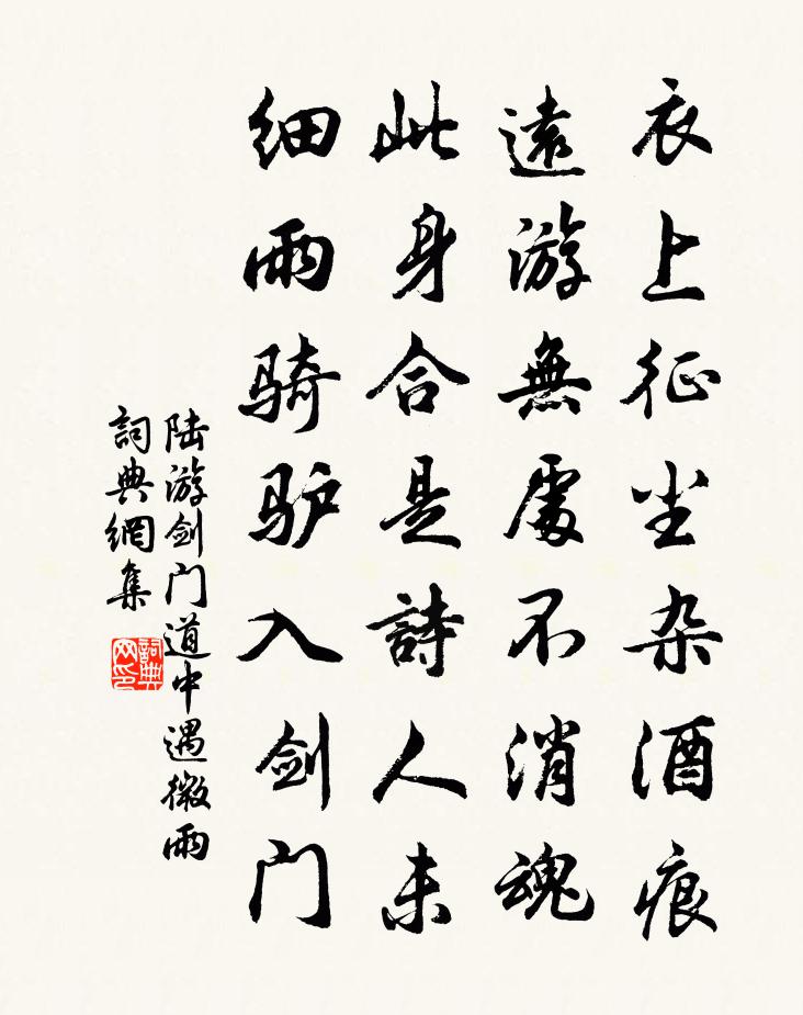 衣上征塵雜酒痕,遠遊無處不消魂。此身合是詩人未?細雨騎驢入劍門。