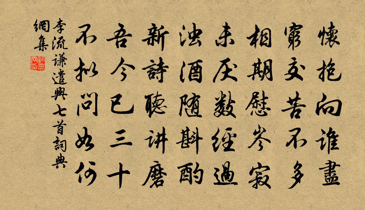 詩詞名句歷史字典書法欣賞書法字典國語詞典說文解字康熙字典古漢語字典標 題 作 者 詩 句 遣興七首作者:李流謙 朝代:宋代遣興七首原文懷抱向誰盡,窮交苦不多。相期慰岑寂,未厭數經過。濁酒隨斟酌,新詩聽講磨。吾今已三十,不擬問如何。詩詞問答問:遣興七首的作者是誰?答:李流謙問:遣興七首寫於哪個朝代?答:宋代李流謙遣興七首書法欣賞遣興七首書法作品詩詞推薦追憶余泊舟黃庭堅〔宋代〕老大無機如漢陰,白鳥不去相知深。往事刻舟求墜劍,懷人揮淚著亡簪。城南鼓罷吹畫筒,城北歸帆落晚風。人煙石上偈曹雪芹〔清代〕無才可去補蒼天,枉入紅塵若許年。此系身前身後事,倩誰記去作奇傳?春雪施樞〔宋代〕臘里霏微未許多,春來舞片卻交叉。混成天地皆同色,點染園林盡著花。岸跡雲凝迷去鷺,屋頭煙暖見飢鴉。東風鑒堂初夏把酒鄧深〔宋代〕新筍過林竹有筠,老蠶登箔繭成身。日穿雲出潛驅霧,風卷花飛猛送春。乳燕簾櫳中晝後,綠陰池館一番新。欲酬次韻陳茲明五絕句史彌寧〔宋代〕幾年枉掛右丞圖,未辨家山瓜芋區。騎馬紅塵歸計晚,逢人囁囁話江湖。南鄉子呂勝己〔宋代〕斗笠棹邊舟。碧水灣頭放自流。盡日垂絲魚不上,優遊。更覺心松奈得愁。行客語滄洲。笑道漁翁太拙休。萬事要題瀑布畫劉宰〔宋代〕洩雲澒洞遮山腹,古木差牙繚山足。舉頭百丈演寒泉,知有高峰插天綠。相見歡馮延巳〔唐代〕曉窗夢到昭華,阿瓊家。欹枕殘妝一朵,臥枝花。情極處,卻無語,玉釵斜。翠閣銀屏回首,已天涯。元夕戲題何應龍〔宋代〕從教香月轉亭西,貪看燈毬忘卻歸。挨得玉梅零落盡,蛾兒猶傍鬢邊飛。感遇二十五首張耒〔宋代〕眾聖演世教,金仙獨圓成。徒緣異形范,乃復遭譏評。幽居覽物化,且復究吾形。捐書守寂寞,萬化歸無生。寒食呈陳崇清王邁〔宋代〕一日五日山寒節,八十六翁行地仙。曲水飛觴酬勝景,漢宮傳燭憶青煙。三春幸自添余,雙筆今題幾篇。挽仰興懷已亥雜詩 100龔自珍〔清代〕坐我三熏三沐之,懸崖撒手別卿時。不留後約將人誤,笑指河陽鏡里絲。玉蝴蝶李之儀〔宋代〕坐久燈花開盡,暗驚風葉,初報霜寒。冉冉年華催暮,顏色非丹。攪迴腸、蛩吟似織,留恨意、月彩如攤。無歡。挽應偉節尊人吳芾〔宋代〕歸來閭里問高年,此日惟公五福全。三世儒科身及見,四經鄉飲眾推先。安時不恨青衫晚,適意還欣彩服鮮。終始寄知來弟李石〔宋代〕霏霏寒日隕清霜,勃勃陰風出土囊。尺木未階龍久蟄,銜蘆不穩雁斜行。仕塗田舍成三已,世態江湖合兩忘。無術舟中清明趙蕃〔宋代〕嚴婺江山天下奇,經行凡作幾篇詩。何當便畢尚平趣,占斷清波垂釣絲。失調名佚名〔宋代〕薰風時送芰荷香。西江月蕭廷之〔宋代〕金液還丹大道,古人萬劫一傳。傾心剖腹露諸篇。接引直超道岸。莫怪天機泄盡,此玄玄外無玄。留傳後代與名賢寒碧席上薪隱分韻得初字胡仲弓〔宋代〕心遠塵難到,高堂便讀書。鳳歸巢已覆,鶴雲柵常虛。野水平荷葉,清風繞竹廬。靜邊生萬感,況復晚涼初。四十自壽五邁〔宋代〕前四十年非,追之已莫返。後四十年是,圖之良未晚。水涸自見涘本。善者契吾機,今復猶不遠。養生先節慾,葆名句推薦生怕見花開花落,朝來塞雁先還。辛棄疾《漢宮春·立春日》 巧笑倩兮,美目盼兮,素以為絢兮。孔子弟子《論語·八佾篇》 恭敬不如從命。曹雪芹《紅樓夢·第六十二回》 聖人終不為大,故能成其大。老子《老子·德經·第六十三章》 志意修則驕富貴,道義重則輕王公。荀子《荀子·修身》 山遠近,路橫斜,青旗沽酒有人家。辛棄疾《鷓鴣天·陌上柔桑破嫩芽》 近重陽、偏多風雨,絕憐此日暄明。姚雲文《紫萸香慢·近重陽》 岸邊兩兩三三,浣沙游女。柳永《夜半樂·凍雲黯淡天氣》 牛靿咤咤,田確確,旱塊敲牛蹄趵趵。元稹《田家詞 / 田家行》 吾生也有涯,而知也無涯。莊子《莊子·內篇·養生主原文》