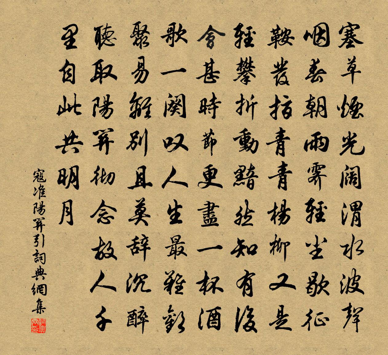 塞草煙光闊,渭水波聲咽。春朝雨霽輕塵歇。征鞍發。指青青楊柳,又是輕攀折。動黯然,知有後會甚時節。更盡一杯酒,歌一闋。嘆人生,最難歡聚易離別。且莫辭沉醉,聽取陽關徹。念故人,千里自此共明月。
