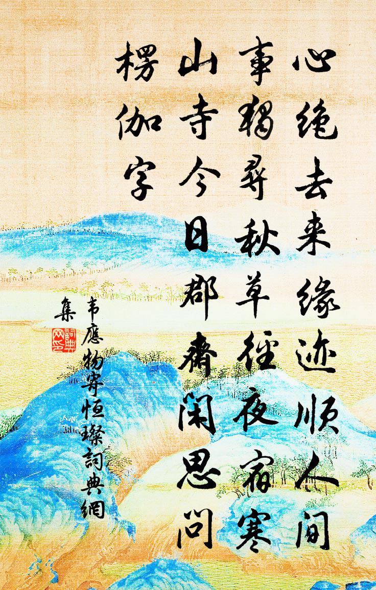 心絕去來緣,跡順人間事。獨尋秋草徑,夜宿寒山寺。