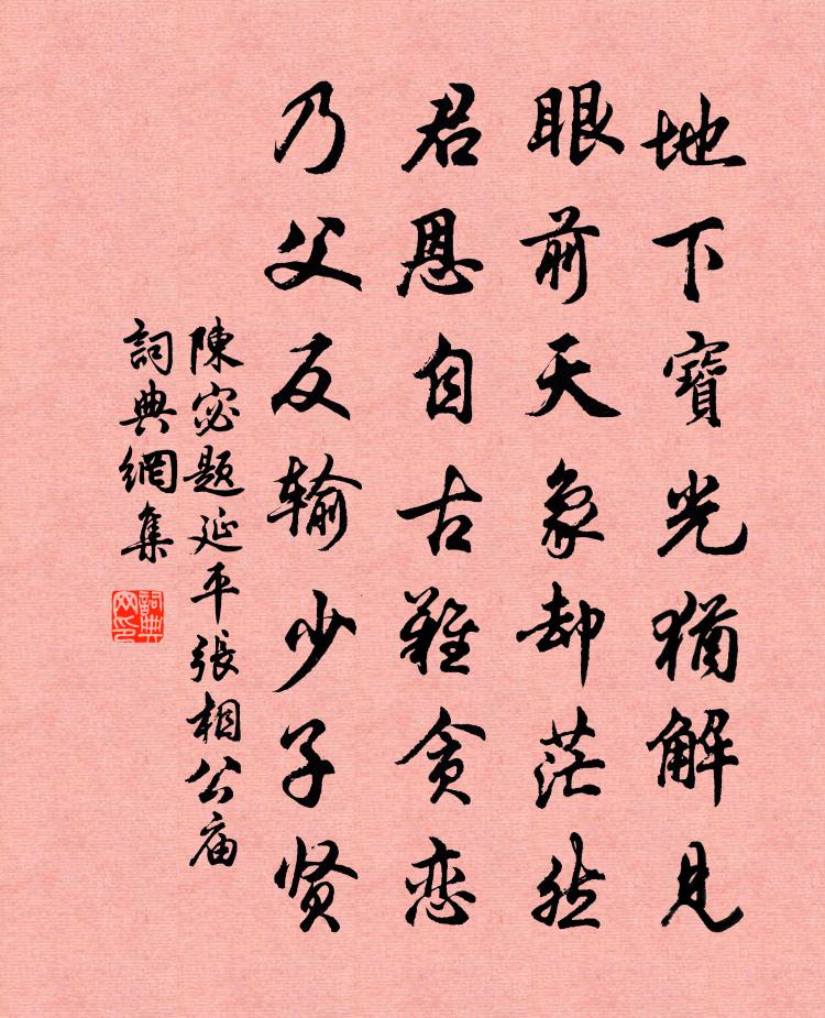 詩詞名句歷史字典書法欣賞書法字典國語詞典說文解字康熙字典古漢語字典標 題 作 者 詩 句 題延平張相公廟作者:陳宓 朝代:宋代題延平張相公廟原文地下寶光猶解見,眼前天象卻茫然。君恩自古難貪戀,乃父反輸少子賢。詩詞問答問:題延平張相公廟的作者是誰?答:陳宓問:題延平張相公廟寫於哪個朝代?答:宋代陳宓題延平張相公廟書法欣賞題延平張相公廟書法作品詩詞推薦和沈秀才潘良貴〔宋代〕弱齡慮事心常破,壯歲投閒鬢已華。但得安貧如北阮,何妨受侮似東家。以椰子香爐花瓶為大人壽項安世〔宋代〕石湖居士虞衡志,椰子之身本棕類。葉間各結三四子,大者能容五升器。初如青纈美少年,漸久漸黃堅且緻。有穰初至洞庭,懷灞陵別業劉長卿〔唐代〕長安邈千里,日夕懷雙闕。已是洞庭人,猶看灞陵月。誰堪去鄉意,親戚想天末。昨夜夢中歸,煙波覺來闊。江皋初入四川境喜晴曾國藩〔清代〕萬里關山睡夢中,今朝始洗眼朦朧。雲頭齊擁劍門上,峰勢欲隨江水東。楚客初來詢物俗,蜀人從古足英雄。臥龍題番陽徐氏雙頭牡丹圖戴表元〔宋代〕天公幻化不經意,雙萼忽然枝葉同。一似人間好兄弟,朱鞍錦轡踏春風。和子野郊居見寄仇遠〔宋代〕因子洮湖歸釣魚,西湖我亦念吾廬。途窮但覺知心少,性直由來料事疏。愛把琴彈招隱操,忍拈筆寫絕交書。人間頌一百則釋重顯〔宋代〕咄這維摩老,悲生空懊惱。臥疾毗耶離,全身太枯槁。七佛祖師來,一室且頻掃。請問不二門,當時便靠倒。不靠旅思陸游〔宋代〕支遁山前看月門,葛洪井上聽松聲。廢亭草滿青騾健,野店燈殘寶劍鳴。萬事竟當歸定論,寸心那得媿平生。悠然齊天樂 送童瓮天兵後歸杭詹玉〔宋代〕相逢喚醒京華夢,吳塵暗斑吟發。倚擔評花,認旗沽酒,歷歷行歌奇蹟。吹香弄碧。又坡柳風情,逋梅月色。畫鼓小雪戴叔倫〔唐代〕花雪隨風不厭看,更多還肯失林巒。愁人正在書窗下,一片飛來一片寒。題葉英州清白亭曾豐〔宋代〕一元之氣天得清,推為覆幬萬物生。四時之氣秋得白,推為揪斂萬物成。清白為德蓋如此,我公可獨取於水。水生聞鶴徐集孫〔宋代〕千年華表竟何榮,曾結孤山夙世盟。午夜露零和月冷,一聲風靜仰天鳴。既歸蕙帳情何怨,不上揚州韻更清。未必山居避難六首陳著〔宋代〕患難合扶攜,臨危路各迷。傳聞妻奔北,邂逅子隨西。心悼驚雷燕,身寒立雨雞。明朝問家事,空壁雪風姜。再刊大慧語釋心月〔宋代〕妙喜胸中流出底,重華天子手親書。大千俱壞此不壞,別板刊行亦聽渠。夜坐二首楊公遠〔宋代〕相伴青燈坐矮窗,老來計拙負年光。畫灰有句羞才短,就枕無眠畏夜長。世路難躋緣峻嶮,人情易見為炎涼。知心晚春呈全真趙蕃〔宋代〕九十日春餘十日,庭陰已作夏扶疏。桃花浪暖且振{左揖右戈},燕子日長空廢書。故人行行重作別,倦雲悠悠思寄道士張明真田況〔宋代〕澹靜姿儀簡曠縱,結庵深對大茅峰。坐忘世故愁應少,道斷人情語亦慷。萬里信音憑鶴到,一廚煙火倩猿供。歲時雨中次韻兩絕洪咨夔〔宋代〕積多雲鶴岩前雨,種遍長松墓上田。豐歉相乘天有數,今年管取半三錢。和趙南塘離支五絕劉克莊〔宋代〕卻貢無因送上天,漫山如錦但堪憐。羅浮所產真奴隸,只為曾逢玉局仙。和子進六言二首范祖禹〔宋代〕夜靜碧天如水,山空明月隨人。此興庾公非淺,遠遊王子何頻。名句推薦馬蕭蕭,人去去,隴雲愁。孫光憲《酒泉子·空磧無邊》 典盡客衣三尺雪,煉精詩句一頭霜。王建《維揚冬末寄幕中二從事》 害人之心不可有,防人之心不可無,此戒疏於慮者。洪應明《菜根譚·概論》 世事一場大夢,人生幾度秋涼?蘇軾《西江月·世事一場大夢》 想見讀書頭已白,隔溪猿哭瘴溪藤。黃庭堅《寄黃幾復》 閒雲潭影日悠悠,物換星移幾度秋。王勃《滕王閣序》 積雪覆平皋,飢鷹捉寒兔。孟浩然《南歸阻雪》 貨盡而後知不足,是不知量也,事已,而後知貨之有餘,是不知節也管仲《管子·乘馬》 一月可曾閒幾日,百年難得閏中秋。慧霖《閏中秋玩月》 竹里繰絲挑網車,青蟬獨噪日光斜。李賀《南園十三首》