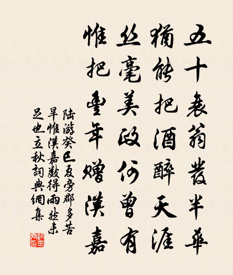 五十衰翁發半華,猶能把酒醉天涯。絲毫美政何曾有,惟把豐年贈漢嘉。