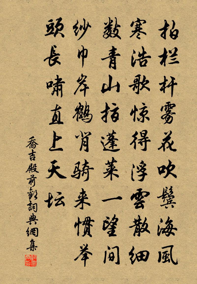 拍欄桿,霧花吹鬢海風寒,浩歌驚得浮雲散。細數青山,指蓬萊一望間。