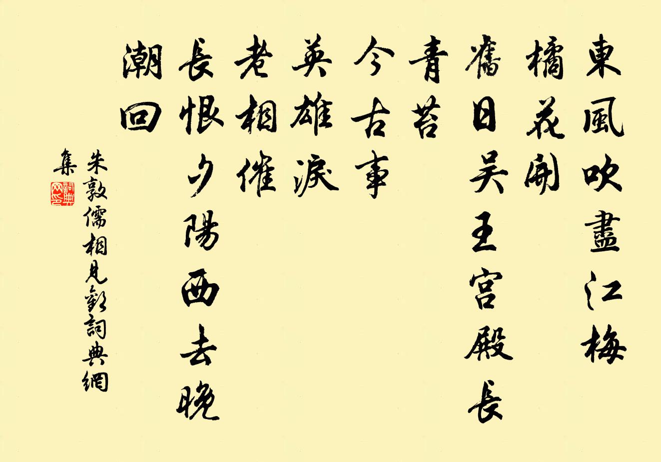 - 草色煙光殘照里,無言誰會憑闌意。柳永《蝶戀花·佇倚危樓風細細》