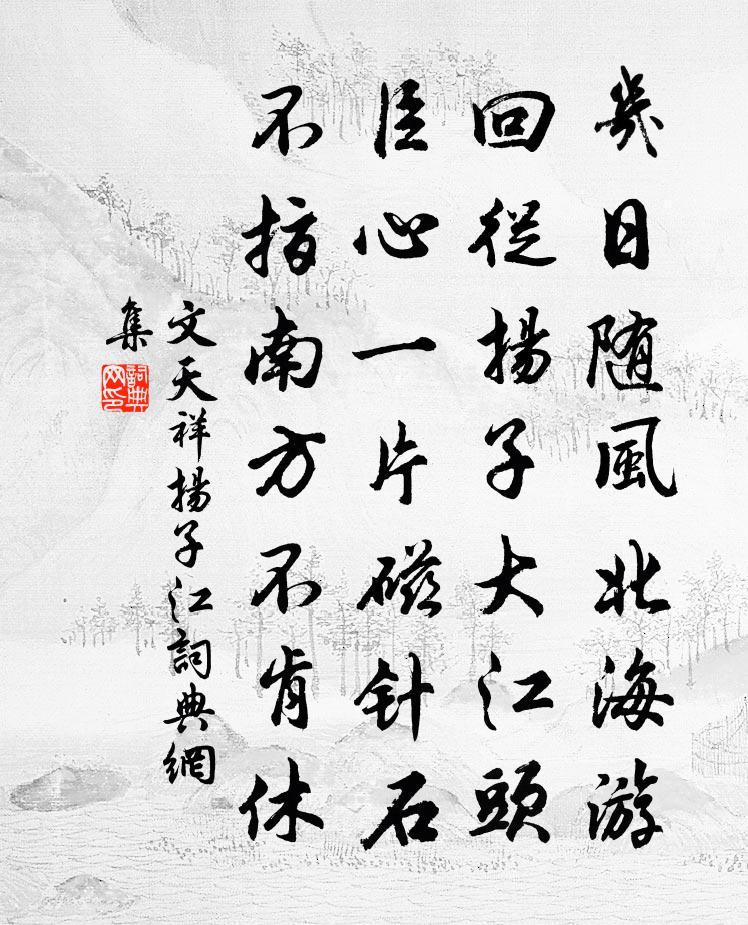 幾日隨風北海游,回從揚子大江頭。臣心一片磁針石,不指南方不肯休。