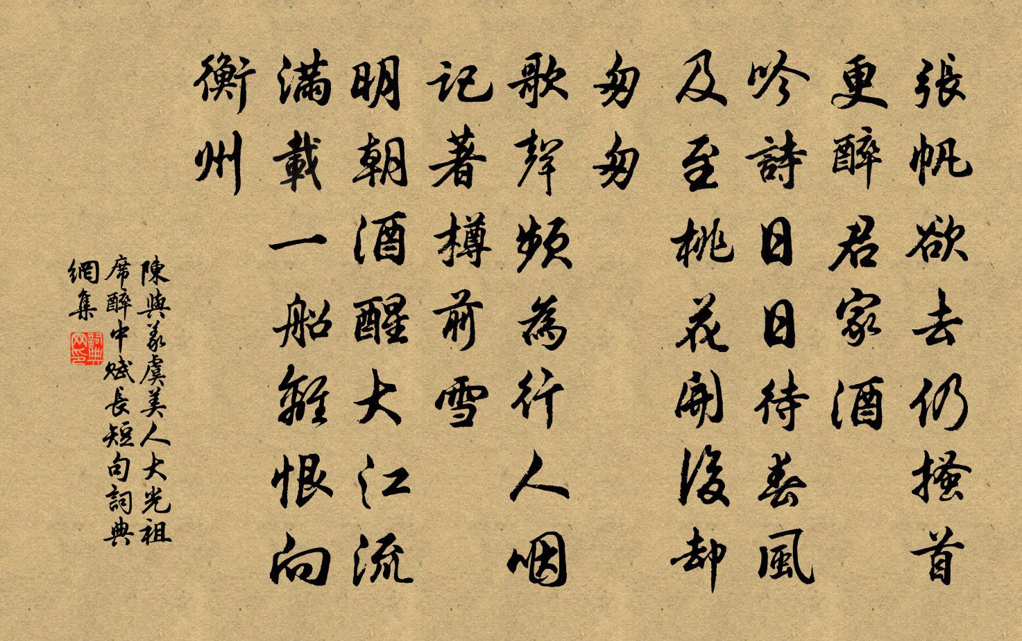 詞的下片仍寫別宴。寫過了酒,緊接著從歌上落筆。古人送別時唱“驪歌 ”,如蘇軾《江城子·孤山竹閣送述古》所寫“且盡一樽 ,收淚聽《陽關》”宋代州郡長官設宴,有官妓陪侍 ,歌舞酒聲遠遠飄去,可見宴會的盛大,此“歌聲”就是歌妓所唱 。“歌聲頻為行人咽 ”,臨別之際,歌妓也為之動情,幾度嗚咽不能成聲。因此感動了詞人:“記著樽前雪”。“雪”為“雪兒”省略,而“雪兒”又是指代歌妓的。雪兒為隋末李密歌姬,善歌舞 ,能夠根據音律填詞而歌,稱“雪兒歌”,後來泛指歌妓。詞人因歌而記著歌者,即記著此別,記著餞別的主人,一語而三得。酒醉人,而歌聲也足以醉人。“明朝酒醒大江流”,此筆迴旋一轉,想到明朝酒醒之後,此身已隨舟漂到湘江。此行何去 ?相距一百二十里的衡州(今衡陽)是第一站。