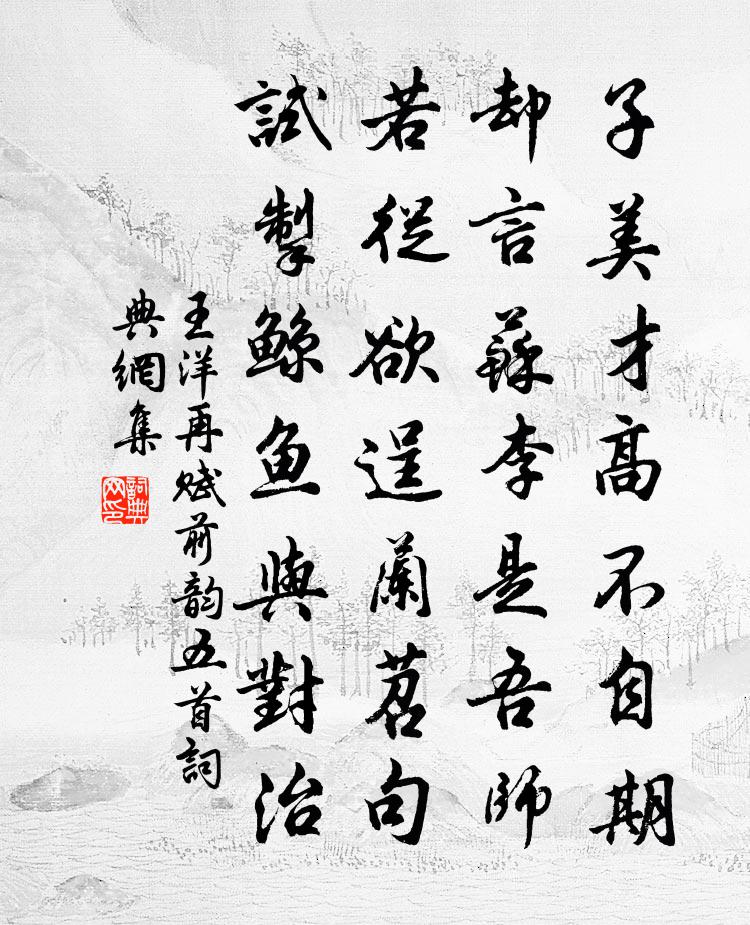 詩詞名句歷史字典書法欣賞書法字典國語詞典說文解字康熙字典古漢語字典標 題 作 者 詩 句 再賦前韻五首作者:王洋 朝代:宋代再賦前韻五首原文子美才高不自期,卻言蘇李是吾師,若從欲逞蘭苕句,試掣鯨魚與對治。詩詞問答問:再賦前韻五首的作者是誰?答:王洋問:再賦前韻五首寫於哪個朝代?答:宋代王洋再賦前韻五首書法欣賞再賦前韻五首書法作品詩詞推薦金陵雜興二百首蘇泂〔宋代〕憶殺仙人白仲都,江邊遺蹟尚樓居。驂鸞翳鳳如容我,拜作先師定肯無。八月十日二首陳師道〔宋代〕人生七十今強半,老去光陰已後身。更欲置身須世外,世間元自不關人。九江琵琶宋敏求〔宋代〕夜泊尋陽宿酒樓,琵琶亭畔獲花秋。雲沈鳥沒事已往,月白風清江自流。和丁端叔竹梅二詩韻陳傅良〔宋代〕管領春風別有天,不論水際與山巔。祝融玉立湖湘凍,獨付寒梢笑粲然。寄范評事李頻〔唐代〕行坐不相遺,轅門載筆時。雅知難更遇,舊分合長思。夢即重尋熟,書常轉達遲。山齋終擬到,何日遂心期。覽鏡楊公遠〔宋代〕覽鏡顏非昔,相將老態催。青春彈指去,白雪上頭來。興逸三杯酒,詩清百詠梅。襟期除此外,萬事付悠哉。答鄱陽客藥名詩張籍〔唐代〕江皋歲暮相逢地,黃葉霜前半夏枝。子夜吟詩向松桂,心中萬事喜君知。蝶李商隱〔唐代〕孤蝶小徘徊,翩翾粉翅開。並應傷皎潔,頻近雪中來。答韓持國芙蓉堂二首王安石〔宋代〕乞得膠膠擾擾身,五湖煙水替風塵。只將鳧雁同為侶,不與龜魚作主人。贈徐靈淵葉適〔宋代〕歐虞兼褚薛,事遠跡為塵。今日觀來翰,如親見古人。盡歸嚴號令,富有活精神。碑板荒唐久,遄看走四鄰。秋雨漸涼有懷興元陸游〔宋代〕八月山中夜漸長,雨聲燈影共淒涼。遙知南鄭風霜早,已有寒熊犯獵場。重修朝宗門樓集句呈王宰余壹〔宋代〕茲城實佳麗,上與浮雲齊。加望川之陰,津途去不迷。一旦起樓高百尺,城高跨樓滿金碧。朱門峨臨九衢,一片彩兩同心朱彝尊〔清代〕認丹鞋響,下畫樓遲。犀梳掠倩人猶未,螺黛淺,俟我乎而。看不足,一日千回,眼轉迷離。比肩縱得相隨,夢雨樓下柳(天香)賀鑄〔宋代〕滿馬京□,裝懷春思,翩然笑度江南。白鷺芳洲,青蟾雕艦,勝游三月初三。舞裙濺水,浴蘭佩、綠梁纖纖。歸路憶秦娥汪元量〔宋代〕笑盈盈。曉妝掃出長眉青。長眉青。雙開雉扇,六曲鴛屏。少年心在尚多情。酒邊銀甲彈長箏。彈長箏。碧桃花下發隆興後寄宋茂叔趙然道昆仲並屬達後篇於待趙蕃〔宋代〕晁君父之舅,徐子我之友。晁詩紫微來,徐學新安後。徐固困簞瓢,晁復厭奔走。當今諸侯賢,孰愈豫章右。經行答李道士陳杰〔宋代〕老子廢吟恐妨道,道人學詩如學仟。探藏不惜藏諸密,試換黃庭內景篇。薛道祖白石潭詩帖贊岳珂〔宋代〕畫以有聲著,詩以無聲名。有聲者道祖之所已知,無聲者道祖之所欲為而未能者也。眾樂亭二首吳中復〔宋代〕煙波空闊岸低回,草綠花紅處處堆。一片湖光分島漵,四邊山色入樓台。從來未有吾民樂,此地欣逢刺史來。目斷江城子無何有翁〔宋代〕小年底死路槐忙。嘆蟬聲,早斜陽。今夕何年,白骨照沙場。天上人間都是夢,石中火,鑊中湯。人如今且免秀才名句推薦壯歲從戎,曾是氣吞殘虜。陸游《謝池春·壯歲從戎》 同是天涯淪落人,相逢何必曾相識!白居易《琵琶行 / 琵琶引》 武皇去金閣,英威長寂寞江淹《銅爵妓》 是故天地不昭昭,大水不潦潦,大火不燎燎,王德不堯堯者,乃千人之長也。墨子《墨子·01章 親士》 不鏡於水,而鏡於人,則吉凶可鑑也王永彬《圍爐夜話·第五二則》 漢家天馬出蒲梢,苜蓿榴花遍近郊。李商隱《茂陵》 客路相逢難,為樂常不足。蘇軾《送頓起》 淡泊以明志,寧靜而致遠。羅貫中《三國演義·第三十七回》 畫圖恰似歸家夢,千里河山寸許長。辛棄疾《鷓鴣天·送元濟之歸豫章》 閨中少婦不知愁,春日凝妝上翠樓。王昌齡《閨怨》
