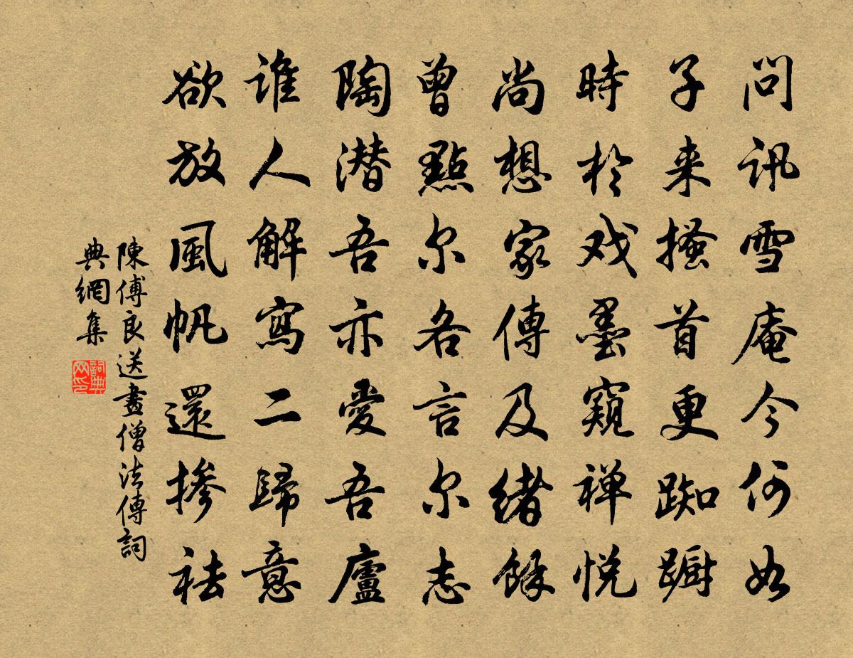 詩詞名句歷史字典書法欣賞書法字典國語詞典說文解字康熙字典古漢語字典標 題 作 者 詩 句 送畫僧法傳作者:陳傅良 朝代:宋代送畫僧法傳原文問訊雪庵今何如,子來搔首更踟躕。時於戲墨窺禪悅,尚想家傳及緒餘。曾點爾各言爾志,陶潛吾亦愛吾廬。誰人解寫二歸意,欲放風帆還摻祛。詩詞問答問:送畫僧法傳的作者是誰?答:陳傅良問:送畫僧法傳寫於哪個朝代?答:宋代陳傅良送畫僧法傳書法欣賞送畫僧法傳書法作品詩詞推薦白鷺詠李端〔唐代〕迥起來應近,高飛去自遙。映林同落雪,拂水狀翻潮。猶有幽人興,相逢到碧霄。無疾吟邵雍〔宋代〕無疾之安,無災之福。舉天下人,不為之足。靈溪老松歌盧士衡〔唐代〕靈溪古觀壇西角,千尺鱗皴棟樑朴。橫出一枝戛樓閣,直上一枝掃寥廓。白石蒼苔擁根腳,月明風撼寒光落。有時漢宮詞崔道融〔唐代〕獨詔胡衣出,天花落殿堂。他人不敢妒,垂淚向君王。次韻洪帥喜雨牟巘五〔宋代〕感孕妙處捷風雷,造化於人豈遠哉。見說商霖一尺字,向前車馬待公來。挽鄢晉步主簿文天祥〔宋代〕此君何坦坦,回首杏園游。魂魄湘潭去,聲名彭澤休。百年中道短,千里故鄉愁。六子三方幼,遺言可淚流。和丹岩以青溪至有作衛宗武〔宋代〕故人未到欠詩催,才到九山云為開。野鶴正思尋老伴,盟鷗亦競喜朋來。免教北隴慚空帳,消得南山詠有台。梅信歸雲堂汪應辰〔宋代〕浮雲本無心,人心逐雲去。更作歸雲堂,雲歸竟何處。鳴鳩歐陽修〔宋代〕天將陰,鳴鳩逐婦鳴中林,鳩婦怒啼無好音。天雨止,鳩呼婦歸鳴且喜,婦不亟歸呼不已。逐之其去恨不早,呼不瞿唐峽陽枋〔宋代〕壁絕書昏明,猿 * 佛音。不關天宇窄,自是峽流深。既曉遲朝日,未西還夕陽。扁中舟涉險,憑取有孚心。游鍾山蘇轍〔宋代〕江南四月如三伏,北望鍾山萬松碧。杖藜試上寶公龕,眾壑秋聲起相襲。青峰迴抱石城小,白練前橫大江直。石梯別外甥楊克一二首張耒〔宋代〕澤國授衣早,今辰絺紵單。孤城遠目斷,秋水去帆寒。相見不再少,此生何日閒。殷勤換美酒,要對蟹螫盤。送李廓侍御赴劍南顧非熊〔唐代〕鳥道見狼煙,元戎正急賢。圖書借朋友,吟詠入戈鋋。山色城池近,江聲鼓角連。不應夸戰勝,知在檄蠻篇。句釋延壽〔宋代〕步步寒華結,言言徹底冰。風雪數日不見叔度晚約公明共詣之司馬光〔宋代〕南榮卮酒罷,君返道東居。坐作三朝別,杳疑千里余。閒門嗟雀綱,深濘怯柴車。向晚開簾喜,同雲稍覺疏。次韻宇文使君山行陸游〔宋代〕城中鐵望西山,鐵爽氣固可鐵致。不如山中行,衣屨染濃翠。使君資格逸,鐵馬奏橫吹。平郊何曠盪,修竹亦清閟朝中措(上錢知郡、符主管、朱知錄三首)趙長卿〔宋代〕南樓風物一番新。春暮畀斯民。豈但仁人愷弟,更兼政事如神。人生最貴,榮登五馬,千里蒙恩。祗恐促歸廊廟,夜行玉笥樵風之間宿龍瑞陸游〔宋代〕野店溪橋供晚餉,吟邊醉里弄春風。馬行缺月黃昏後,鐘下亂山空翠中。名宦不辭成寂寂,歲時惟恨去匆匆。頗聞將之匡岳過尋陽齊己〔唐代〕帆過尋陽晚霽開,西風北雁似相催。大都浪後青堆沒,五老雲中翠疊來。此路便堪歸水石,何門更合向塵埃。遠公天威行顧雲〔唐代〕蠻嶺高,蠻海闊,去舸回艘投此歇。一夜舟人得夢間,草草相呼一時發。颶風忽起雲顛狂,波濤擺掣魚龍僵。海神名句推薦朽木不可雕也,糞土之牆不可圬也!佚名《宰予晝寢》 雪粉華,舞梨花,再不見煙村四五家。關漢卿《大德歌·冬景》 明年豈無年,心事恐蹉跎。蘇軾《守歲》 萬里橋邊多酒家,遊人愛向誰家宿。張籍《成都曲》 宿草春風又,新阡去歲無。楊萬里《寒食上冢》 記得武陵相見日,六年往事堪驚周紫芝《臨江仙·送光州曾使君》 君王選玉色,侍寢金屏中。李白《怨歌行》 萬里悲秋常作客,百年多病獨登台。杜甫《登高》 行非恆者,天禁之。爽事,地禁之。佚名《黃帝四經·十大經·三禁》 遲遲鐘鼓初長夜,耿耿星河欲曙天。白居易《長恨歌》