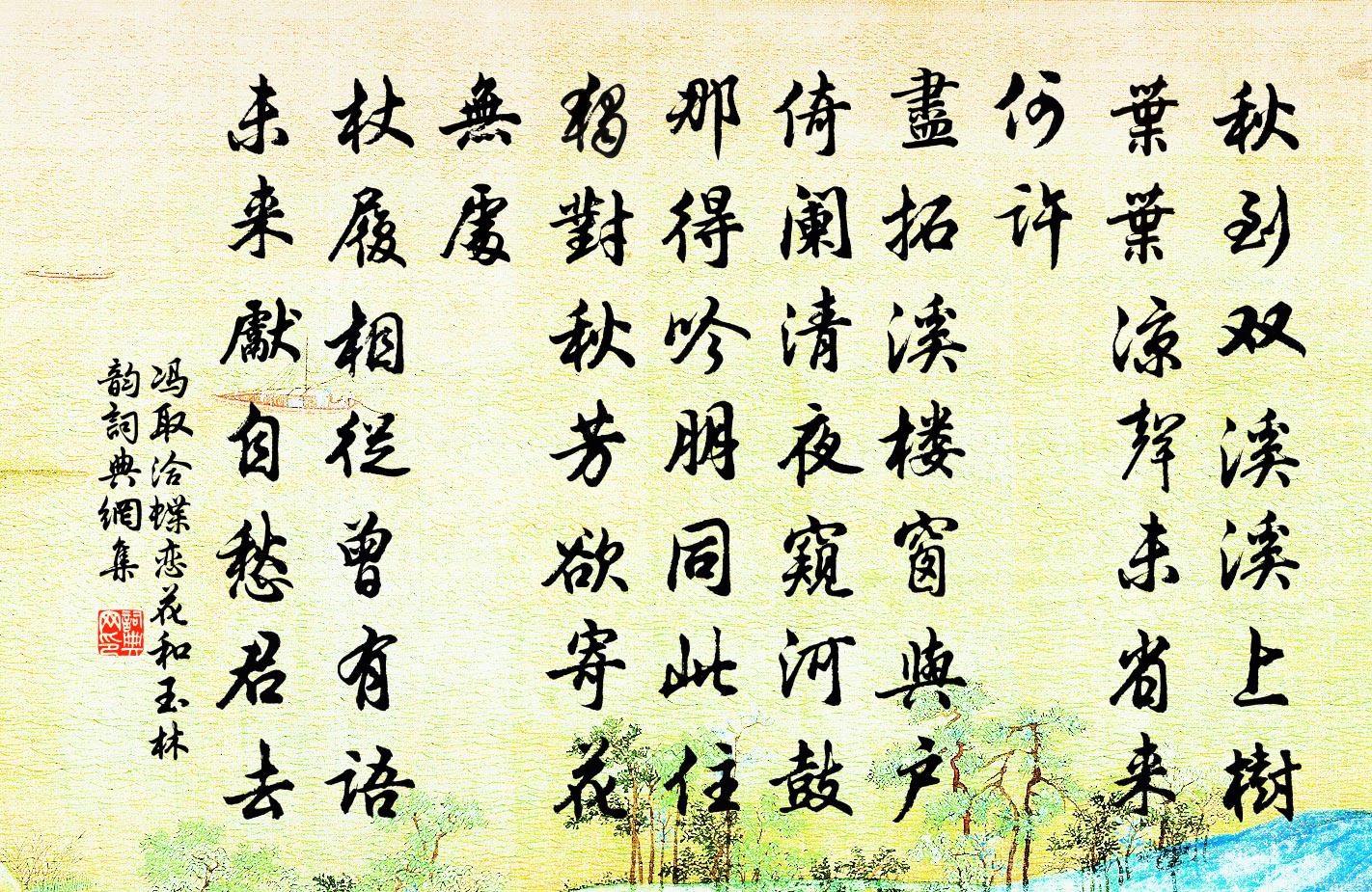 詩詞名句歷史字典書法欣賞書法字典國語詞典說文解字康熙字典古漢語字典標 題 作 者 詩 句 蝶戀花(和玉林韻)作者:馮取洽 朝代:宋代蝶戀花(和玉林韻)原文秋到雙溪溪上樹。葉葉涼聲,未省來何許。盡拓溪樓窗與戶。倚闌清夜窺河鼓。那得吟朋同此住。獨對秋芳,欲寄花無處。杖履相從曾有語。未來先自愁君去。詩詞問答問:蝶戀花(和玉林韻)的作者是誰?答:馮取洽問:蝶戀花(和玉林韻)寫於哪個朝代?答:宋代問:蝶戀花(和玉林韻)是什麼體裁?答:詞馮取洽蝶戀花(和玉林韻)書法欣賞蝶戀花(和玉林韻)書法作品詩詞推薦送行詩鄭清之〔宋代〕中行別意增懷抱,昨夜秋聲到客船。流水孤村鴉好在,平沙遠景雁依然。惜無繡口供吟筆,只有蓴羹愧昔賢。付與風流子劉秉忠〔元代〕書帙省淹留,人間事,一笑不須愁。紅日半窗,夢隨蝴蝶,碧雲千里,歸驟驊騮。酒杯里、功名渾瑣瑣,今古兩悠春近山中即事陸游〔宋代〕節物貧家有故常,春盤臘粥逐時忙。悠悠歲月催雙鬢,草草雞豚薦一觴。人意自殊平日樂,梅花寧減故時香?小園郡樓曾鞏〔宋代〕滿眼青山更上樓,偶攜閒客此閒遊。飛花不盡隨風起,野水無邊帶雨流。懷舊有情惟社燕,忘機相得更沙鷗。黃金送化士釋慧空〔宋代〕洞山身如椰子大,不畜粒米與莖菜。無人煙處門打開,接待方來也奇怪。吉山從作山中主,只用十方菩薩子。二時早發斜溝道中寄王有元賀鑄〔宋代〕處處春林有鳥啼,恨無芳酒一樽攜。何緣復得彭城夢,日日東風送我西。次韻張守秋懷四首劉子翬〔宋代〕歲事何倉卒,微吟寄各情。野耕方刈熟,鄰釀已沽清。歸雁年年急,寒烽處處明。予衰倦流轉,夢想玉階平。滿江紅(歸自湖南題富春館)黃子行〔宋代〕津鼓匆匆,猶記得、故人相送。春江上、鳥啼花影,馬嘶香鞚。情逐陽關金縷斷,淚和楊柳春絲重。算別來、幾度詔許昌崔明府拜補闕錢起〔唐代〕儒者久營道,詔書方問賢。至精一耀世,高步誰同年。何樹可棲鳳,高梧枝拂天。脫身鳧舄里,載筆虎闈前。日月挽宜人趙氏程珌〔宋代〕分胃 * 媛,來嬪相國孫。孝慈山上梓,法度潤濱蘩。鳳去簫沉響,鸞空鏡掩痕。家庭薰沐事,千古鏡南軒。望岳杜甫〔唐代〕岱宗夫如何,齊魯青未了。造化鍾神秀,陰陽割昏曉。盪胸生曾雲,決眥入歸鳥。會當凌絕頂,一覽眾山小。蝶戀花呂渭老〔宋代〕花色撩人紅入眼。可是東君,要得人腸斷。欲訴深情春不管。風枝雨葉空撩亂。謾插一枝飛一盞。小賞幽期,破我憲宗皇帝輓歌詞張祜〔唐代〕嗚咽上攀龍,昇平不易逢。武皇虛好道,文帝未登封。壽域無千載,泉門是九重。橋山非遠地,雲去莫疑峰。游梅坡席上雜酬李彌遜〔宋代〕花擁山頭白,雲翻日腳斜。銀蟾已照路,遊客莫思家。周宗廟歌 皇夏庾信〔南北朝〕庭闋四始。筵終三薦。顧步階墀。徘徊余奠。六龍矯首。七萃警途。鼓移行漏。風轉相烏。翼翼從事。綿綿四時。和中甫端午韻不依次文天祥〔宋代〕黃茅古道外,羸馬發南州。有客嗤齊魯,何人念楚囚。歲年付流水,風雨滿滄洲。手把菖莆看,黑頭非所求。小息李流謙〔宋代〕倦征當日午,小息散腰頑。索酒初隨意,題詩自破顏。不須通姓字。聊欲賞江山。放蕩郊園樂,於茲稍稍還。送龍圖范丈德孺帥慶晁補之〔宋代〕君不見先君往在康定中,奉詔經略河西戎。大順胡蘆盡耕稼,賊封不到秦關東。邊人鹹識侍中子,至今猶說將軍似偶見背面是夕兼夢韓偓〔唐代〕酥凝背胛玉搓肩,輕薄紅綃覆白蓮。此夜分明來入夢,當時惆悵不成眠。眼波向我無端艷,心火因君特地然。莫道詠天寧院呂夷簡〔宋代〕飄然吟魄到鰲山,好句空疏水石間。眼界清虛心不息,浮生能有幾人間。名句推薦不受苦中苦,難為人上人。吳承恩《西遊記·第三十二回》 此身合是詩人未?細雨騎驢入劍門。陸游《劍門道中遇微雨》 人問誰,對以名。吾與我,不分明。李毓秀《弟子規·謹》 相知無遠近,萬里尚為鄰。張九齡《送韋城李少府》 壚邊人似月,皓腕凝霜雪。韋莊《菩薩蠻·人人盡說江南好》 戀樹濕花飛不起,愁無比,和春付與東流水。朱服《漁家傲·小雨纖纖風細細》 上有所欲,其神若親,禮下勿辭,拒者無助矣。來俊臣《羅織經·治下卷第三》 聖人苟可以強國,不法其故;苟可以利民,不循其禮。商鞅《商君書·更法》 巧笑倩兮,美目盼兮。佚名《碩人》 秋冬雪月,千里一色;蘇軾《放鶴亭記》