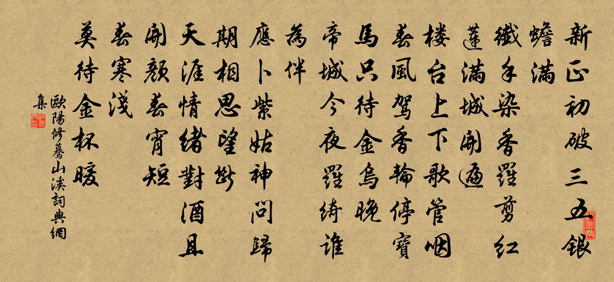 新正初破,三五銀蟾滿。縴手染香羅,剪紅蓮、滿城開遍。
