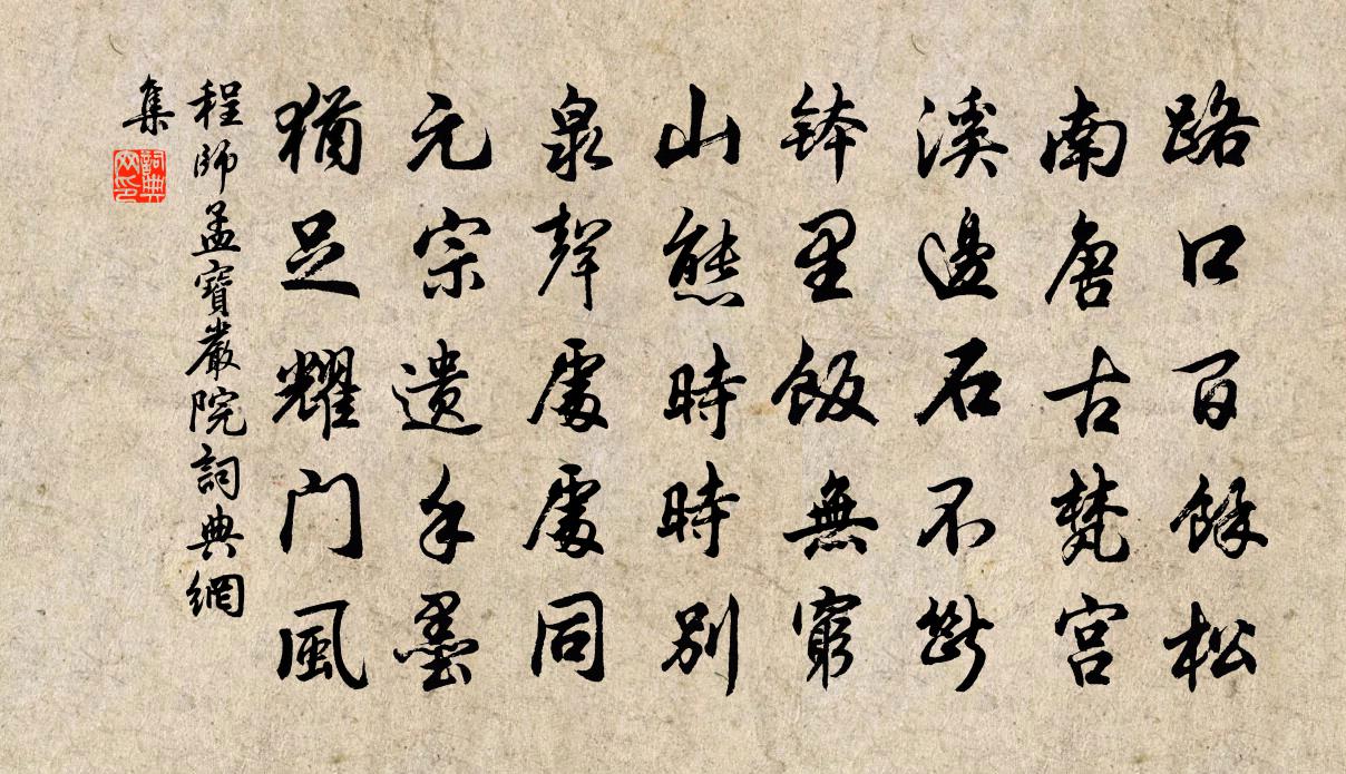 詩詞名句歷史字典書法欣賞書法字典國語詞典說文解字康熙字典古漢語字典標 題 作 者 詩 句 寶嚴院作者:程師孟 朝代:宋代寶嚴院原文路口百餘松,南唐古梵宮。溪邊石不斷,缽里飯無窮。山態時時別,泉聲處處同。元宗遺手墨,猶足耀門風。詩詞問答問:寶嚴院的作者是誰?答:程師孟問:寶嚴院寫於哪個朝代?答:宋代程師孟寶嚴院書法欣賞寶嚴院書法作品詩詞推薦湖山十景雷峰夕照王洧〔宋代〕塔影初收日色昏,隔牆人語近甘園。南山游遍分歸路,半入錢唐半暗門。跋仰老小畫二軸曹勛〔宋代〕秀韻凌虛玉煉顏,蒼官偃亞碧琅玕。只應中夕蕭騷月,相對一庭風露寒。題欹器圖劉禹錫〔唐代〕秦國功成思稅駕,晉臣名遂嘆危機。無因上蔡牽黃犬,願作丹徒一布衣。和徐從道韻二首劉子翬〔宋代〕高軒遙肯顧,掃室慣逢迎。酒喜頻中聖,官慚四至卿。憂時論曲突,感物詠長檠。古道難開口,微君孰與明。洪雅葛仙硯陸游〔宋代〕異硯出漢嘉,溫潤蒼玉質。因形作獸背,得墨如點漆。才高德亦全,終月不更筆。蠻溪大沱輩,烏敢相甲乙。從我讀史雜感吳偉業〔清代〕北寺讒成獄,西園賄拜官。上書休討賊,進爵在迎鑾。相國爭開第,將軍罷築壇。空餘蘇武節,流涕向長安。看春牓偶成黃庶〔宋代〕每看春牓獨嗟咨,蹭蹬塵埃已十期。韓老有知應笑我,歸時無計只凝兒。次韻子瞻記歲莫鄉俗三首其三守歲蘇轍〔宋代〕於菟絕繩去,顧兔追龍蛇。奔走十二蟲,羅網不及遮。嗟我地上人,豈復奈爾何。未去不自閒,將去乃喧譁。天上長思仙馬鈺〔元代〕夢軒轅。棄田園。難繼夷門孟四元。惟修性月圓。縛心猿。認根源。小小蛇兒俯視黿。陽純禮太原。倦書圖牟巘五〔宋代〕誰道春酣雨不禁,蒙籠眼色透雲屏。著人花氣深於霧,卻是三郎睡未醒。白華佚名〔先秦〕白華菅兮,白茅束兮。之子之遠,俾我獨兮。英英白雲,露彼菅茅。天步艱難,之子不猶。滮池北流,浸彼稻田。頌古一百首釋智愚〔宋代〕真甚破沙盆,掀翻海岳昏。頂門真箇瞎,個古累兒孫。錢塘贈武翊黃章孝標〔唐代〕曾將心劍作戈矛,一戰名場造化愁。花錦文章開四面,天人科第上三頭。鴛鴻待侶飛清禁,山水緣情住外州。時伴儗過錢塘約諸客同賦羅公升〔宋代〕去者勿戚戚,來者勿赫赫。天地猶乘除,萬古晨有夕。詎知今時今,不作異時異。吳山越山青,舊日錢王宅。題君山觀招真閣六首李呂〔宋代〕暈飛新樓台,像設舊金碧。焚修人已老,倚杖對山石。半山寺周文璞〔宋代〕野芳汀芷互幽妍,相國風流亦未傳。袞冕塵埃半山寺,自相撐拄過年年。歲晚雜興王同祖〔宋代〕時勢危棋局轉低,丈夫有志意何為。優遊輸與田家樂,問看朝廷事不知。雜言迎神詞二首送神皇甫冉〔唐代〕露沾衣,月隱壁;氣淒淒,人寂寂,風回雨度虛瑤席。來無聲,去無跡,神心降和福遠客。送友人李白〔唐代〕青山橫北郭,白水繞東城。此地一為別,孤蓬萬里征。浮雲遊子意,落日故人情。揮手自茲去,蕭蕭班馬鳴。偶成楊時〔宋代〕悠揚春夢成幽興,冷落溪光照酒卮。天闊雲浮遮不盡,浪平風過舞漣漪。名句推薦春愁凝思結眉心,綠綺懶調紅錦薦。顧敻《玉樓春·拂水雙飛來去燕》 曾經滄海難為水,除卻巫山不是雲。元稹《離思五首·其四》 思親堂上茱初插,憶妹窗前句乍裁。秋瑾《九日感賦》 曉風不散愁千點,宿雨還添淚一痕。曹雪芹《詠白海棠》 莫嫌舉世無知己,未有庸人不忌才。查慎行《三閭祠》 曉寒料峭尚欺人,春態苗條先到柳。毛滂《玉樓春·己卯歲元日》 愛多者則法不立,威寡者則下侵上。韓非及後人《韓非子·內儲說上七術》 茶性儉,不宜廣,廣則其味黯澹。陸羽《茶經·五之煮》 梨花風起正清明,遊子尋春半出城。吳惟信《蘇堤清明即事》 君子養心莫善於誠荀子《荀子·不苟》