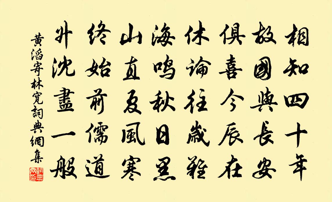 詩詞名句歷史字典書法欣賞書法字典國語詞典說文解字康熙字典古漢語字典標 題 作 者 詩 句 寄林寬作者:黃滔 朝代:唐代寄林寬原文相知四十年,故國與長安。俱喜今辰在,休論往歲難。海鳴秋日黑,山直夏風寒。終始前儒道,升沈盡一般。詩詞問答問:寄林寬的作者是誰?答:黃滔問:寄林寬寫於哪個朝代?答:唐代問:寄林寬是什麼體裁?答:五律黃滔寄林寬書法欣賞寄林寬書法作品注釋全唐詩:卷704-28詩詞推薦頌古四十五首釋慧遠〔宋代〕不是風幡動,亦非仁者心。自從胡亂後,淈{左氵右盾}到而今。垂柳短吟邵雍〔宋代〕臨溪拂水正依依。更被狂風來往吹。薄春不勝煙羃羃,深春無奈日遲遲。誰家縹渺青羅帔,何處蹁躚金縷衣。猶恐乙丑十一月十一日決獄次日迎帥舟中賦二詩首曾豐〔宋代〕年老未歸老,旬休那得休。將迎金屋客,方便石門游。白浪海之怒,玄雲天也愁。詩情不關性,正爾自夷猶。青樓贈別華岳〔宋代〕笛聲吹徹玉樓寒,金鴨香消更漏殘。含淚欲揮羞不敢,倩他銀燈向 * 。至節前一日六首方回〔宋代〕征羌漢將趙充國,賜履齊侯周太公。虛叟紀年亦云爾,五湖四海一詩窮。閨情白居易〔唐代〕煙攢錦帳凝還散,風卷羅帷掩更開。 初夏已晚山即事張嵲〔宋代〕山雲倏忽自晴陰,積雨門楥蔓草侵。一帶清川供極目,千重濁嶂伴微吟。雄鳩鳴處園林密,白鳥飛來溝水深。麥秀桂子白大監餉酒冰炭方岳〔宋代〕盡雪專為我輩寒,故人亦肯記袁安。麒麟紅作千金真,鸚鵡綠隨雙玉乾。貸米不煩臨古帖,敲門未敢兀吟鞍。明朝送越人姚日章游淮董嗣杲〔宋代〕氣宇凌虹駕海長,薄游感慨舊封疆。家鄰賀老千秋觀,袖有曾公一瓣香。遍走江湖諳客況,快吟風雪過淮鄉。井蛙宿古峰驛詩四首郭印〔宋代〕崎嶇戴月上層峰,擬借空山一夜風。爽氣襲人衾簟冷,炎天此地即仙宮。寄兵部任畹郎中陳陶〔唐代〕常思劍浦越清塵,豆蔻花紅十二春。昆玉已成廊廟器,澗松猶是薜蘿身。雖同橘柚依南土,終愧魁罡近北辰。好向頌古三十二首釋明辯〔宋代〕古皇前化超群檄,無字印文明劃劃。今時衲子若當陽,往往半千成五百。故國有懷呈任子宏提舉黃庚〔宋代〕十年不作還家夢,荒草深深鎖行扉。無主落花隨水去,有情滂鳥勸人歸。儒冠寥落風流減,客路淒涼故舊稀。何日賜知貢舉晁迥宋真宗〔宋代〕禮闈選士古稱難,都為陞沉咫尺間。較藝清時公道在,掄材應得惠人寰。贈常州院僧姚合〔唐代〕一住毗陵寺,師應只信緣。院貧人施食,窗靜鳥窺禪。古磬聲難盡,秋燈色更鮮。仍聞開講日,湖上少魚船。七絕句羅公升〔宋代〕吟昔從軍瘦,生涯出仕空。山中破茅屋,日日是秋風。和李天麟秋懷五絕句楊萬里〔宋代〕小立南溪暮未還,略容老子照哀顏。頗驚瞑色來天外,未必秋聲在樹間。金夫人輓詩王炎〔宋代〕兩大家聲著,三從婦德全。金珠捐玩飾,苹藻薦恭虔。眉壽無遺恨,心空悟秘詮。生芻來奠客,千兩擁新阡。和遁澤惠豆粟韻王柏〔宋代〕秋深萬物盡歸根,五穀從來不解分。以長而食了無事,南山有種何曾勤。遁澤真情在句中,薄俗三嘆曹劉風。識得述九頌耀德程公許〔宋代〕郊見帝兮琮璜,瑟彼瓚兮流斯黃。物有專兮靈粹,寧糅雜兮尋常。懿君子兮毓協,可蠡測兮蘊藏。稟堪輿兮間氣,名句推薦貨無大小,缺者便貴。馮夢龍《醒世恆言·卷三十五》 物各為主,無所責也。李大師、李延壽《南史·列傳·卷十六》 蓬頭稚子學垂綸,側坐莓苔草映身。胡令能《小兒垂釣》 竹喧歸浣女,蓮動下漁舟。王維《山居秋暝》 常恐秋風早,飄零君不知。盧照鄰《曲池荷》 人皆欲會說話,蘇秦乃因會說而殺身王永彬《圍爐夜話·第七則》 兵務 神速,事貴合機。令狐德棻《周書·列傳·卷二十五》 倉廩實,則知禮節;衣食足,則知榮辱管仲《管子·牧民》 山遠天高煙水寒,相思楓葉丹。李煜《長相思·一重山》 亂點鴛鴦譜馮夢龍《醒世恆言·卷八》