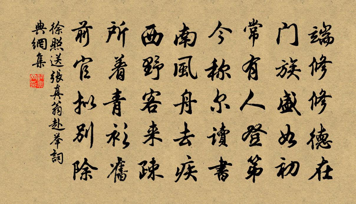 詩詞名句歷史字典書法欣賞書法字典國語詞典說文解字康熙字典古漢語字典標 題 作 者 詩 句 送張真翁赴舉作者:徐照 朝代:宋代送張真翁赴舉原文端修修德在,門族盛如初。常有人登第,今稱爾讀書。南風舟去疾,西野客來疎。所著青衫舊,前官擬別除。詩詞問答問:送張真翁赴舉的作者是誰?答:徐照問:送張真翁赴舉寫於哪個朝代?答:宋代徐照送張真翁赴舉書法欣賞送張真翁赴舉書法作品詩詞推薦金陵雜興二百首蘇泂〔宋代〕鳳凰台上鳳凰游,鳳去台空水自流。惆悵何因見李白,采江試覓月明舟。池上對月五首劉克莊〔宋代〕赤帝當垂令,餘威烈暴秦。若無大圓鏡,熱殺世間人。次韻劉貢父李公擇見寄二首蘇軾〔宋代〕何人勸我此間?弦管生衣甑有埃。綠蟻沾唇無百斛,蝗蟲撲面已三回。磨刀入谷追窮寇,灑涕循城拾棄孩。為郡鮮漢宮春(再和前韻)劉克莊〔宋代〕多謝句芒,露十分春信,一種仙姿。主人領客卜夜,也喚分司。天葩國艷,幾曾煩、薄粉濃脂。微似有,酒潮玉頰臘梅鄭剛中〔宋代〕縞衣仙子變新裝,淺染春前一樣黃。不肯皎然爭臘雪,只將孤艷付幽香。和晏尚書詠芙蓉金菊宋祁〔宋代〕千疊綃紅抱蕊乾,一番金雨映趺攢。比來醉筆賡新曲,簡上飛霜不擬寒。驀山溪佚名〔宋代〕當時曾見,上苑東風暖。今歲卻相逢,向煙村、亭邊驛畔。垂鞭立馬,一晌黯無言,江南信,壽陽人,悵望成斷腸因憶灊樓讀書之樂呈介甫朱明之〔宋代〕憶昨灊樓幸久留,乾坤談罷論雎鳩。它時已恨相從少,此日能忘共學不。南去溪山隨夢斷,北來身世若雲浮。行藏賀同年翰林從叔舍人知制誥李頻〔唐代〕仙禁何人躡近蹤,孔門先選得真龍。別居雲路拋三省,專掌天書在九重。五色毫揮成渙汗,百寮班下獨從容。芳年懷陸仲仁李處權〔宋代〕陸郎好古心不俗,雅似王郎愛修竹。綠陰清晝坐焚香,想見人琴兩如玉。尺書招我我未暇,興發從君醉醽醁。秋風峨眉楊徽之〔唐代〕嘉州山水地,二蜀最為美。翠嶺疊峨眉,長嶺疊峨眉,長瀾涌錦水。重次龔子輝平塘韻三首陶夢桂〔宋代〕家園指擬似淇園,惜筍兼存上下番。若與此君情分簿,應無風月到吾門。蘇秀道中大雨曾幾〔宋代〕梅雨又時雨,蘇州仍秀州。客行無六月,農事有三秋。雲氣深鴻雁,煙波沒白鷗。衰年慚愧汝,物役幾時休。和謝石湖先生寄二詩韻二首楊萬里〔宋代〕一張五色石湖雲,天上吹來墮小軒。化作虹橋倚鍾阜,渡將老子到吳門。黃鍾路鼓鳴清廟,玉親金支舞秦尊。乃是道山座主先生平章呂公輓歌辭五首方回〔宋代〕乃公同此老,兩柱共擎天。初作二千石,才生十九年。漢陽□最大,嶺外帥何緣。極恨湖濱相,奸臣喜弄權。贈坦菴告別白玉蟾〔宋代〕杖頭挑起一天雲,政是梅花十月春。猿叫千山風勢惡,雪迷萬里雨聲頻。今朝瓢笠遊方外,舊處煙霞失主人。好去山中邵定〔宋代〕白日看雲坐,清秋對雨眠。眉頭無一事,筆下有千年。清人佚名〔先秦〕清人在彭,駟介旁旁。二矛重英,河上乎翱翔。清人在消,駟介麃麃。二矛重喬,河上乎逍遙。清人在軸,駟介陶樂府四首吳龍翰〔宋代〕瑟瑟涼風來,妾身似秋扇。安得復炎熱,相攜不相厭。夜宴安樂公主新宅蘇頲〔唐代〕車如流水馬如龍,仙史高台十二重。天上初移衡漢匹,可憐歌舞夜相從。名句推薦一枝紅艷露凝香,雲雨巫山枉斷腸。李白《清平調·其二》 桂魄初生秋露微,輕羅已薄未更衣。王維《秋夜曲》 羈旅長堪醉,相留畏曉鍾。戴叔倫《客夜與故人偶集 / 江鄉故人偶集客舍》 人孰無親,罪人慎察其宗。來俊臣《羅織經·固榮卷第六》 多事年年二月風,翦出鵝黃縷。納蘭性德《卜運算元·新柳》 落花人獨立,微雨燕雙飛。晏幾道《臨江仙·夢後樓台高鎖》 西湖春色歸,春水綠於染歐陽修《春日西湖寄謝法曹歌》 姑蘇城外一茅屋,萬樹梅花月滿天。唐寅《把酒對月歌》 採蓮南塘秋,蓮花過人頭。佚名《西洲曲》 黃葉覆溪橋,荒村唯古木。柳宗元《秋曉行南谷經荒村》