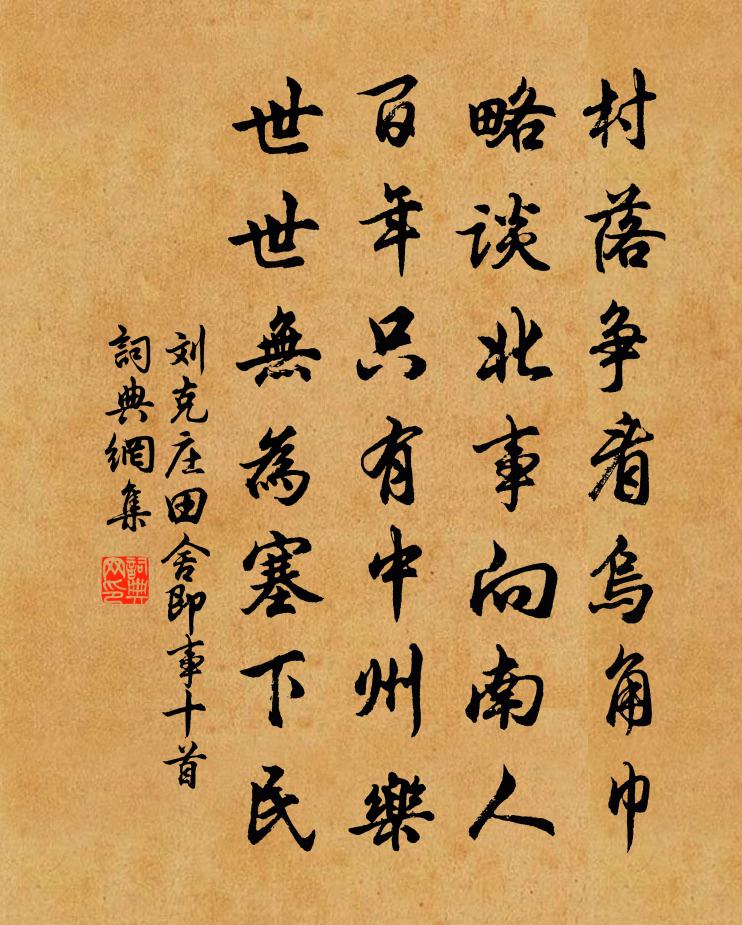 村落爭看烏角巾,略談北事向南人。百年只有中州樂,世世無為塞下民。