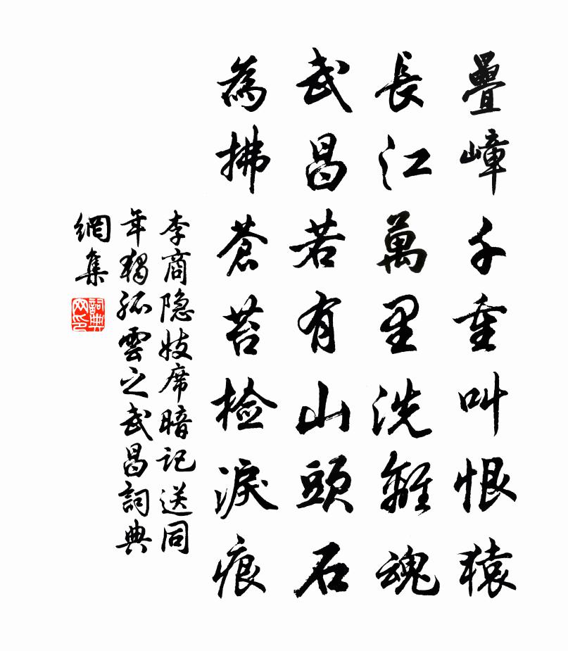 疊嶂千重叫恨猿,長江萬里洗離魂。武昌若有山頭石,為拂蒼苔檢淚痕。