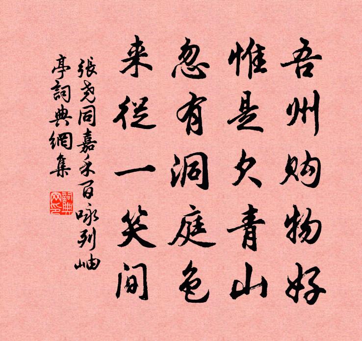 詩詞名句歷史字典書法欣賞書法字典國語詞典說文解字康熙字典古漢語字典標 題 作 者 詩 句 嘉禾百詠列岫亭作者:張堯同 朝代:宋代嘉禾百詠列岫亭原文吾州購物好,惟是欠青山。忽有洞庭色,來從一笑間。詩詞問答問:嘉禾百詠列岫亭的作者是誰?答:張堯同問:嘉禾百詠列岫亭寫於哪個朝代?答:宋代張堯同嘉禾百詠列岫亭書法欣賞嘉禾百詠列岫亭書法作品詩詞推薦西江月曾覿〔宋代〕桂苑旋生涼思,銀河左界秋高。纖塵不動湛清霄。皓月照人偏好。詩為情多卻減,酒因愁里難銷。一聲羌管夢魂勞題扇二十四首曹勛〔宋代〕老境惟期得醉歌,何能浩蕩涉風波。關山月白聞歸雁,風雨秋深想釣蓑。附:張郁洛川沿步吟洛川仙女〔唐代〕浮生如夢能幾何,浮生復更憂患多。無人與我長生術,洛川春日且長歌。徐京伯通判晚歲得二子戴復古〔宋代〕竹隱種竹知幾年,千竿萬竿長拂天。群飛不敢下棲止,常有清風凜凜然。丹穴飛來兩雛鳳,鳳來此竹為之重。牙籤陝下厲玄侍御宅五題吟詩島姚合〔唐代〕幽島蘚層層,詩人日日登。坐危石是榻,吟冷唾成冰。靜對唯秋水,同來但老僧。竹枝題字處,小篆復誰能。早春對雨羊士諤〔唐代〕南館垂楊早,東風細雨頻。輕寒消玉斝,幽賞滯朱輪。千里巴江守,三年故國春。含情非遲客,懸榻但生塵。雜曲歌辭自君之出矣雍裕之〔唐代〕自君之出矣,寶鏡為誰明。思君如隴水,長聞嗚咽聲。贈京西陳郎中梅堯臣〔宋代〕忽枉乘軺車,鏘然響金轡。駐軫與我言,琅琅有深意。乃知故相家,事業已不墜。信哉渥窪種,千里可立致。顯祖阮郎歸毛滂〔宋代〕雨余菸草弄春柔。芳郊翠欲流。暖風時轉柳花球。晴光爛不收。紅盡處,綠新稠。穠華只暫留。卻應留下等閒愁。友人楚孟德過余縱言及神仙余謂之無孟德謂之司馬光〔宋代〕柂師知子能操舟,穩過茫茫滄海流。白浪回天千萬里,真令掛骨長鯨齒。減字木蘭花謝逸〔宋代〕荷花風細。乞巧樓中涼似水。天幕低垂。新月彎環淺暈眉。橋橫烏鵲。不負年年雲外約。殘漏疏鍾。腸斷朝霞一縷訪隱者葉紹翁〔宋代〕開門迎客著山袍,井畔獼猴一樹桃。兒向草間尋落果,妻從牆角過香醪。舊栽松子今能大,新起茅堂不甚高。歷遍峴山詩李淑〔宋代〕峴山如闖襄廬南,鉅平躋賞留愛談。官邪俗淪祭不屋,君來懷古茵憑慚。孤峰嶔嶇漢之曲,雲梁月皋萬螺矗。輕裘千齡檜李廌〔宋代〕岡頭老檜不記年,古父約以千齡傳。高枝凌兢倚北斗,低枝猶藏萬歲煙。蟠根直與地爭固,不許蚓穴通黃泉。陰森題蘇仙山(郴州城東有山,為蘇耽修真之所,名蘇仙山)沈彬〔唐代〕眼穿林罅見郴州,井裡交連側局楸。味道不來閒處坐,勞生更欲幾時休。蘇仙宅古煙霞老,義帝墳荒草木愁。千古壽憲使江寺懲治八首以座右公廉勤謹忠信和緩程公許〔宋代〕吾師孔子孫,雲莫見乎隱。所以盡性學,必於獨也謹。兩間陟降異,一念堂奧近。何但丹筆持,能使明克允。西山寒日逢韋侍御喻鳧〔唐代〕獬豸霜中貌,龍鍾病後顏。慘傷此身事,風雪動江山。冬除夜書情盧延讓〔唐代〕兀兀坐無味,思量誰與鄰。數星深夜火,一個遠鄉人。雁翥天微雪,風號樹欲春。愁章自難過,不覺苦吟頻。壽陳左相李商叟〔宋代〕萬方名教賴薰陶,相國由來德業高。固有才華亞韓柳,豈惟功業並蕭曹。恩逢圖像登麟閣,采戲文鳴列鳳毛。可是小雨項安世〔宋代〕小雨散炎毒,微風生早秋。清涼人意足,厭浥草光浮。夜枕夢新熱,曉窗梳不收。茅欄聽好語,香稻起西疇。名句推薦悲歌可以當泣,遠望可以當歸。佚名《悲歌》 與人善言,暖於布帛;傷人之言,深於矛戟。荀子《荀子·榮辱》 野橋梅幾樹,並是白紛紛。洪升《雪望》 夜夜相思更漏殘,傷心明月憑闌乾,想君思我錦衾寒。韋莊《浣溪沙·夜夜相思更漏殘》 殘螢棲玉露,早雁拂金河。許渾《早秋三首·其一》 腳踏車欲問邊,屬國過居延。王維《使至塞上》 出不入兮往不反,平原忽兮路超遠。屈原《國殤》 荒城臨古渡,落日滿秋山。王維《歸嵩山作》 學如不及,猶恐失之。孔子弟子《論語·泰伯篇》 有熊有羆,有貓有虎,慶既令居,韓姞燕譽。佚名《韓奕》