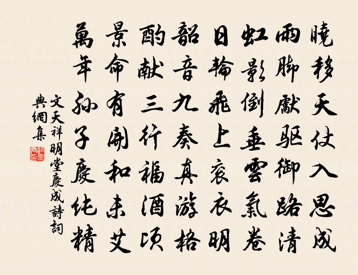 曉移天仗入思成,雨腳先驅御路清。虹影倒垂雲氣卷,日輪飛上袞衣明。