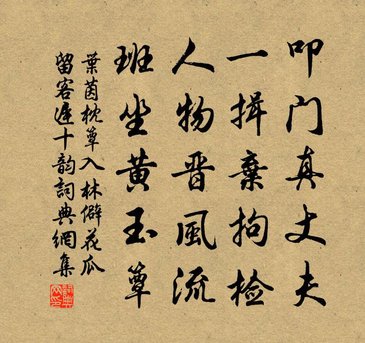 詩詞名句歷史字典書法欣賞書法字典國語詞典說文解字康熙字典古漢語字典標 題 作 者 詩 句 枕簟入林僻花瓜留客遲十韻作者:葉茵 朝代:宋代枕簟入林僻花瓜留客遲十韻原文叩門真丈夫,一揖棄拘檢。人物晉風流,班坐黃玉簟。詩詞問答問:枕簟入林僻花瓜留客遲十韻的作者是誰?答:葉茵問:枕簟入林僻花瓜留客遲十韻寫於哪個朝代?答:宋代葉茵枕簟入林僻花瓜留客遲十韻書法欣賞枕簟入林僻花瓜留客遲十韻書法作品詩詞推薦送岳陽陳倅秩滿還朝八首廖行之〔宋代〕千古太丘長,風流世淳龐。袞袞多公卿,他姓渠可雙。只今廩賢雋,半刺均麾幢。朝天建長策,致主新周邦。聞故人自征戍回王建〔唐代〕昔聞著征戍,三年一還鄉。今來不換兵,須死在戰場。念子無氣力,徒學事戎行。少年得生還,有同墮穹蒼。自去句趙與侲〔宋代〕溪月涵虛影,山雲護斷香。疏影·梅影張炎〔宋代〕黃昏片月。似碎陰滿地,還更清絕。枝北枝南,疑有疑無,幾度背燈難折。依稀倩女離魂處,緩步出、前村時節。送朱師古龍圖少卿師潼川二首楊萬里〔宋代〕璧水蓬山遍羽儀,頌台公府更光輝。紫荷到眼垂持橐, * 關心便拂衣。鬻子運籌年尚少,買臣衣繡日思歸。小煩題安福李令朝華亭黃庭堅〔宋代〕丹楹刻桷上崢嶸,表里江山路眼平。曉日成霞張錦綺,青林多露綴珠纓。人如旋磨觀群蟻,田似圍棋據一枰。對案送王充道游三茅廬阜楊時〔宋代〕荊吳相望各天涯,千里柴車鹿自隨。解轡定應春盡日,及歸宜待鶴來時。聖賢莫負樽中淥,日月長為物外遲。若過謁范參政並赴袁起岩,郡會坐中熾炭周圍,遂楊萬里〔宋代〕後炭前爐便是窯,饒君是鐵也教銷。不須泉下火山獄,新制人間法外條。今日晴明殊可喜,病夫意緒自無聊。看來出郊曾鞏〔宋代〕貢時天上雙龍去,斗處人間一水爭。分得余甘慰憔悴,碾嘗終夜骨毛清。和育王十二題供奉泉李覯〔宋代〕璘師鑿此泉,晨夕奉親老。因知達者心,豈嘗離孝道。秋日登山閣李頻〔唐代〕蒼蒼山閣晚,杳杳隙塵秋。偶上多時立,翻成盡日愁。草平連邑動,河滿逐江流。下視窮邊路,行人在隴頭。寄淨虛上人初至雲門(一作劉長聊詩)皇甫曾〔唐代〕寒蹤白雲里,法侶自提攜。竹徑通城下,松門隔水西。方同沃洲去,不似武陵迷。仿佛方知處,高峰是會稽。上升花 嗚鶴餘音卷五吳真人〔元代〕緊鎖心猿,悟光陰塵世,百年喘速。下手頓修,元本真靈,此日要住行屋。居家坑塹先須跳,將身己,使令孤宿。次天啟贈淨利名吳道人韻吳則禮〔宋代〕君名詎要書黃紙,兒曹安能相汝爾。平生胸中著丘壑,何曾輒作數日惡。看渠老死爭名場,肩摩轂擊非儂鄉。從來烏夜啼張鎡〔宋代〕曉來閒立回塘。一襟香。玉颭雲松風外、數枝涼。相併渾如私語,惱人腸。飛去方知白鷺、在花旁。客思陸游〔宋代〕裘馬平生喜遠遊,暮年憔悴向南州。文書與睡中分日,衰病和愁總怕秋。無復雪郊看射虎,但思煙浦聽呼牛。還家人日重宴大明宮恩賜彩縷人勝應制鄭愔〔唐代〕瓊殿含光映早輪,玉鸞嚴蹕望初晨。池開凍水仙宮麗,樹發寒花禁苑新。佳氣裴回籠細網,殘霙淅瀝染輕塵。良時示成交趙蕃〔宋代〕雨重冬裘薄,泥深古道賒。東西但煙嶂,高下絕風花。斲句病肝腎,食寒愁齒牙。赴期元不後,分路各從家。贊三十六祖頌釋印肅〔宋代〕脅本號難生,泥牛入海耕。隨機千萬轉,無上亦無行。中岩十八詠瀑布泉晁公溯〔宋代〕濺沫響空谷,分流清法筵。元因卓錫地,今為洗缽泉。名句推薦三思而後行。孔子弟子《論語·公冶長篇》 雨色秋來寒,風嚴清江爽。李白《酬裴侍御對雨感時見贈》 已過才追問,相看是故人。吳偉業《遇舊友》 封侯非我意,但願海波平。戚繼光《韜鈐深處》 秋靜見旄頭,沙遠席羈愁李賀《塞下曲》 閉門家裡坐,禍從天上來。馮夢龍《醒世恆言·卷十六》 一種青山秋草里,路人唯拜漢文陵許渾《途經秦始皇墓》 毋意,毋必,毋固,毋我。孔子弟子《論語·子罕篇》 見侮而不鬥,辱也!公孫龍《公孫龍子·跡府》 耿斜河、疏星淡月,斷雲微度。張元乾《賀新郎·送胡邦衡待制赴新州》