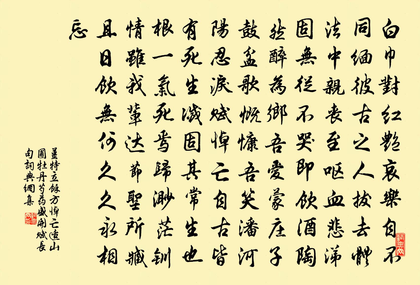 詩詞名句歷史字典書法欣賞書法字典國語詞典說文解字康熙字典古漢語字典標 題 作 者 詩 句 余方悼亡適山圃牡丹芍藥盛開賦長句作者:姜特立 朝代:宋代原文白巾對紅艷,哀樂自不同。緬彼古之人,拔去體法中,親喪至嘔血,悲涕固無從。不哭即飲酒,陶然醉為鄉。吾愛蒙莊子,鼓盆歌慨慷。吾笑潘河陽,忍淚賦悼亡。自古皆有死,生滅固其常。生也根一氣,死焉歸渺茫。釧情雖我輩,達節聖所臧。且日飲無何,久久永相忘。詩詞問答問:《余方悼亡適山圃牡丹芍藥盛開賦長句》的作者是誰?答:姜特立問:該詩寫於哪個朝代?答:宋代書法欣賞余方悼亡適山圃牡丹芍藥盛開賦長句書法作品詩詞推薦劍池李洪〔宋代〕削成峭壁碧孱顏,石罅高臨毛髮寒。我有胸中一寸鐵,湛然如水絕波瀾。柳絮詠孫魴〔唐代〕年年三月里,隨處自悠揚。雨過渾疑盡,風來特地狂。入花蜂有礙,遮水燕無妨。苦是添離思,青門道路長。題寶應縣雍陶〔唐代〕雪樓當日動晴寒,渭水梁山鳥外看。聞說德宗曾到此,吟詩不敢倚闌乾。將赴單州和韋度支相送之什次韻王禹偁〔宋代〕就養求官動聖知,專城猶得近王畿。鄉人竟指曾題柱,丘嫂應慚不下機。西掖罷批天子詔,北堂榮著老萊衣。鄰封又寄介然吳則禮〔宋代〕寄聲吾黨阿介,米賤惟有譽同。更無一語不契,前身定是同參。重經車輞谷司馬光〔宋代〕昔車道經車輞谷,直上七里監南皮。今年行役復到此,方春流汗如翻波。中塗太息坐盤石,涕泗不覺雙滂沱。我生偈頌二十一首釋堅璧〔宋代〕園林宿雨不勝清,岩谷舂撞萬杵鳴。個裡豁開千聖眼,不閒弓矢賀昇平。玲瓏四犯李從周〔宋代〕初撥琵琶,未肯信,知音真箇稀少。盡日芳情,縈系玉人懷抱。須待化作楊花,特地過、舊家池沼。想綺窗、刺繡青玉案(送人赴黃岡令)王千秋〔宋代〕雪堂不遠臨皋路。悵仙伯、騎鯨去。燕麥桃花更幾度。橫橋雖在,種松無有,誰是關心處。解鞍君到冬雖暮。傳語好事近劉秉忠〔元代〕酒醒夢回時,小鼎串煙初滅。留得瘦梅疏竹,弄窗間素月。起來幽緒轉清幽,幽處更難說。一曲竹枝歌罷,滿襟原浪淘沙(秋江)張炎〔宋代〕萬里一飛篷。吟老丹楓。潮生潮落海門東。三兩點鷗沙外月,閒意誰同。一色與天通。絕去塵紅。漁歌忽斷荻花風江上賽神李端〔唐代〕疏鼓應繁絲,送神歸九疑。蒼龍隨赤鳳,帝子上天時。驟雨歸山疾,長江下日遲。獨憐遊宦子,今夜泊天涯。周彥廣待制輓詞韓元吉〔宋代〕淮海歡騰五袴歌,政聲京光益中和。鄴侯井在功堪紀,鄭國渠成利更多。紫禁遄躋知異眷,珍台歸臥本微疴。功名句釋曉瑩〔宋代〕那敢謂長城。有感陸游〔宋代〕讀遍名山萬卷藏,殘年肯受俗低昂?正須嘯詠風濤上,未至悲辛酒朒旁。夢裡功名誰復計,閒中日月不勝長。虛皇和林子望二絕陳藻〔宋代〕勸君莫要嘆無官,門廕何如自致難。誰肯宦途為第二,玉階好好唱名還。和遁澤初夏韻二首王柏〔宋代〕萬古南薰與舜同,何時吹入五弦中。百年喬木支秋哨,一旦新萌長露叢。世事漸如宣子日,詩情猶有大王風。來牟蔣蓮店有書柳子厚寄吳武陵琴詩三讀敬喔五言楊萬里〔宋代〕秋晴得涼行,壁閱遇佳讀。巳咽猶余滋,將燼忽剩馥。語妙古未多,聽難今良獨。追誦惜去眼,信步遑擬足。驚心過故家樓鑰〔宋代〕團團桂樹擔檐牙,舊日輕黃滿樹花。惆悵秋清無一葉,空餘枯卉縋寒瓜。次韻孫與之見寄陳著〔宋代〕江山百里余,相得肯相疏。寄雁苦無便,遺魚俄有書。心能謙以下,義得兌之初。耐久難忘處,我將銘陋居。名句推薦天公見玉女,大笑億千場。李白《短歌行》 成敗相因,理不常泰李大師、李延壽《南史·本紀·卷一》 十年驅馳海色寒,孤臣於此望宸鑾。戚繼光《望闕台》 分不盡,半涼天。可憐閒剩此嬋娟。吳文英《思佳客·閏中秋》 千淘萬漉雖辛苦,吹盡狂沙始到金。劉禹錫《浪淘沙九首》 最是倉皇辭廟日,教坊猶奏別離歌,垂淚對宮娥。李煜《破陣子·四十年來家國》 近來攀折苦,應為別離多王之渙《送別》 目之於色也,有同美焉。孟子《孟子·告子章句上·第七節》 下床著新衣,初學小姑拜。毛鉉《 * 詞·下床著新衣》 眾人皆有以,而我獨頑似鄙。老子《老子·道經·第二十章》