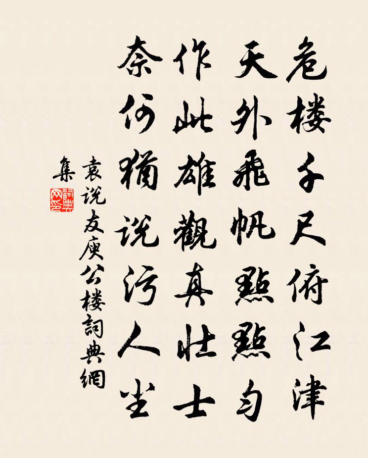 詩詞名句歷史字典書法欣賞書法字典國語詞典說文解字康熙字典古漢語字典標 題 作 者 詩 句 庾公樓作者:袁說友 朝代:宋代庾公樓原文危樓千尺俯江津,天外飛帆點點勻。作此雄觀真壯士,奈何猶說污人塵。詩詞問答問:庾公樓的作者是誰?答:袁說友問:庾公樓寫於哪個朝代?答:宋代袁說友庾公樓書法欣賞庾公樓書法作品詩詞推薦水調歌頭(丁丑春與鍾離少翁、張元鑒登垂虹)張元乾〔宋代〕拄策松江上,舉酒酹三高。此生飄蕩,往來身世兩徒勞。長羨五湖煙艇,好是秋風鱸鱠,笠澤久蓬蒿。想像英靈在玉燭新趙文〔宋代〕梅花新霽後。正錦樣華堂,一時裝就。洞房花燭深深處,慢轉銅壺銀漏。新妝未了。奈浩蕩、春心相侯。香篆里、謫居舒州,累得韓高二舍人書,作此寄之徐鉉〔唐代〕三峰煙靄碧臨溪,中有騷人理釣絲。會友少於分袂日,謫居多卻在朝時。丹心歷歷吾終信,俗慮悠悠爾不知。珍重御街行(賦轎)高觀國〔宋代〕藤筠巧織花紋細。稱穩步、如流水。踏青陌上雨初晴,嫌怕濕、文鴛雙履。要人送上,逢花須住,才過處、香風起句釋善昭〔宋代〕雪埋夜月深三尺,陸地行舟萬里程。木犀方岳〔宋代〕葉葉寒清粟粟黃,何年月斧落吳剛。秋風誤到人間世,幽壑難藏天上香。渺立塵氛群玉府,獨餐沆瀣碧雲鄉。生來和鄭邦達主簿五絕黃公度〔宋代〕風姿眇眇志堂堂,詩句驚人易數長。高士行看三府辟,可容枳棘困仇香。梅花鄒登龍〔宋代〕約臂金寒拓綺疏,搔頭玉重壓香酥。含章檐下新妝額,試啟菱花得似無。依韻和通半二月十五日雨中梅堯臣〔宋代〕仲春月既望,物侯恰分中。窗聽五更雨,花開前日風。詩成止酒後,病怯舉杯空。短髮雖然黑,心如一老翁。二月晦日惜春有感吳芾〔宋代〕春半年已除,舊聞詩人語。老夫始信之,倍覺傷時序。方春未來時,屈指朝朝數。十分擬春來,欲與春為主。那知清平樂 大德癸卯,奉使宣撫山北遠東道,五劉敏中〔元代〕茸茸碧草。點點金花小。十里青山山下道。地錦都教蓋了。天然草軟平勻。馬蹄穩送行人。路斷不堪回首,南風依水庵生緣釋智朋〔宋代〕一宿分明不易投,老拳要覓死冤仇。不應荒卻娘生也,自是無人敢出頭。九日小圃菊花有開者病瘍不能泛一杯把玩而已曾幾〔宋代〕 * 開何許,疏籬小隱家。似知重九日,故放兩三花。病著杯無淥,衰來發半華。佳辰辜負汝,滿把但成嗟。送侄赴廷試吳芾〔宋代〕一第男兒未足夸,喜傳衣缽振吾家。大廷好上千言對,要使聲名播邇遐。唐虞吟邵雍〔宋代〕天下目為目,謂之明四目。天下耳為耳,謂之達四聰。前旒與黊纊,所貴無近情。無為無不為,知此非虛生。謁告得歸拜呈內機知府郎官五首程公許〔宋代〕違覆由來諱詭隨,民勞未有甚今時。一分寬受一分賜,喜見留屯奏便宜。謝別毛仙翁張為〔唐代〕羸形感神藥,削骨生豐肌。蘭炷飄靈煙,妖怪立誅夷。重睹日月光,何報父母慈。黃河濁袞袞,別淚流澌澌。黃河再次韻送楊昌英赴麻陽宰周必大〔宋代〕未結絇絲侍玉除,聊紆墨綬奉安輿。諸君相尚恥為令,明府何妨大所居。歲美莫憂君不足,日長當念民無如。玉床已亥雜詩 84龔自珍〔清代〕白面儒冠已問津,生涯只羨五侯賓。蕭蕭黃葉空村畔,可有擁書閉戶人。局中負暄讀書三首張耒〔宋代〕輝輝短景不能春,照我貧屋亦復仁。虞淵道遠寒雲屯,羲和愁思隕厥輪。君不見志士憔悴甘賤貧,塊處屋漏含悲辛名句推薦風嗥雨嘯,昏見晨趨。鮑照《蕪城賦》 近來何處有吾愁,何處還知吾樂。辛棄疾《念奴嬌·賦雨岩》 柳絮風輕,梨花雨細。謝逸《踏莎行·柳絮風輕》 還作江南會,翻疑夢裡逢。戴叔倫《客夜與故人偶集 / 江鄉故人偶集客舍》 每恨蟪蛄憐婺女,幾回嬌妒下鴛機,今宵嘉會兩依依。毛文錫《浣溪沙·七夕年年信不違》 青楓江上秋帆遠,白帝城邊古木疏。高適《送李少府貶峽中王少府貶長沙》 正是浴蘭時節動。菖蒲酒美清尊共。歐陽修《漁家傲·五月榴花妖艷烘》 恰如燈下,故人萬里,歸來對影。黃庭堅《品令·茶詞》 君子少思長,則學;老思死,則教;有思窮,則施也。荀子《荀子·法行》 我愛山中春,蒼崖鳥一聲。元鵬《山中四詠》
