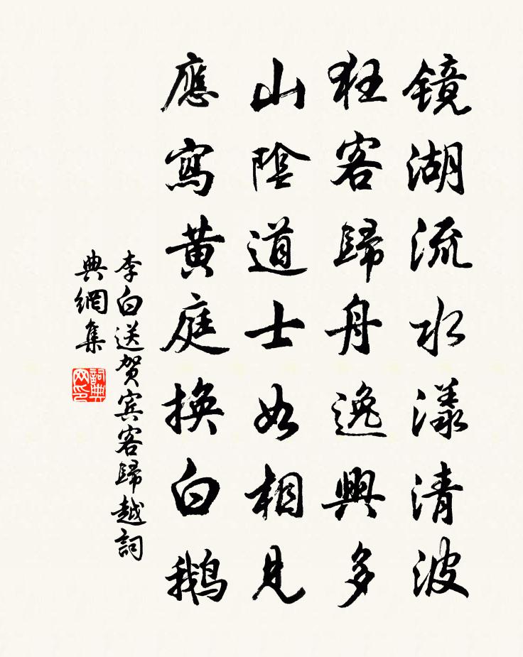 由於賀知章這次是以道士的身份告老還鄉的,而李白此時也正尊崇道學,因此詩中都圍繞著“逸興多”三字,以送出家人的口氣來寫的。鏡湖是紹興地方的風景名勝,以湖水清澄而聞名於世。李白想像友人這次回鄉,一定會對鏡湖發生濃厚的興趣,在那兒終日泛舟遨遊的。為了突出賀知章的性格,詩中不再以賓客或賀監的官銜稱呼他,而乾脆稱他為“狂客”,因賀知章晚年曾自號“四明狂客”。“賓客”到底沾上些官氣,與道士的氣息不相投合,而“狂客”二字一用,不僅除了官氣,表現了友人的性格,而且與全詩的基調非常吻合。