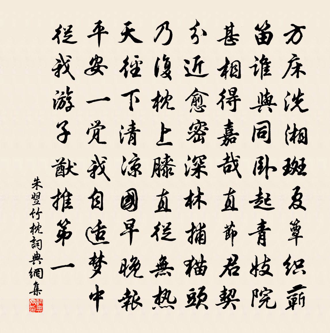 詩詞名句歷史字典書法欣賞書法字典國語詞典說文解字康熙字典古漢語字典標 題 作 者 詩 句 竹枕作者:朱翌 朝代:宋代竹枕原文方床洗湘斑,夏簟織蘄笛。誰與同臥起,青妓1|1院甚相得。嘉哉直節君,契分近愈密。深林捕貓頭,乃復枕上膝。直從無熱天,徑下清涼國。早晚報平安,一覺我自適。夢中從我游,子猷推第一。詩詞問答問:竹枕的作者是誰?答:朱翌問:竹枕寫於哪個朝代?答:宋代朱翌竹枕書法欣賞竹枕書法作品詩詞推薦酬太原令狐相公見寄劉禹錫〔唐代〕書信來天外,瓊瑤滿匣中。衣冠南渡遠,旌節北門雄。鶴唳華亭月,馬嘶榆塞風。山川幾千里,惟有兩心同。宿島徑夷山舍陳陶〔唐代〕百里遵島徑,蓬徵信邅回。暝依漁樵宿,似過黃金台。缺齧心未理,寥寥夜猿哀。山深石床冷,海近腥氣來。主人恭和御製賞花釣魚鄭獬〔宋代〕輦路鮮雲五色開,一聲清蹕下天來。水光翠繞九重殿,花氣醲薰萬壽杯。繡幕煙深紅匼匝,文竿風引綠徘徊。蓬山題白帝廟蘇洵〔宋代〕誰開三峽才容練,長使群雄苦力爭,熊氏凋零餘舊族,成家寂寞閉空城。永安就死悲玄德,八陣勞神嘆孔明。白帝罷都統守鎮滑州作王鐸〔唐代〕用軍何事敢遷延,恩重才輕分使然。黜詔已聞來闕下,檄書猶未遍軍前。腰間盡解蘇秦印,波上虛迎范蠡船。正會荷花張怡然〔宋代〕芳姿香可人,剛道六郎似。誰謂前哲心,愛蓮比君子。天壺徐幾〔宋代〕老松壓石洞門聳,青蘿曳樹牽雲影。天然物外清修地,岩頭殘月沈丹井。冷泉亭方回〔宋代〕金鞍驟紫陌,詎識林下勝。石苔為誰碧,我輩坐乃稱。絲毫無愧容,照此冷泉鏡。竹樹亦如我,不與春色競。匏尊殢人嬌李清照〔宋代〕玉瘦香濃,檀深雪散,今年恨探梅又晚。江樓楚館,雲間水遠。清晝永,憑欄翠簾低卷。坐上客來,尊前酒滿,歌偈頌六十五首釋普濟〔宋代〕驗人眼,截流機。德山臨際,伏惟伏惟。和孟東野韻范偃〔宋代〕散策欲薄暮,疏鍾猶殷床。風煙函古趣,岩壑生幽香。仰首逼象緯,俯視渺川光。向來非突兀,幾成虎豹場。臨平道中范成大〔宋代〕煙雨桃花夾岸栽,低低渾欲傍船來。石湖有此紅千葉,前日春寒總未開。挽汪義源舍人二首趙蕃〔宋代〕公作廬陵掾,先君官贛州。書郵時問訊,江驛幾淹留。撫事今安在,臨風涕莫收。誰為耆舊傳,好奇竹林游。少年子釋行海〔宋代〕馬頭垂柳復垂楊,日暖遊絲滿洛陽。賤把黃金買歌笑,不知流水去茫茫。響卜辭趙汝鐩〔宋代〕三六乘鸞初嫁君,琴瑟朝暮誓不分。酒酣使氣浪自許,片舌儀秦弄風雲。東吳西蜀幾千里,雁來數年無幅紙。有便雜詠一百首轅固劉克莊〔宋代〕面折公孫子,堂堂負直聲。安知上前議,那復有黃生。劭農翠山賦唐律二首吳潛〔宋代〕老守憂民若己傷,三回奉詔勸耕桑。周家綿遠農開國,漢室興隆谷腐倉。麥緣少地鋤山種,水怕多流累石防。田裡春雨陳與義〔宋代〕花盡春猶冷,羈心只自驚。孤鶯啼永晝,細雨濕高城。擾擾成何事,悠悠送此生。蛛絲閃夕霽,隨處有詩情。木蘭花慢 送李公敏王結〔元代〕渺平蕪千里,煙樹遠、淡斜暉。正秋色橫空,西風浩蕩,一雁南飛。長安兩年行客,更登山臨水送將歸。可奈離懷送周知丞之官桐廬劉植〔宋代〕潮滿桐江上,秋風洗印時。字民知最近,占位莫嫌卑。紙尾書名大,松邊得句遲。定懷東闊老,無復寄來詩。名句推薦水上遊人沙上女,回顧,笑指芭蕉林里住。歐陽炯《南鄉子·畫舸停橈》 邊兵春盡回,獨上單于台。張蠙《登單于台》 機中錦字論長恨,樓上花枝笑獨眠。皇甫冉《春思》 小桃枝下試羅裳,蝶粉斗遺香。陳子龍《訴衷情·春遊》 衣懶換,酒難賒。可憐此夕看梅花。吳文英《思佳客·癸卯除夜》 白鳥悠悠自去,汀洲外、無限蒹葭。王國維《滿庭芳·水抱孤城》 以人言善我,必以人言罪我。韓非及後人《韓非子·說林上》 財以成者,扶而埋之;後得生者,而久禁之。墨子《墨子·22章 節用(下)》 輪台九月風夜吼,一川碎石大如斗,隨風滿地石亂走。岑參《走馬川行奉送出師西征 / 走馬川行奉送封大夫出師西征》 思親堂上茱初插,憶妹窗前句乍裁。秋瑾《九日感賦》