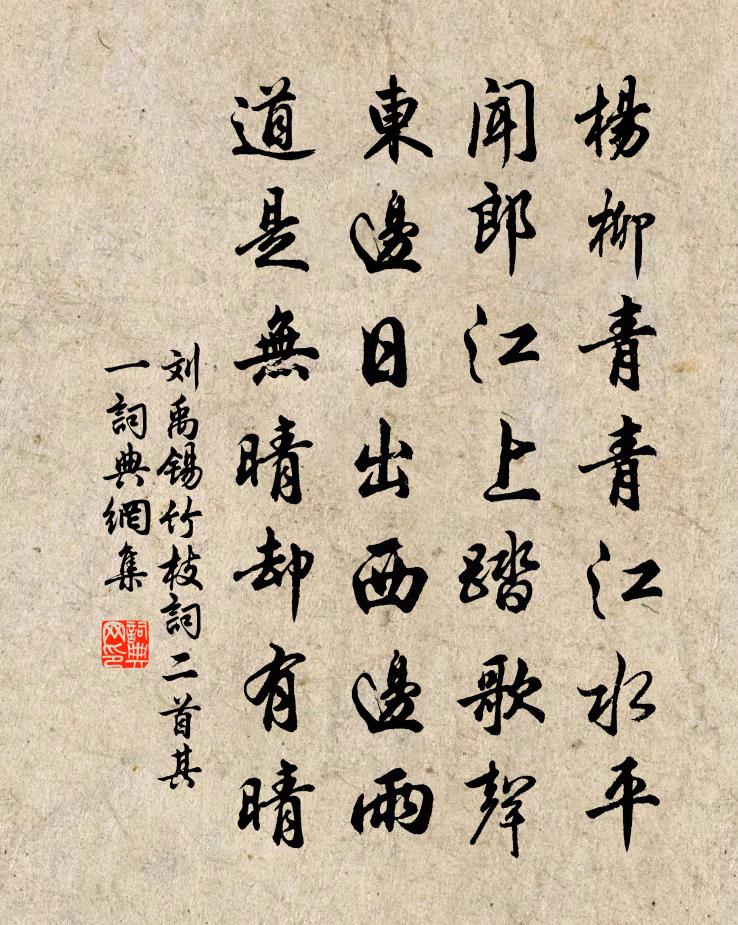 楊柳青青江水平,聞郎江上踏歌聲。(踏歌聲 一作:唱歌聲)