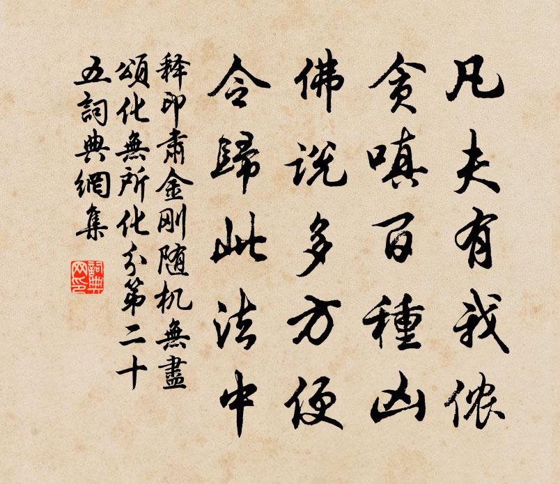 詩詞名句歷史字典書法欣賞書法字典國語詞典說文解字康熙字典古漢語字典標 題 作 者 詩 句 金剛隨機無盡頌化無所化分第二十五作者:釋印肅 朝代:宋代原文凡夫有我儂,貪嗔百種凶。佛說多方便,令歸此法中。詩詞問答問:《金剛隨機無盡頌化無所化分第二十五》的作者是誰?答:釋印肅問:該詩寫於哪個朝代?答:宋代書法欣賞金剛隨機無盡頌化無所化分第二十五書法作品詩詞推薦偈頌七十六首釋師範〔宋代〕一二三四五,各各面相睹。甜瓜徹蔕甜,苦瓠連根苦。登石頭城詩何遜〔南北朝〕關城蓋乃形勢蓋。地險蓋差非一。馬嶺逐紆迴。犬牙傍隆窣。百雉極襟蓋。億庾兼量出。至理歸無為。善守竟何恤聲聲慢張炎〔宋代〕晴光轉樹,曉氣分嵐,何人野渡橫舟。斷柳枯蟬,涼意正滿西州。匆匆載花載酒,便無情、也自風流。芳晝短,奈同年龐汝弼赴宰臨賀見過敘別因成感詠宋庠〔宋代〕朋好日寥落,征驂那忍聞。先成數日惡,更負十年薰。客棹秋瀧水,官郵暮嶺雲。圖南尚良食,少作吊湘文。送證侍者歸里釋可湘〔宋代〕臨老三回住雪山,無弦琴子逐時彈。夜來一曲最高韻,瀉作西江十八灘。丙辰年別龜峰曹源和尚釋道沖〔宋代〕葛溪深處定宗綱,一任乾坤大地荒。但得棒頭明似日,可無臨濟解承當。過萬泉縣李復〔宋代〕邑屋連山麓,蕭條去路斜。鹵田無美井,旱港足飛沙。逃室多欹棟,殘林有斷槎。荒墟人不見,牆角自開花。再次前韻即事張元乾〔宋代〕太一遊行遍九宮,世間無地可寬容。坤維莫傍劍門閣,衡岳何依天柱峰。睨柱儻能回趙壁,思鱸安用過吳松。群羊新雪二首(寄楊舍人)白居易〔唐代〕不思北省煙霄地,不憶南宮風月天。唯憶靜恭楊閣老,小園新雪暖爐前。不思朱雀街東鼓,不憶青龍寺後鍾。唯憶游鹿洞歸途感賦李鴻章〔清代〕鹿去台空屋數椽,置身就在閬風巔。孤筇螟踏煙中路,萬壑春藏洞裡天。亂後諸生虛講席,門前流水隔塵緣。低徊一冬無雪和際放翁梅詩陸句豪夸余清苦要自不程公許〔宋代〕清羸怯問黃錯月,呵手寒窗寄幽絕。一枝幽艷棖觸人,花與詩人皆本色。孤山飛鶴舞空去,詩家何曾絕正脈。經營和微之韓維〔宋代〕早接忠賢論,常欽古學風。何期華發後,更得綠樽同。遠水秋光外,高亭夕照中。芡盤凋晚翠,菊艷奪春紅。歌放秋夜張耒〔宋代〕月到啼蛩壁,風搖睡鵲枝。秋來客不寐,遙夜漏何遲。已近風霜節,寂無蚊蚋時。天時只自爾,浪遣宋生悲。夢遊仙四首貫休〔唐代〕夢到海中山,入個白銀宅。逢見一道士,稱是李八伯。三四仙女兒,身著瑟瑟衣。手把明月珠,打落金色梨。車渠題豆館張舜民〔宋代〕關頭日落薄衣襟,又對叢蘆擁鼻吟。塵土十年纏馬足,只憑雙鬢照歸心。歸到晁說之〔宋代〕歸到故廬同逆旅,人生本自怕牢愁。雨聲豈有京華態,羇思仍多澧浦秋。久禁令人類疾病,新聞向汝重咿喔。顧無上元戲呈貢父王安石〔宋代〕車馬紛紛白晝同,萬家燈火暖春風。別開閶闔壺天外,特起蓬萊陸海中。盡取繁華供俠少,只分牢落與衰翁。不知狼山崔敦禮〔宋代〕五載龍蟠虎踞間,峰頭日月望狼山。歸來筋力猶強健,野屐登臨莫厭艱。懷寄寇元弼王文舉十首之九招文舉賀鑄〔宋代〕後夜溪山雪,臨門望子猷。莫因清興盡,半道卻回舟。和三鄉詩佚名〔唐代〕女幾山前嵐氣低,佳人留恨此中題。不知雲雨歸何處,空使王孫見即迷。名句推薦便覺眼前生意滿,東風吹水綠參差。張栻《立春偶成》 碧海年年,試問取、冰輪為誰圓缺?納蘭性德《琵琶仙·中秋》 無花無酒過清明,興味蕭然似野僧。王禹偁《清明》 郵亭無人處,聽檐聲不斷,困眠初熟。周邦彥《大酺·越調春雨》 虢國夫人承主恩,平明騎馬入宮門。張祜《集靈台·其二》 同來望月人何處?風景依稀似去年。趙嘏《江樓舊感 / 江樓感舊》 性靜情逸,心動神疲。周興嗣《千字文·全文》 天地所以能長且久者,以其不自生,故能長生。老子《老子·道經·第七章》 有個嬌嬈如玉,夜夜繡屏孤宿,閒抱琵琶尋舊曲,遠山眉黛綠。韋莊《謁金門·春漏促》 飲酒莫辭醉,醉多適不愁。高適《淇上送韋司倉往滑台》