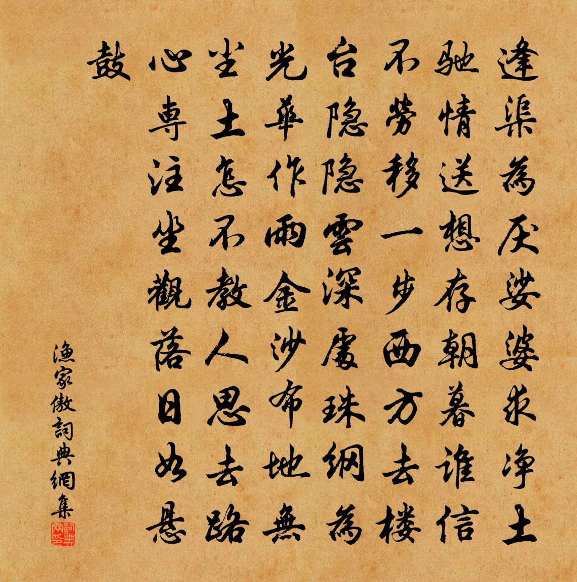珠綱為光華作雨。金沙布地無塵土。怎不教人思去路。心專注。坐觀落日如懸鼓。
